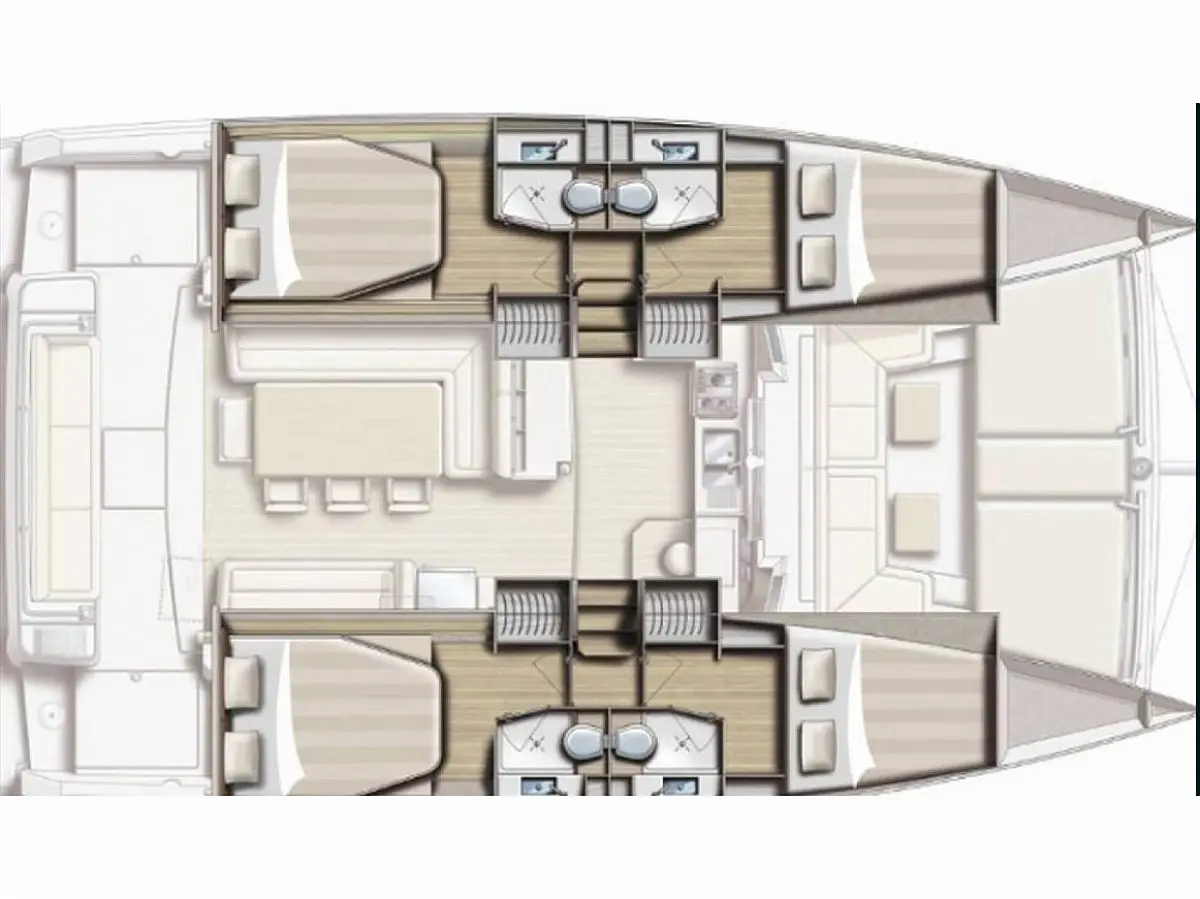 Aire acondicionado, Plataforma de baño, Bímini, Nevera, Generador, Embarcación auxiliar