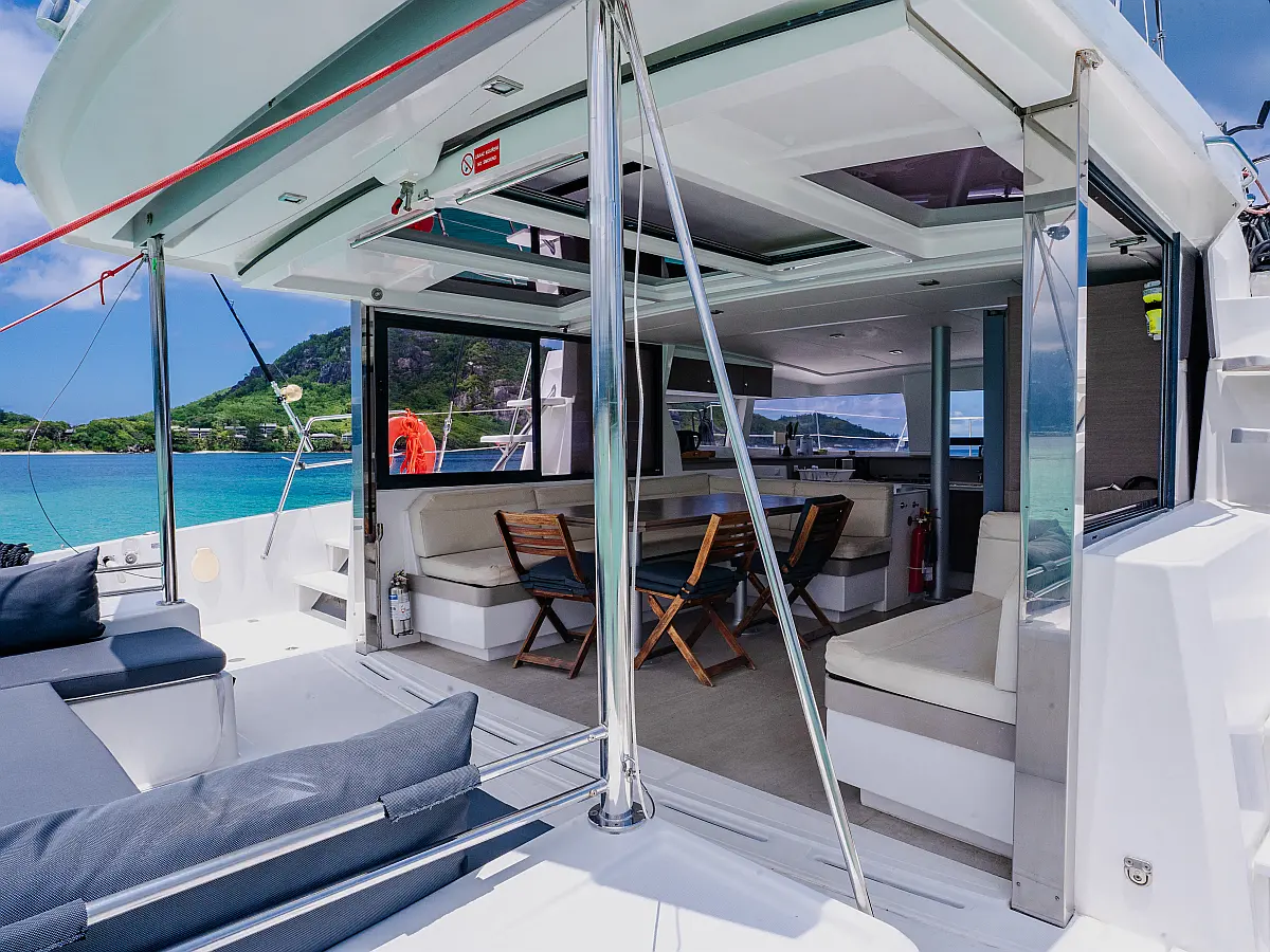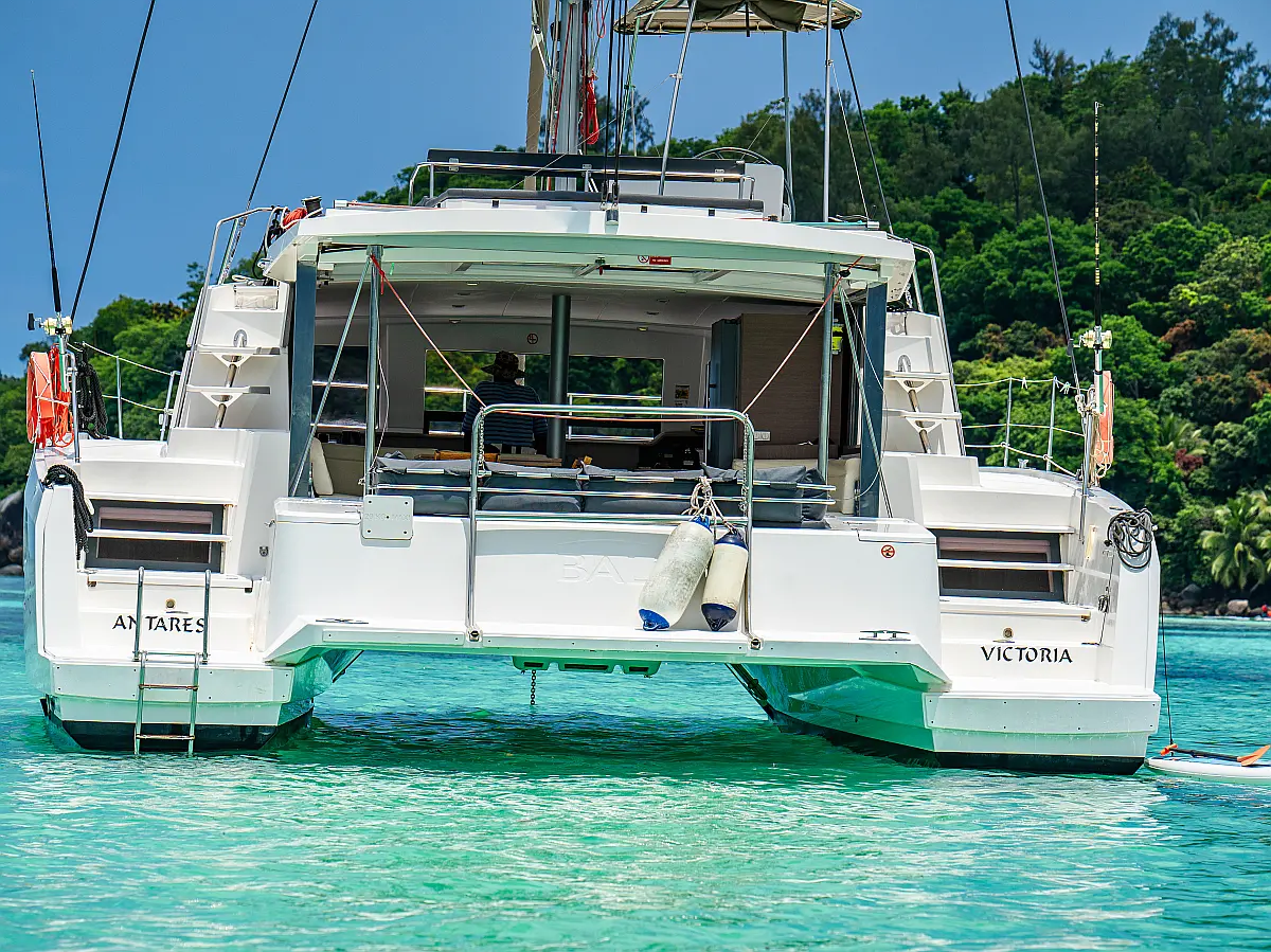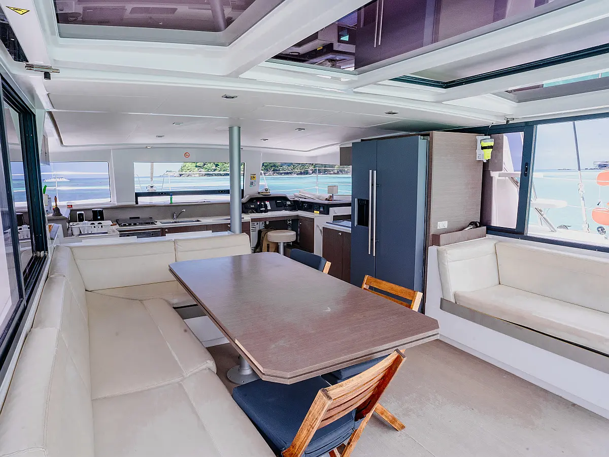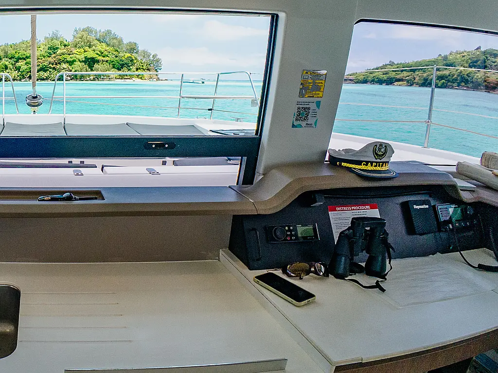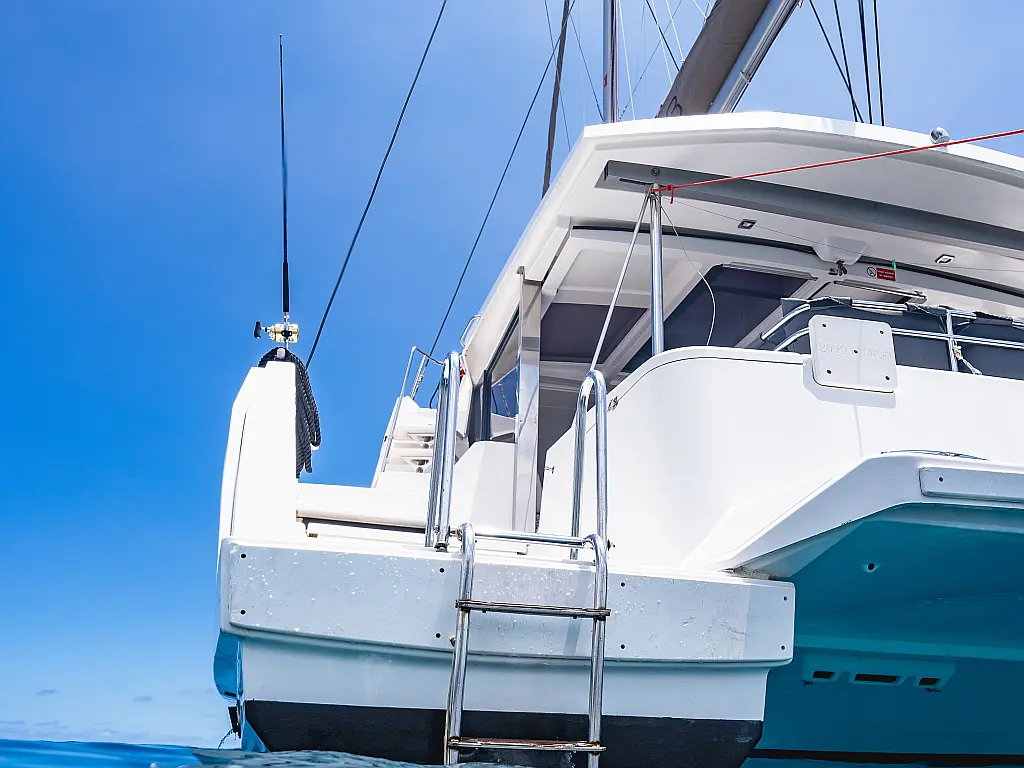 Winches eléctricos, Aire acondicionado, Generador, Desalinizadora, Bímini, Embarcación auxiliar, Motor fueraborda, Máquina de hielo, Cafetera, Nevera