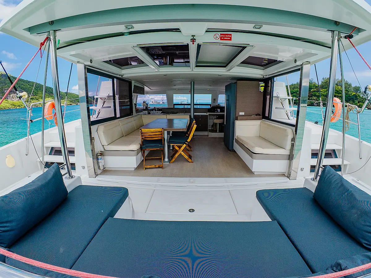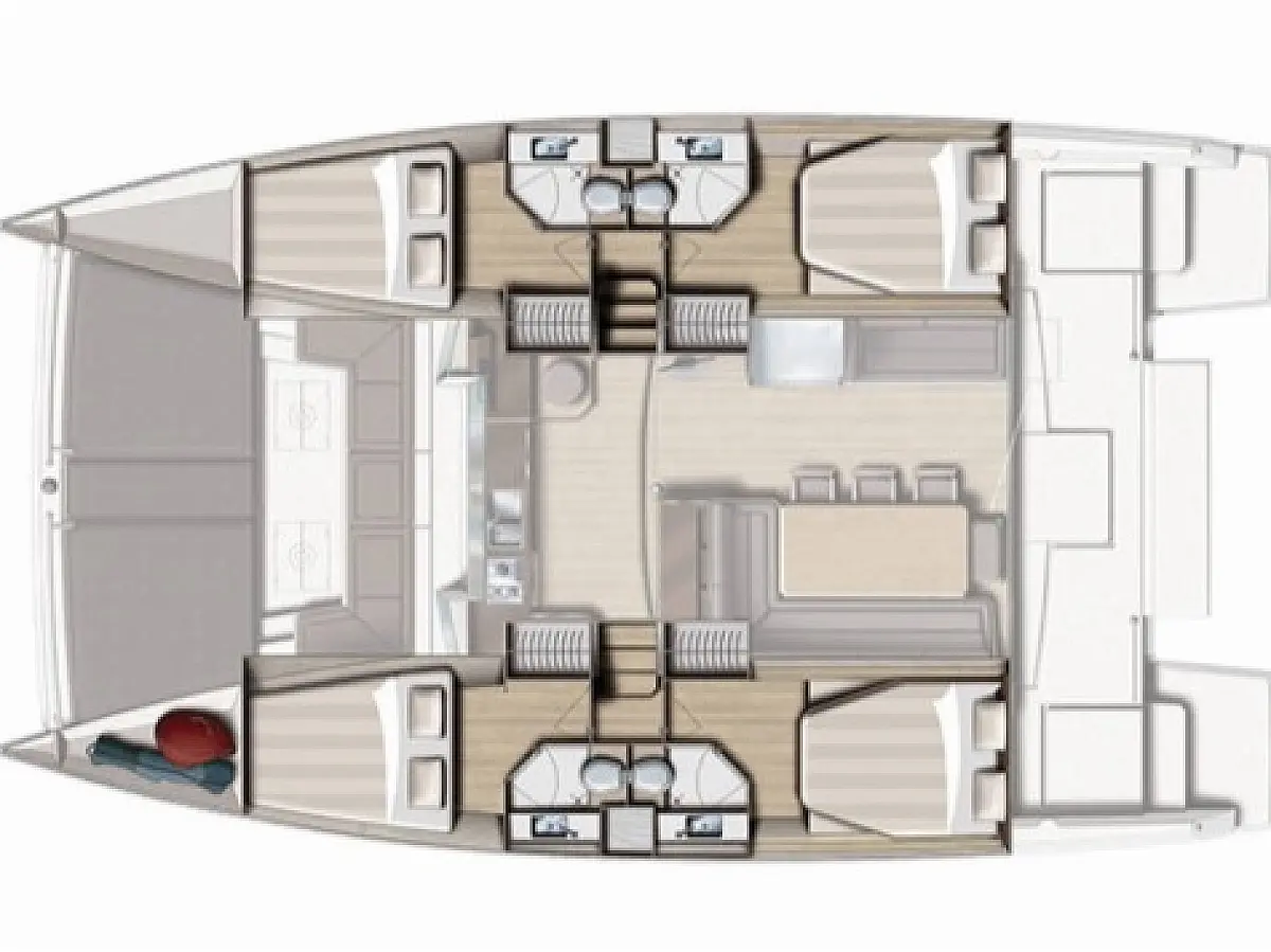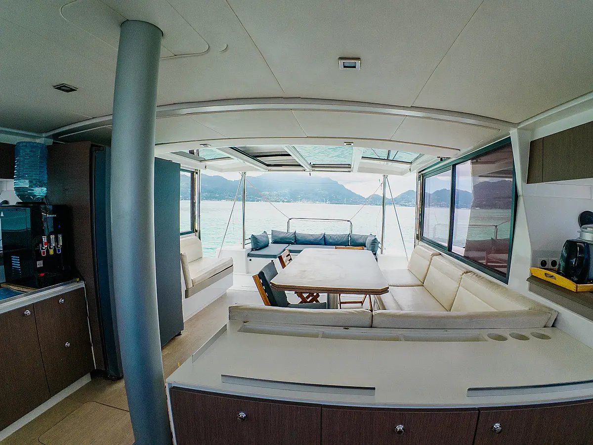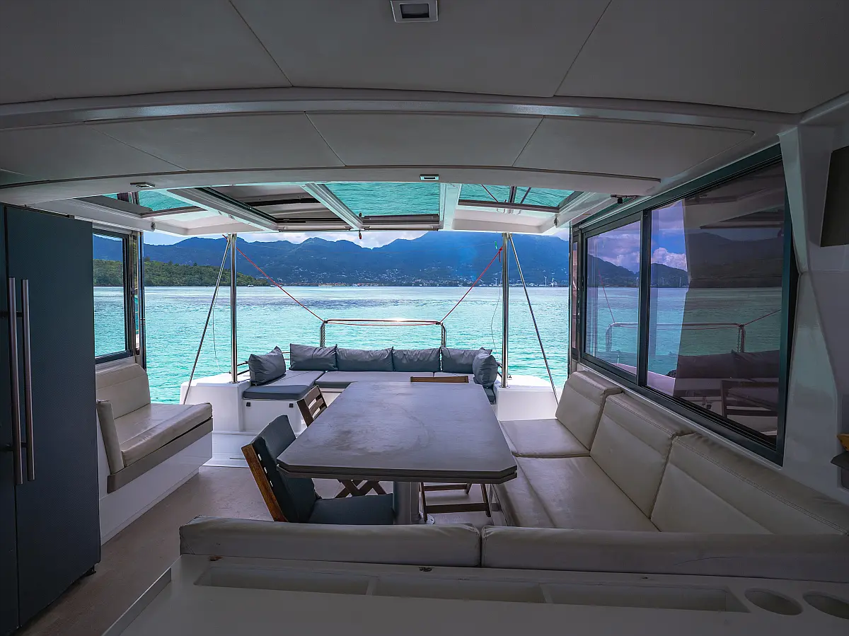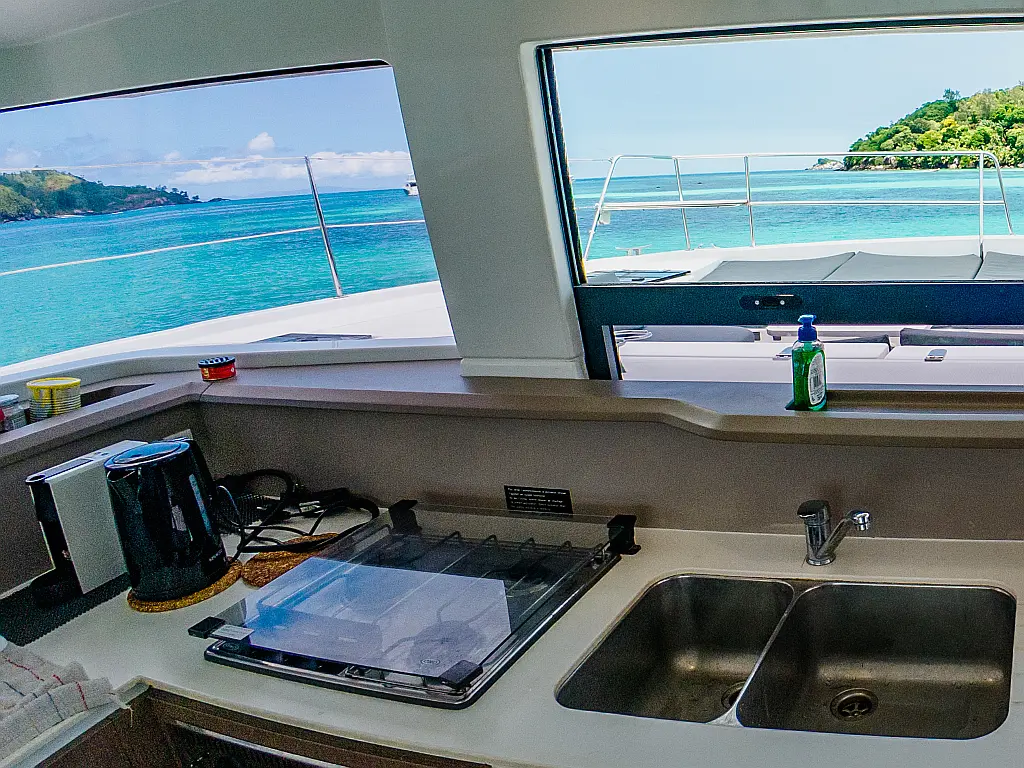 Winches eléctricos, Aire acondicionado, Generador, Desalinizadora, Bímini, Embarcación auxiliar, Motor fueraborda, Máquina de hielo, Cafetera, Nevera