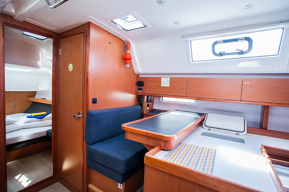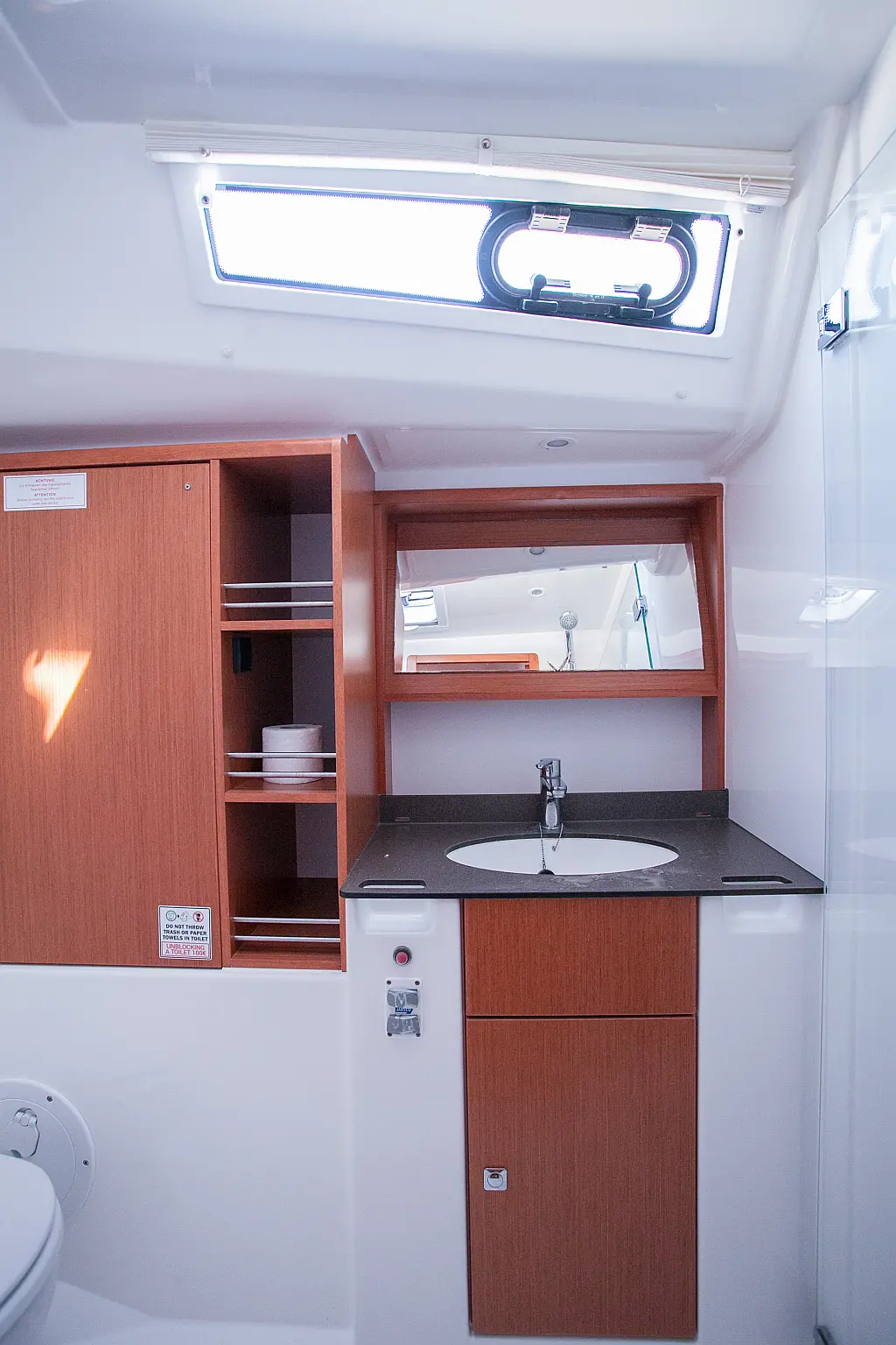 Bímini, Capota antirociones, Motor fueraborda, WC eléctrico, Altavoces exteriores, Winches eléctricos, Calefacción, Panel Solar, Cockpit cushions