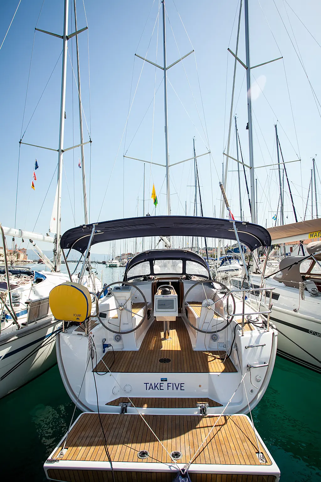 Bímini, Capota antirociones, Motor fueraborda, WC eléctrico, Teak Cockpit, Calefacción, Panel Solar, Cockpit cushions