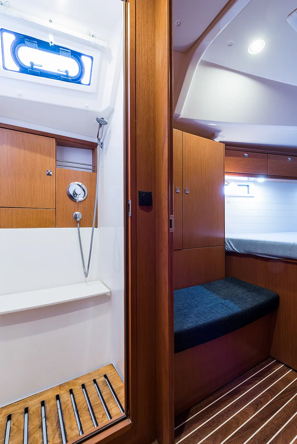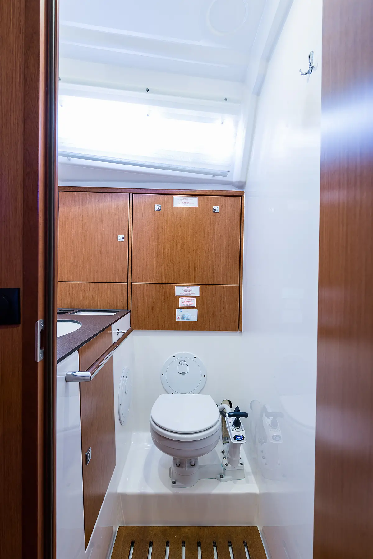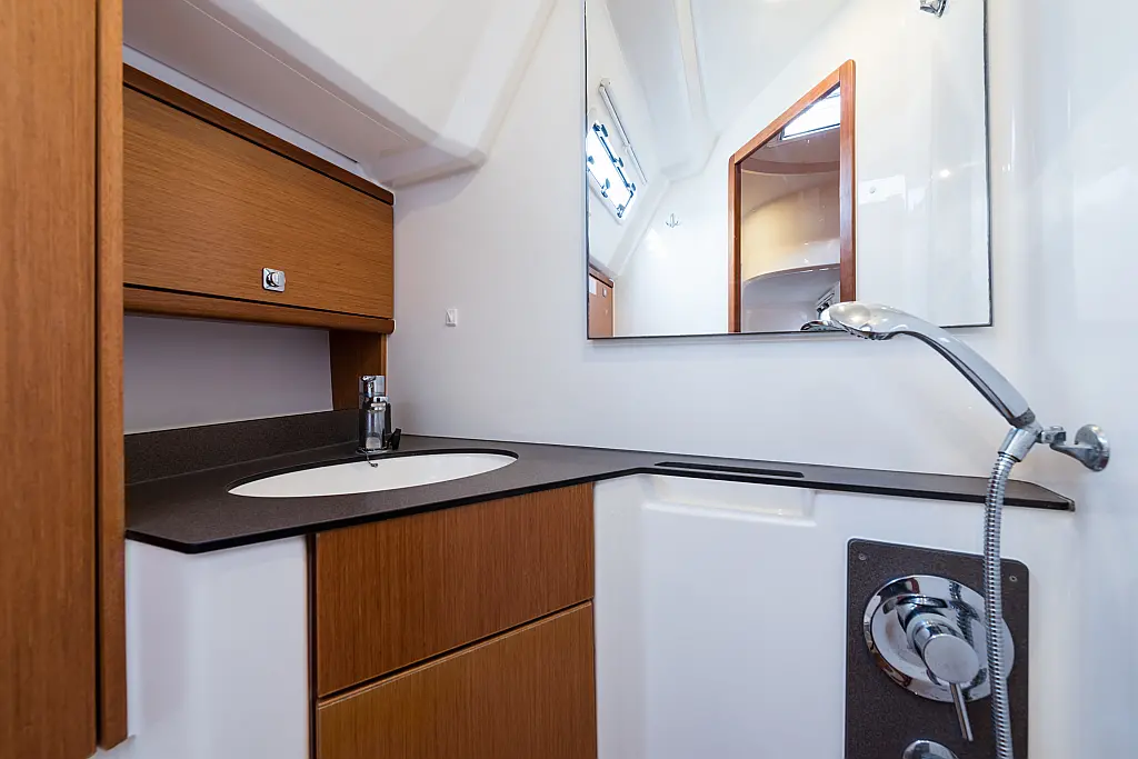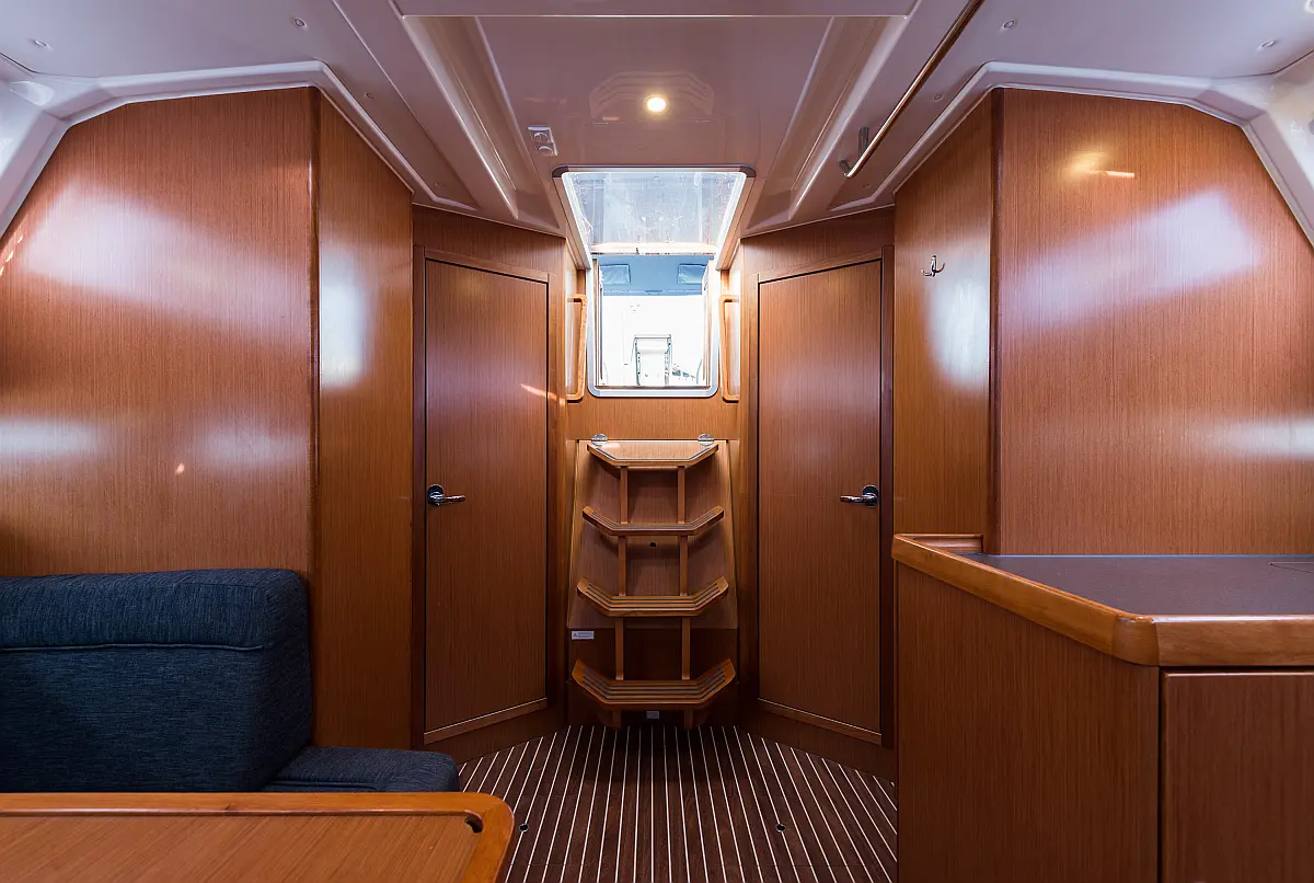Aire acondicionado, Depósito de aguas residuales, Bímini, Capota antirociones, Embarcación auxiliar, Altavoces exteriores, Winches eléctricos, WC eléctrico, Panel Solar, Teak Cockpit