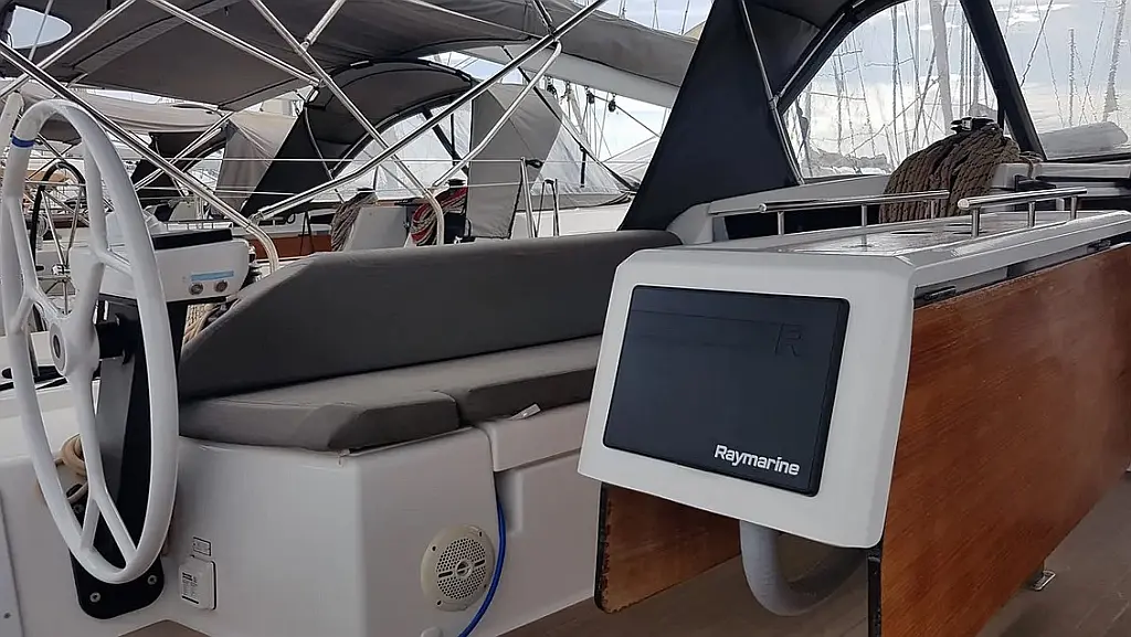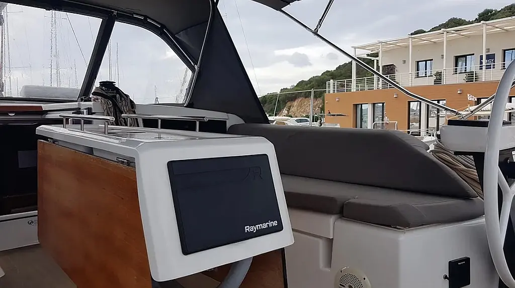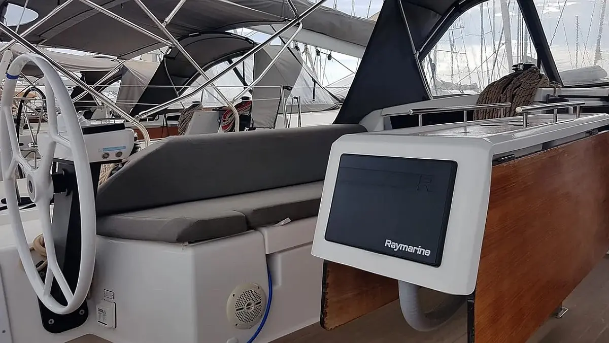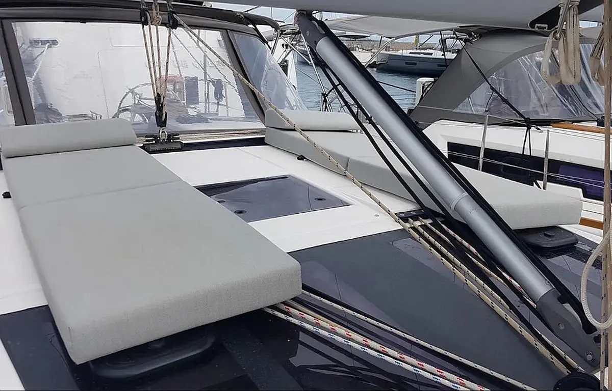 Teak Cockpit, Cockpit cushions, Parrilla en carlinga, Cubierta de teca, WC eléctrico, Wi-Fi e Internet, Winches eléctricos, Pasarela hidráulica, Convertidor, Plataforma de baño