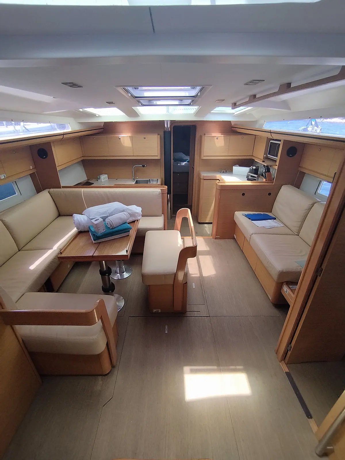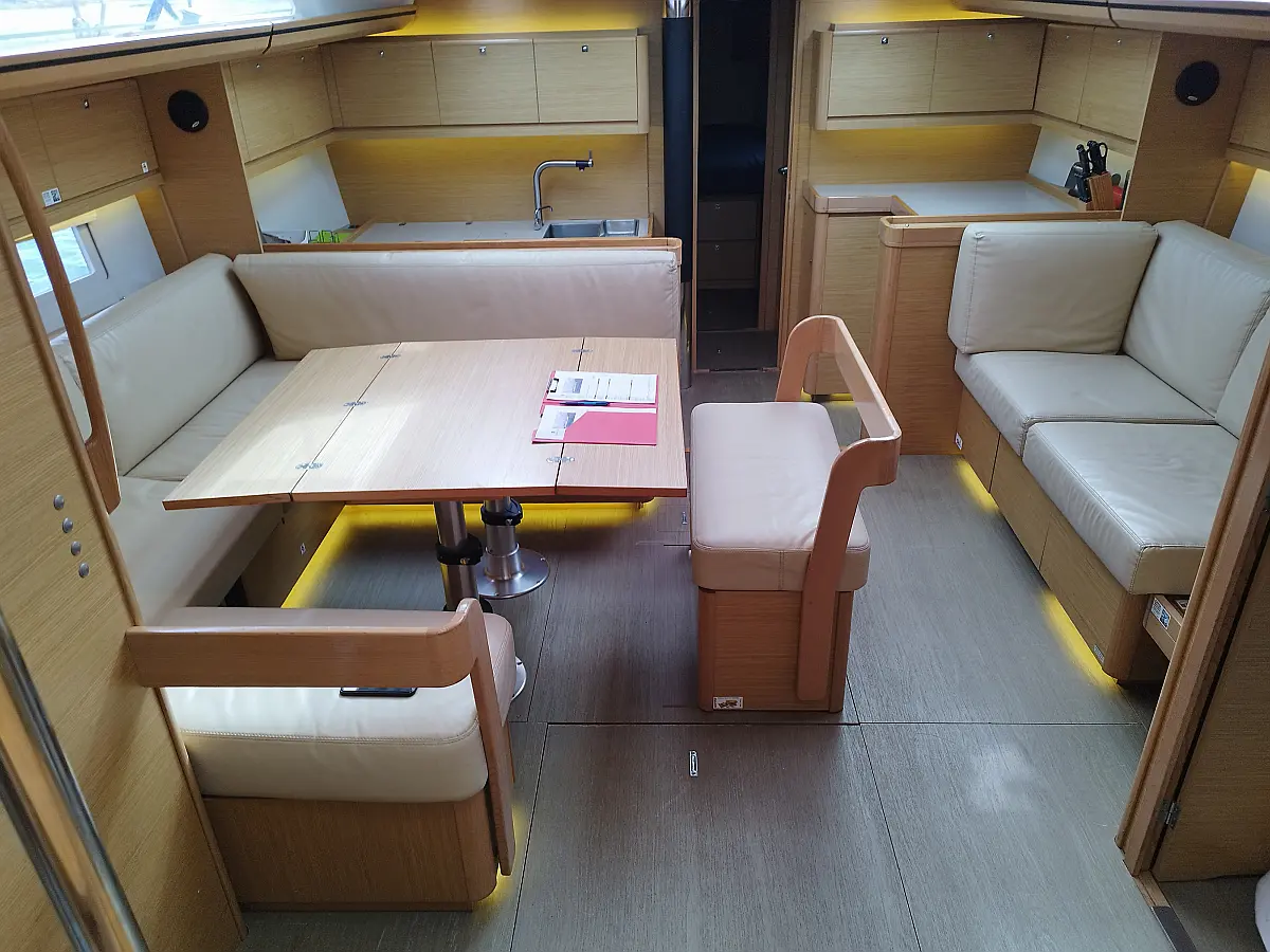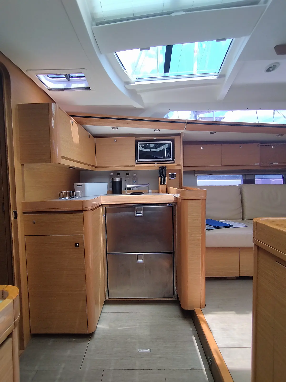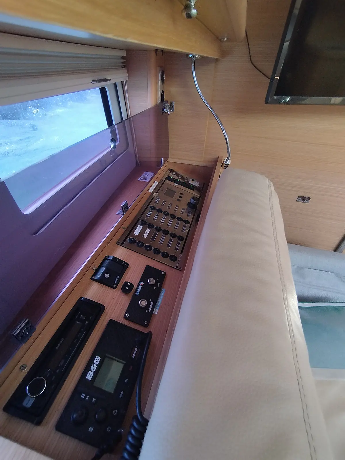 Aire acondicionado, Cockpit cushions, Parrilla en carlinga, Teak Cockpit, WC eléctrico, Wi-Fi e Internet, Desalinizadora, Winches eléctricos, Pasarela hidráulica, Convertidor, Plataforma de baño
