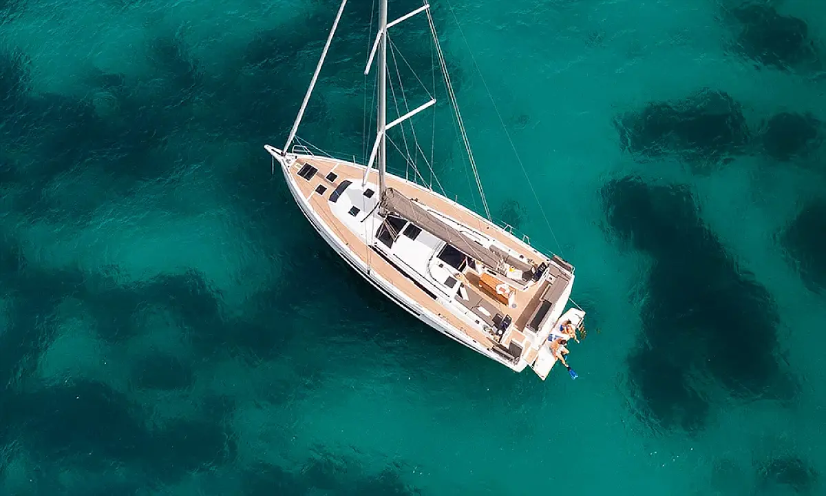 Bímini, Embarcación auxiliar, Depósito de aguas residuales, Convertidor, Nevera, Capota antirociones, Teak Cockpit