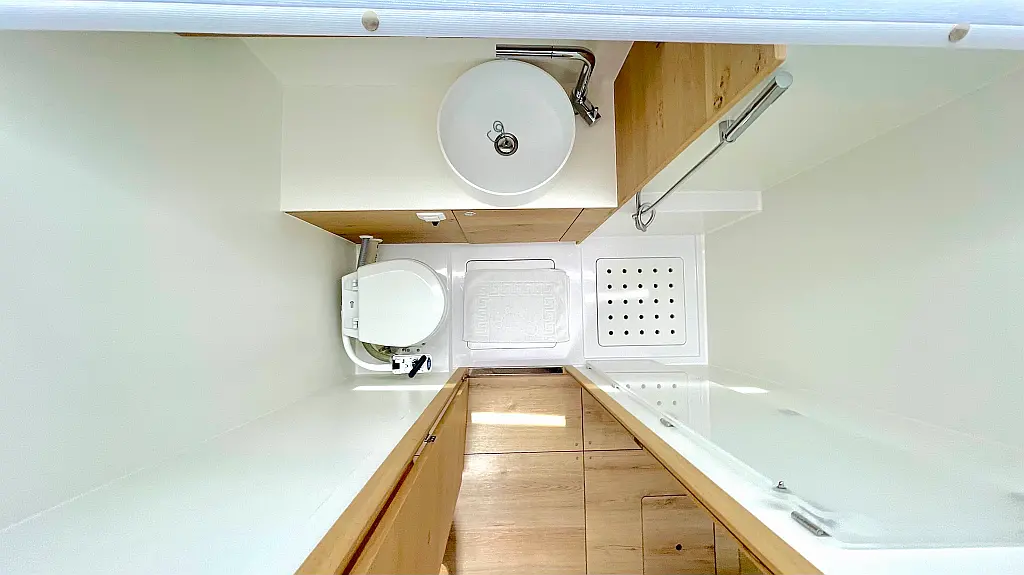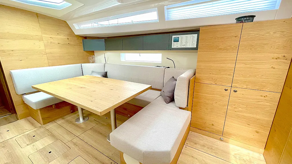 Cockpit cushions, Aire acondicionado, Calefacción, Convertidor, Teak Cockpit, Plataforma de baño, Bímini, Capota antirociones, Nevera, Wi-Fi e Internet