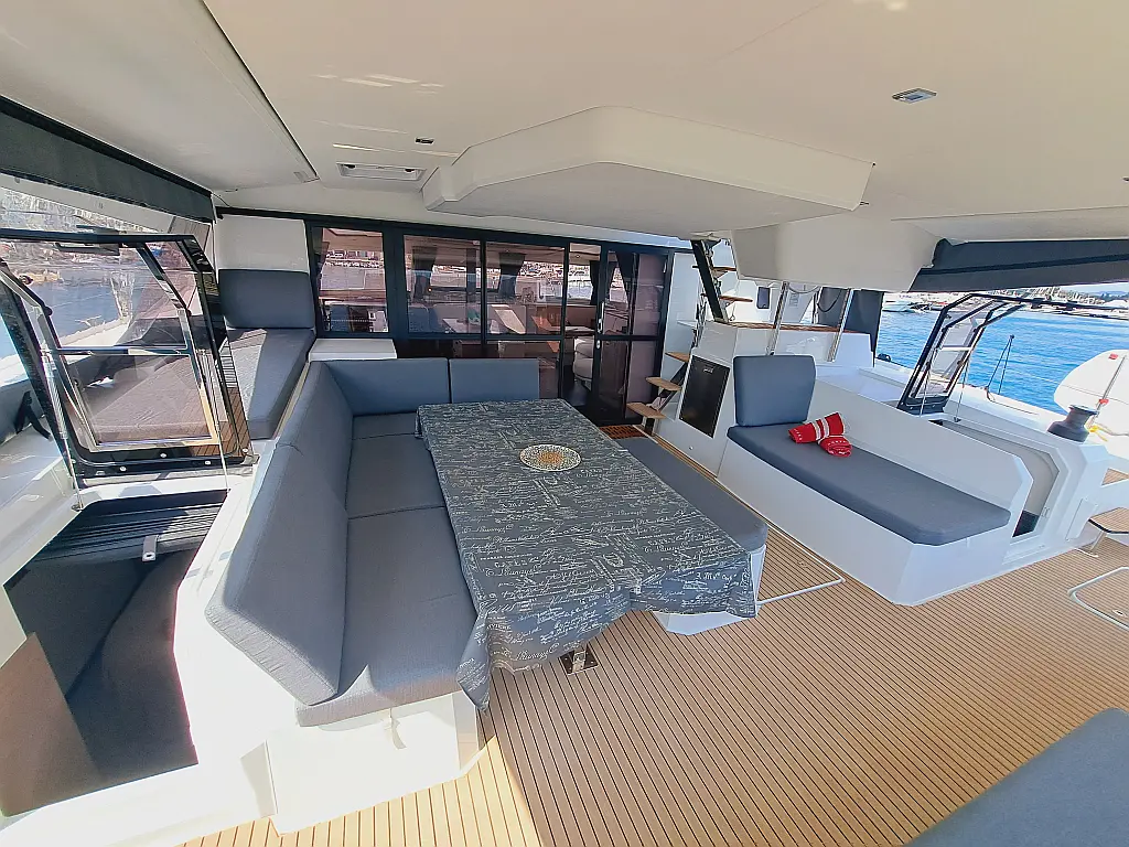 Generador, Desalinizadora, Winches eléctricos, Aire acondicionado, Altavoces exteriores, Cockpit cushions, WC eléctrico, Embarcación auxiliar, Nevera