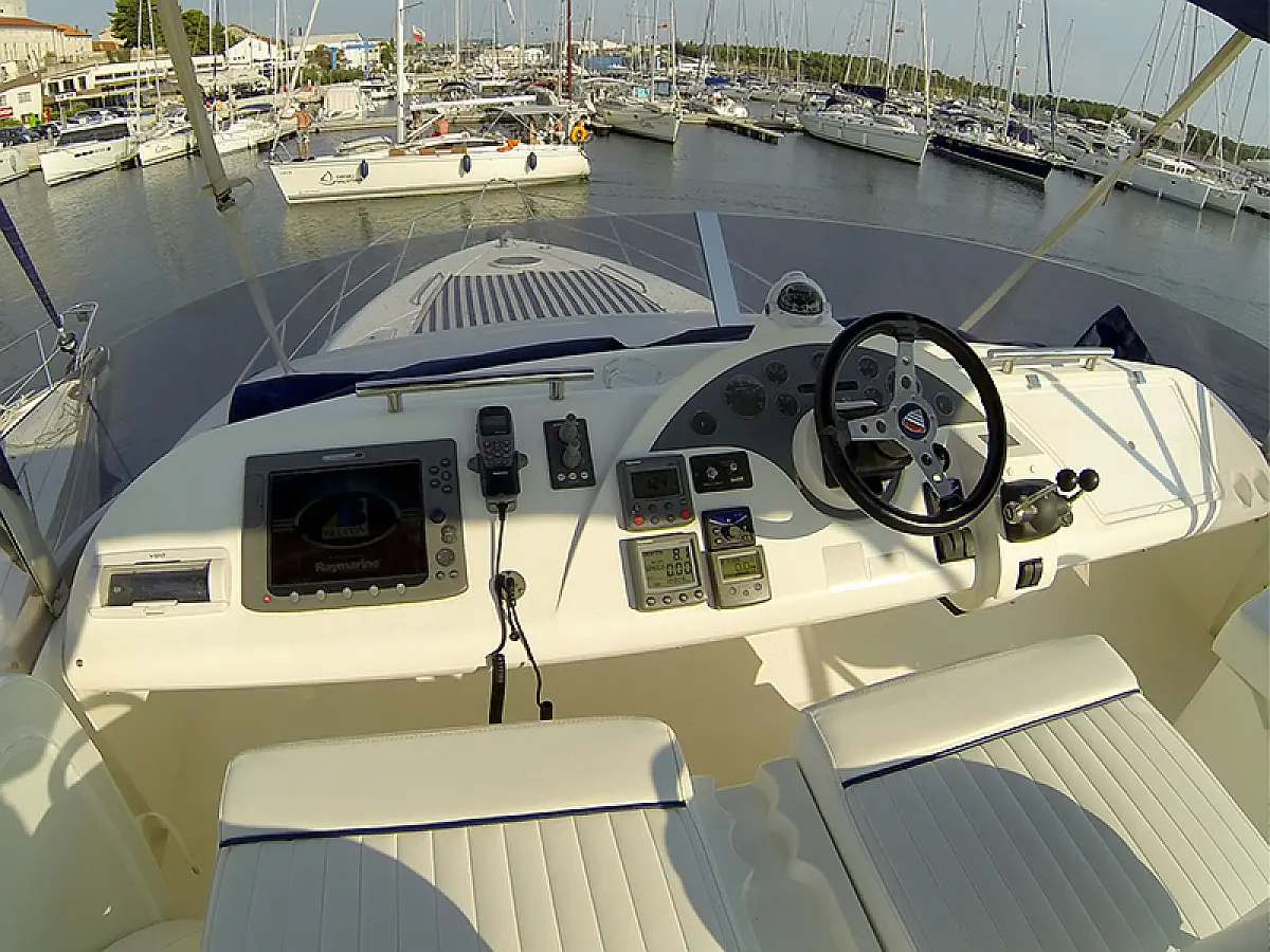Generador, Calefacción, Aire acondicionado, Cockpit cushions, Motor fueraborda, Embarcación auxiliar, Flybridge, Wi-Fi e Internet