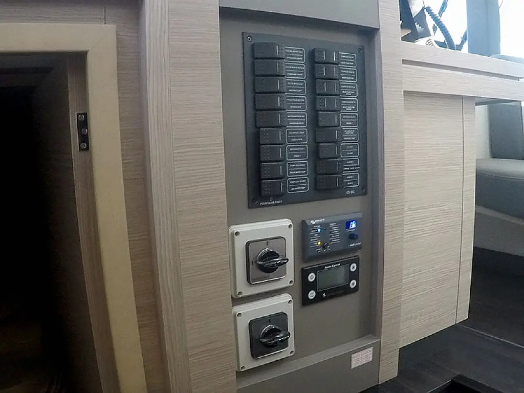 Generador, Calefacción, Aire acondicionado, Nevera, Parrilla en carlinga, Cockpit cushions, Motor fueraborda, Embarcación auxiliar, Winches eléctricos, Wi-Fi e Internet