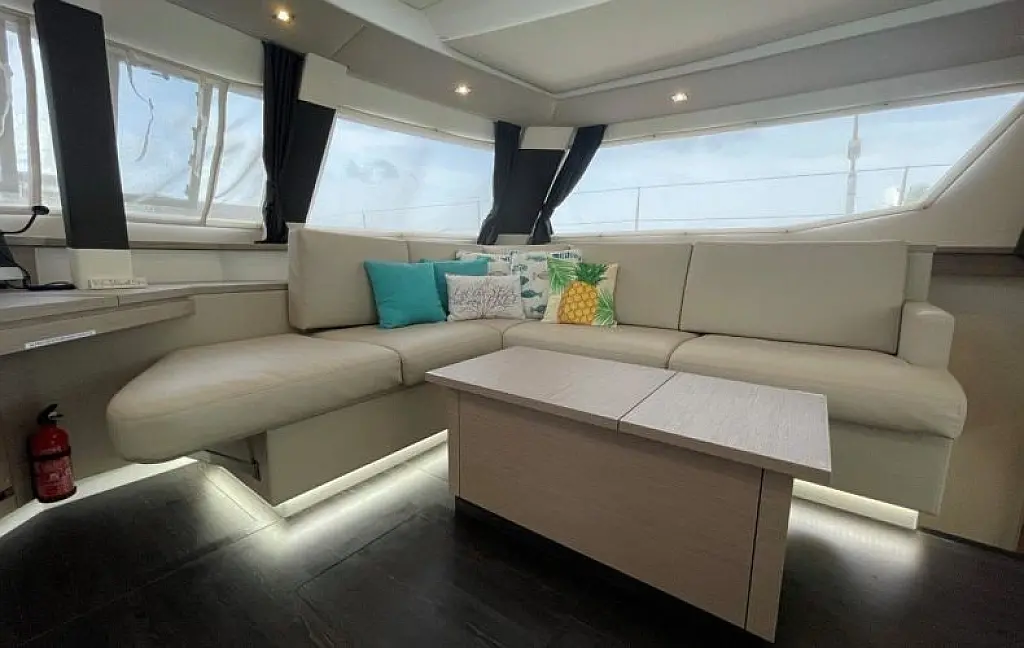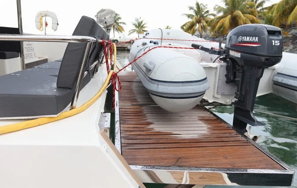 Cafetera, Wi-Fi e Internet, Convertidor, Embarcación auxiliar, Aire acondicionado, Generador, Cockpit cushions, Altavoces exteriores, Bímini