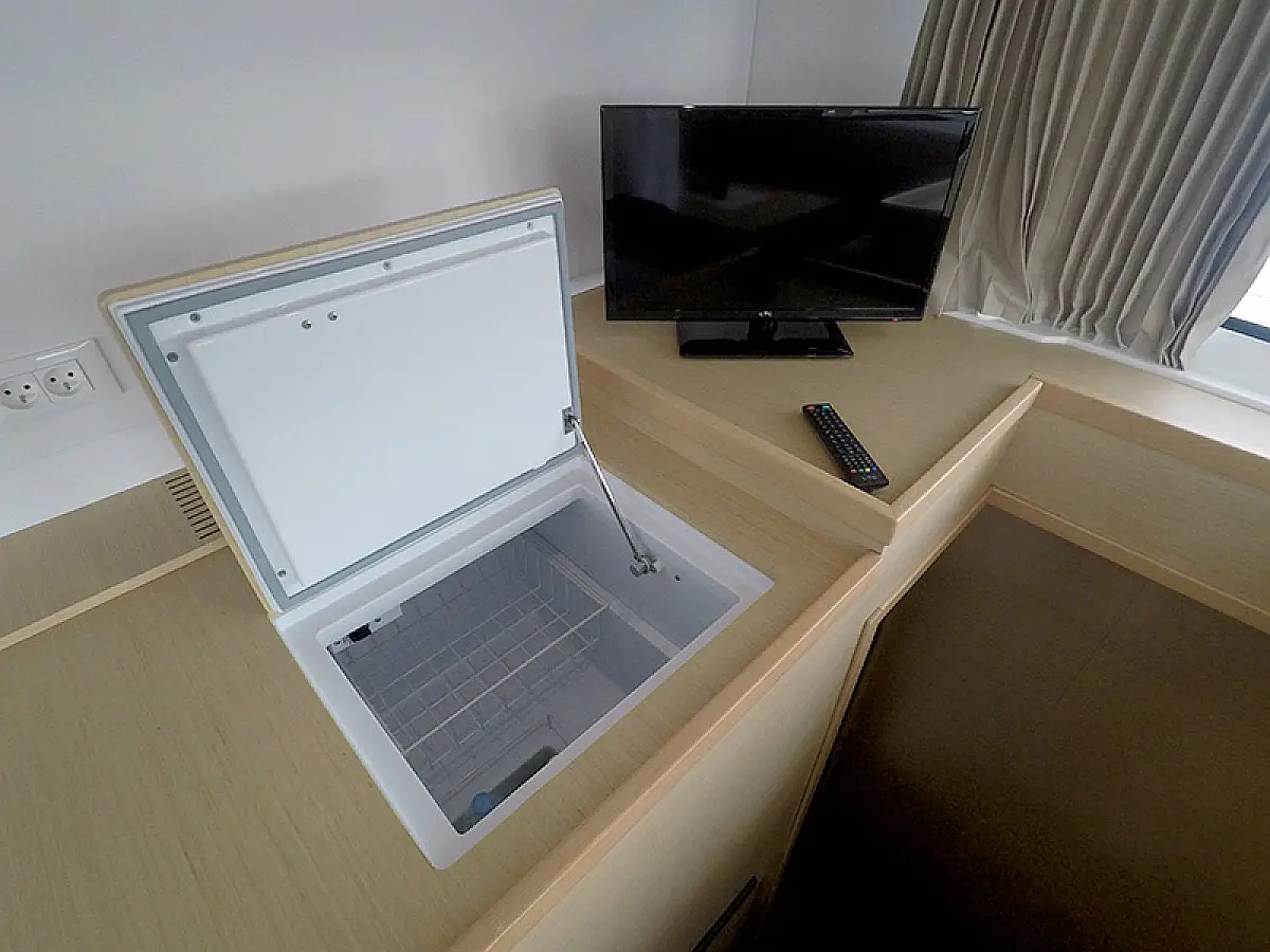 Generador, Calefacción, Desalinizadora, Panel Solar, Aire acondicionado, Nevera, Bímini, Cockpit cushions, Motor fueraborda, Embarcación auxiliar, Winches eléctricos, Wi-Fi e Internet