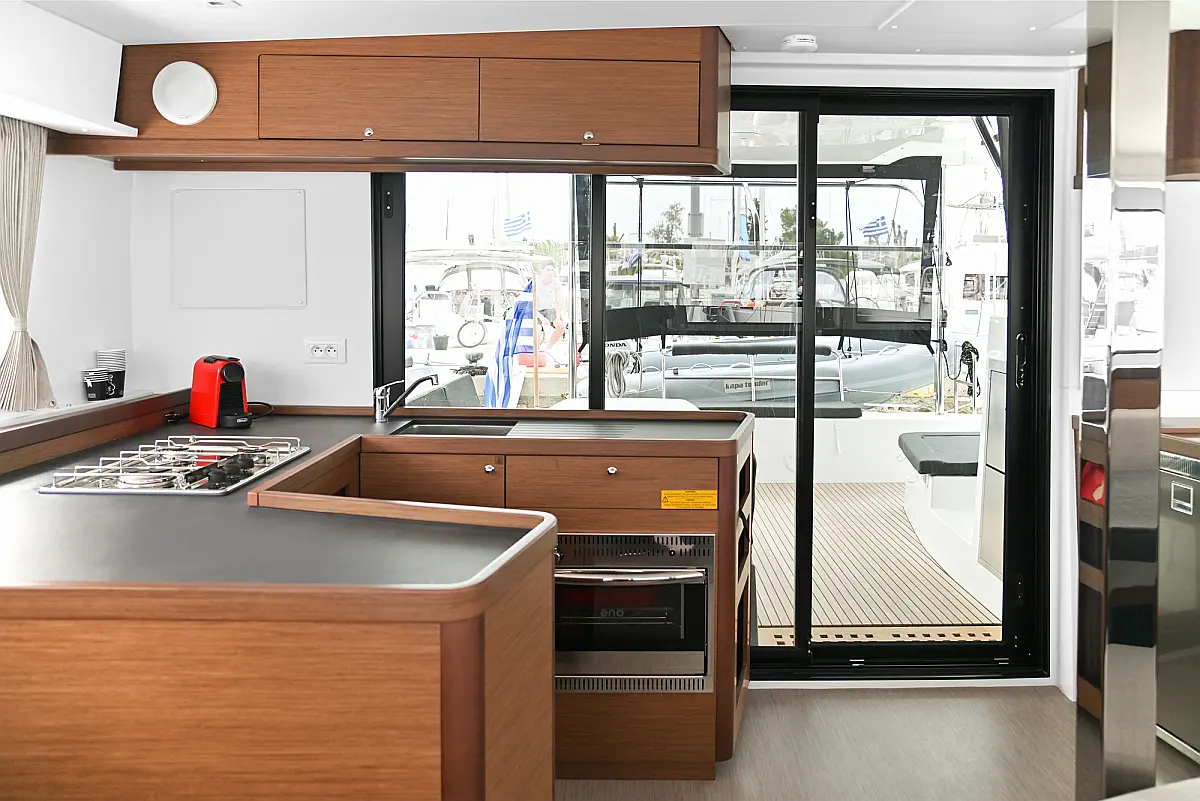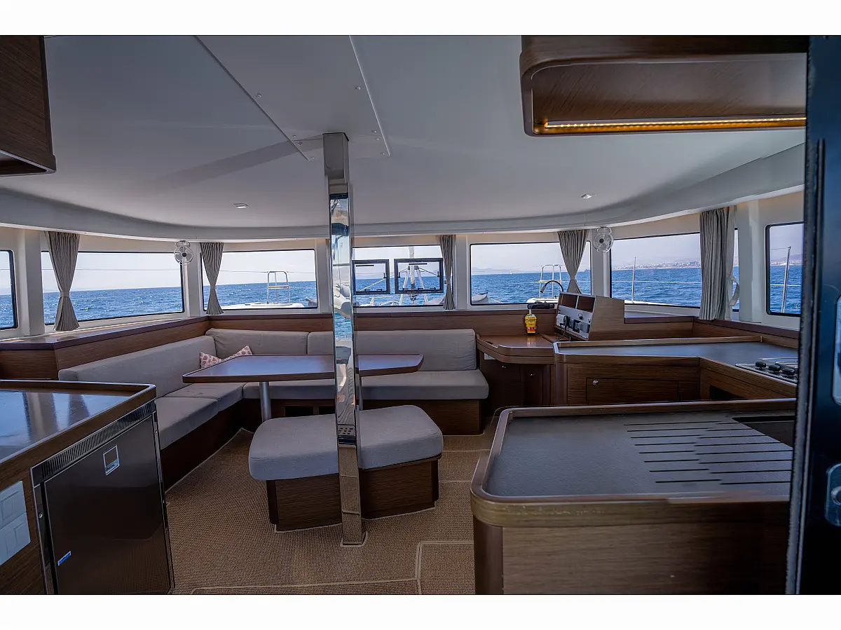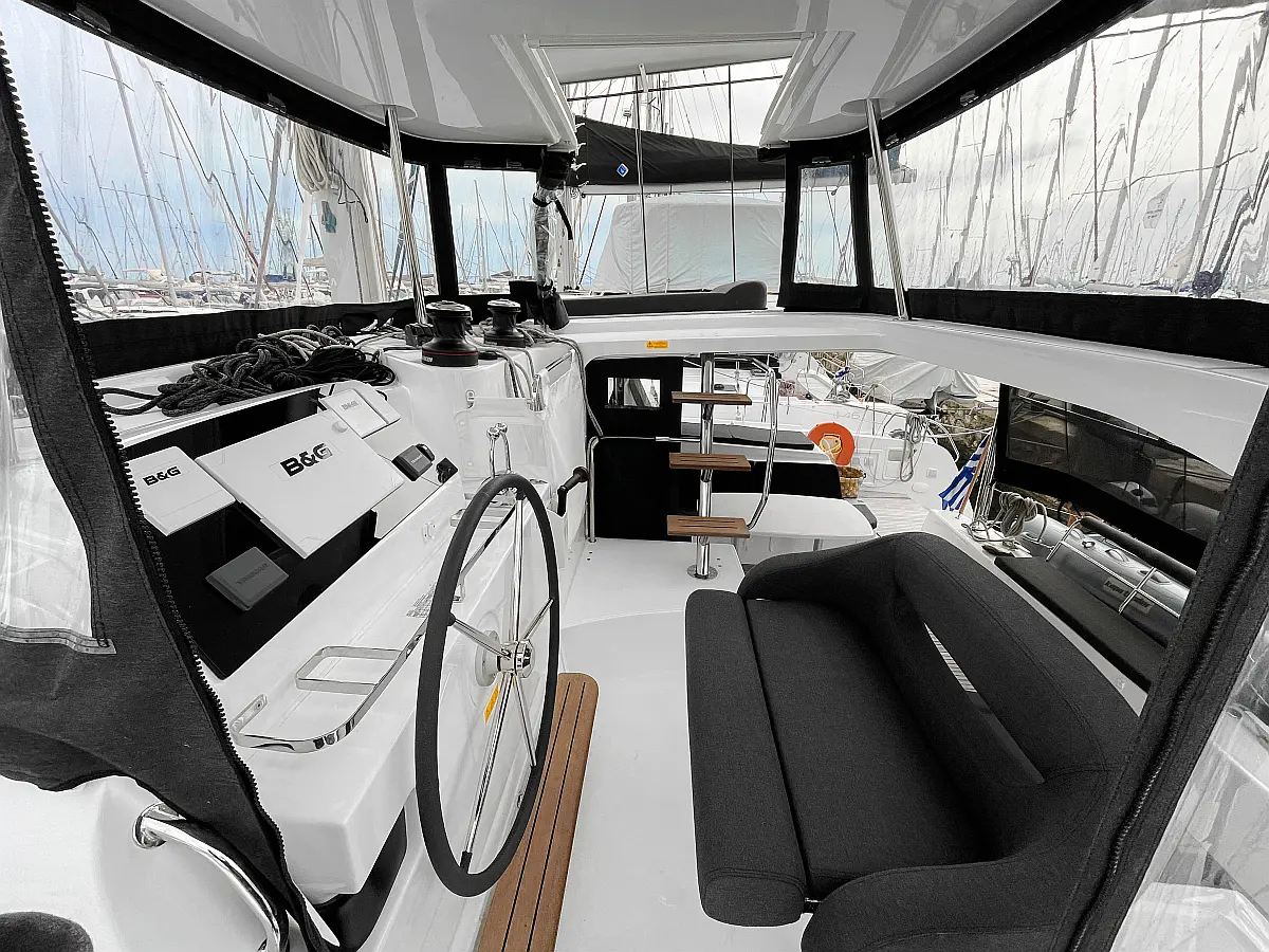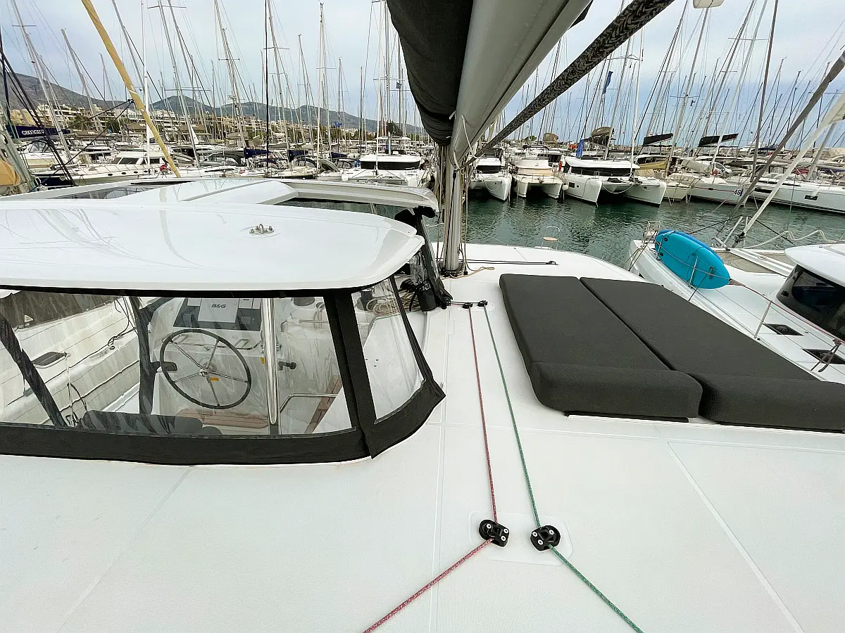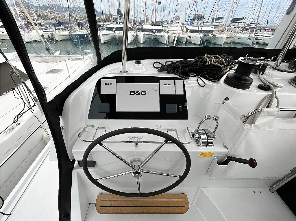 Aire acondicionado, Desalinizadora, Convertidor, WC eléctrico, Panel Solar, Motor fueraborda, Embarcación auxiliar, Cubierta de teca, Altavoces exteriores, Cockpit cushions, Winches eléctricos