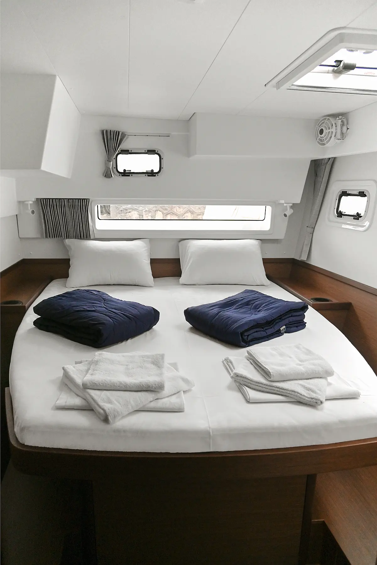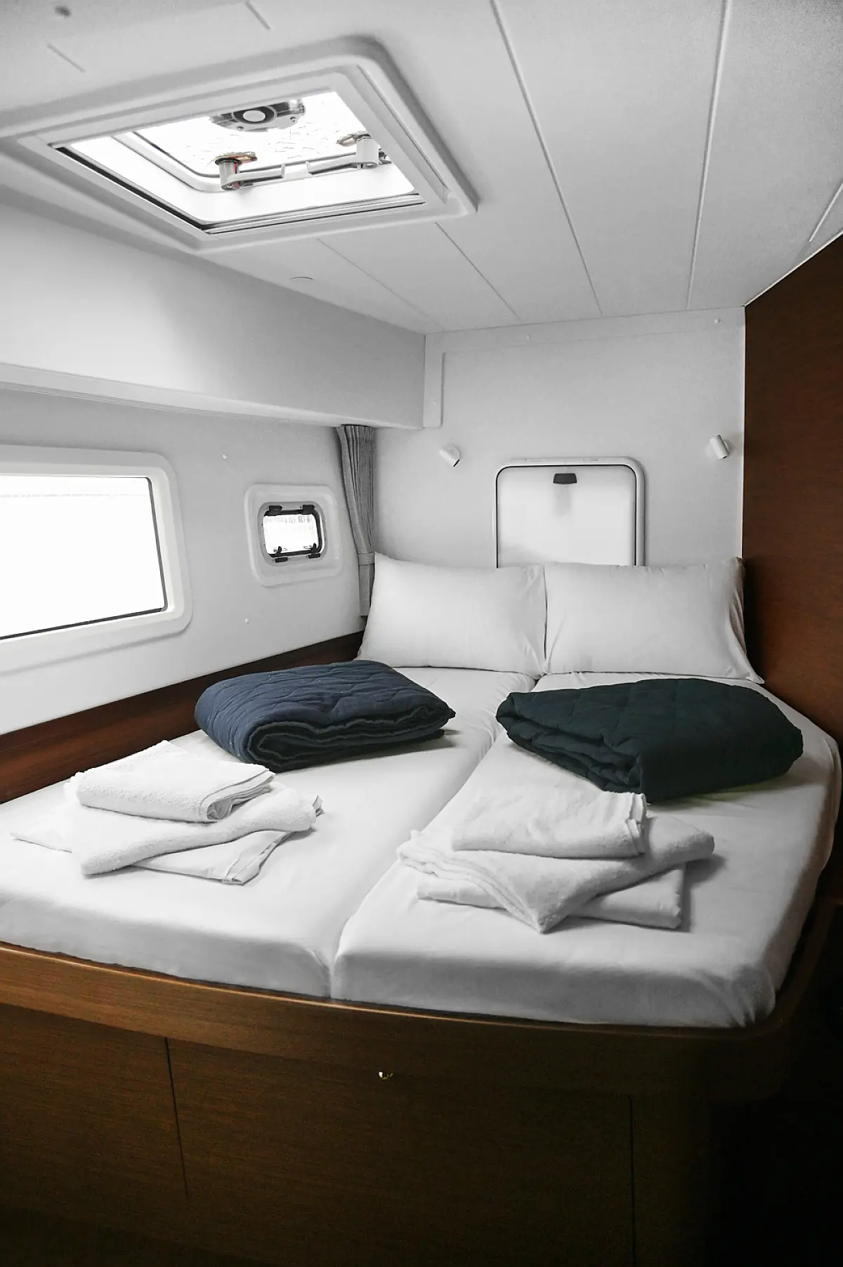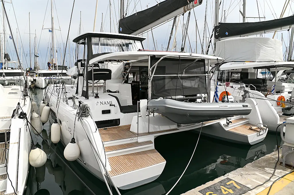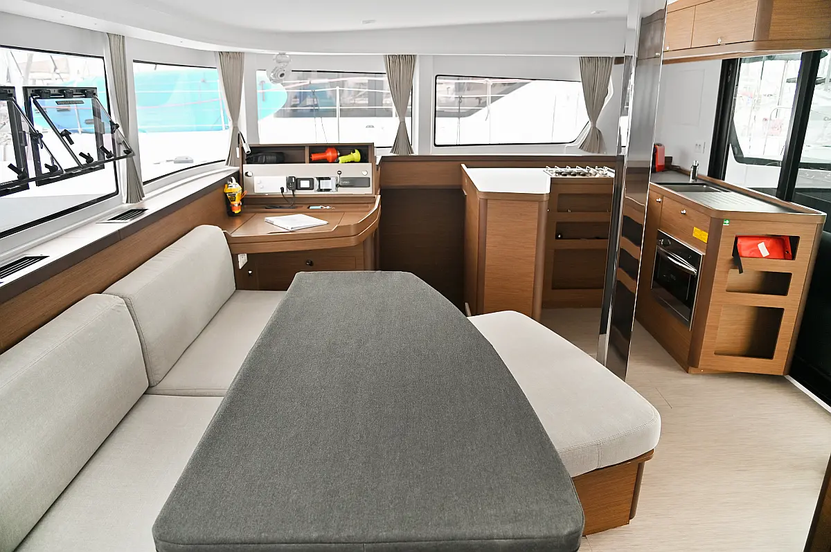 Aire acondicionado, Desalinizadora, Convertidor, WC eléctrico, Panel Solar, Motor fueraborda, Embarcación auxiliar, Cubierta de teca, Altavoces exteriores, Cockpit cushions, Winches eléctricos