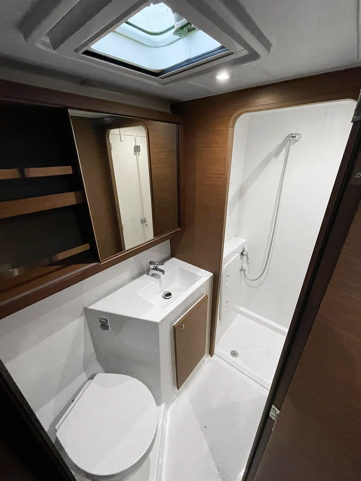 5 (4 ensuite bathrooms and 1 outside under the starboard cabin)