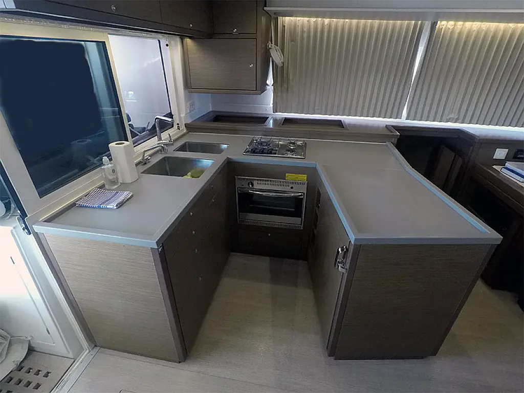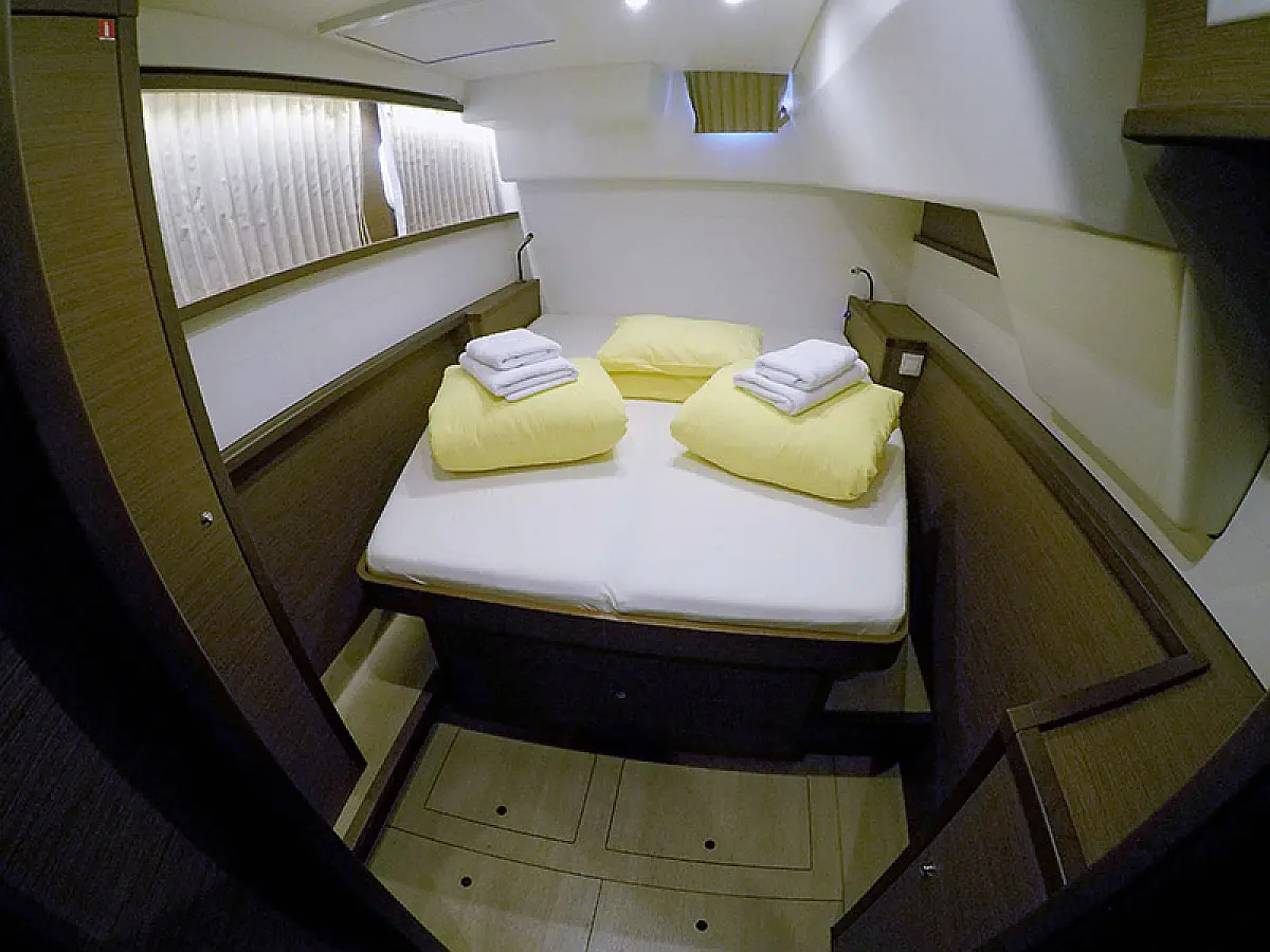 Generador, Calefacción, Desalinizadora, Aire acondicionado, Nevera, Bímini, Cockpit cushions, Motor fueraborda, Embarcación auxiliar, Wi-Fi e Internet