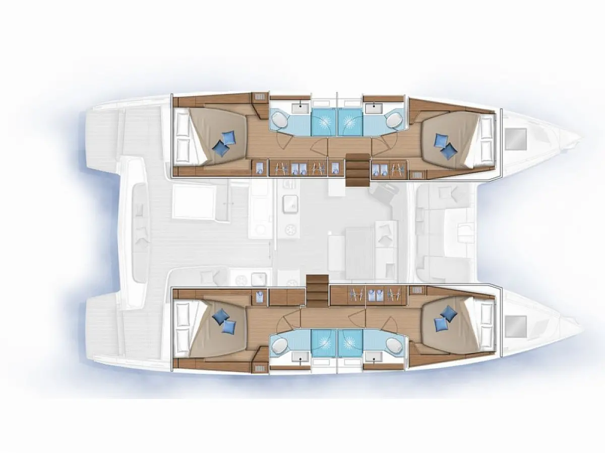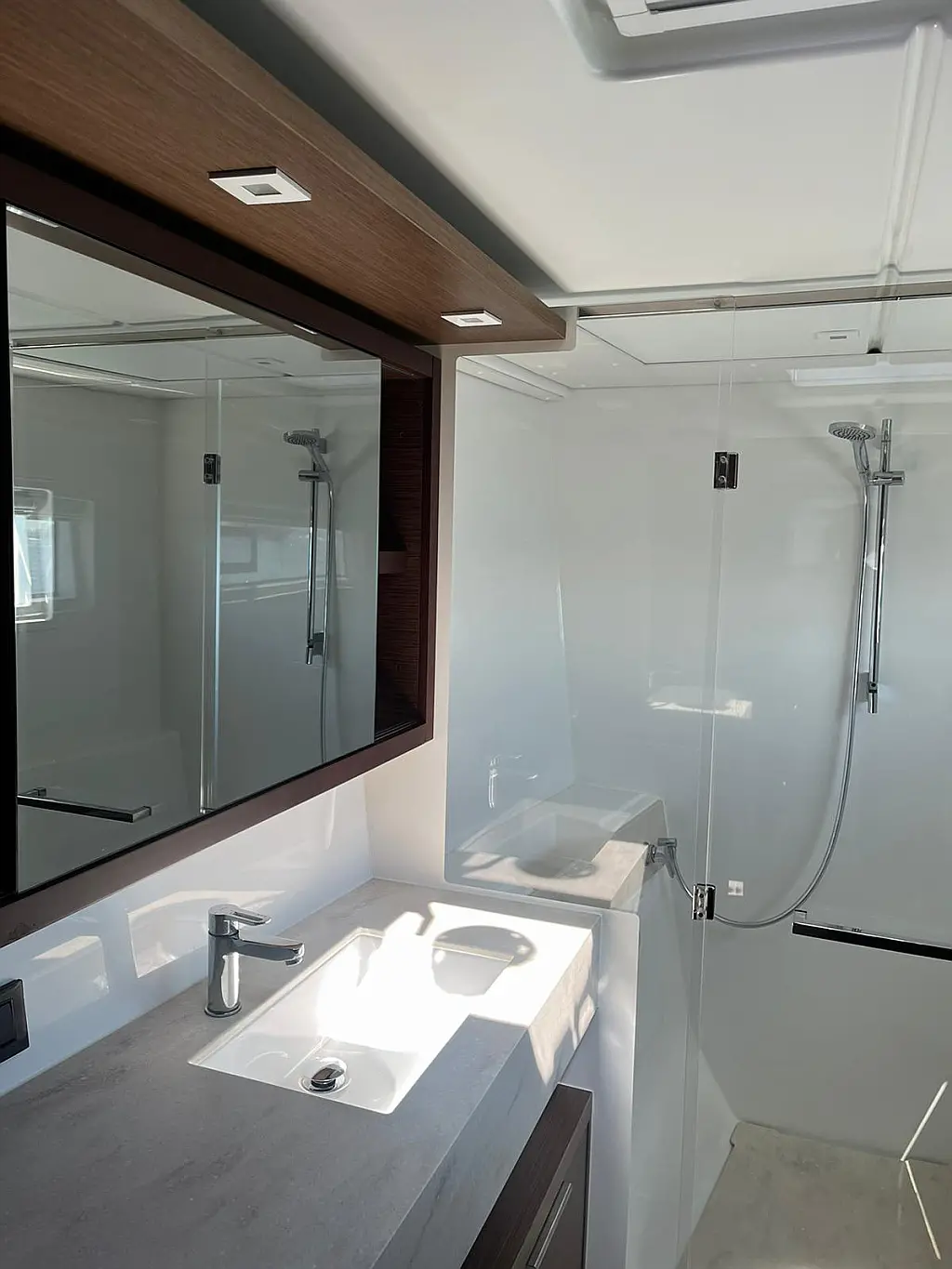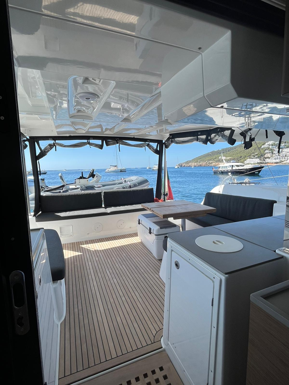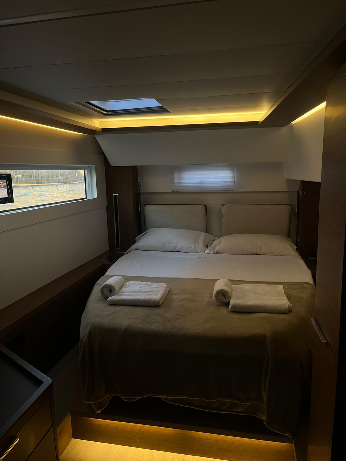 Generador, Embarcación auxiliar, WC eléctrico, Altavoces exteriores, Bímini, Cubierta de teca, Desalinizadora, Nevera