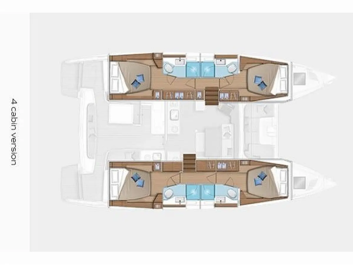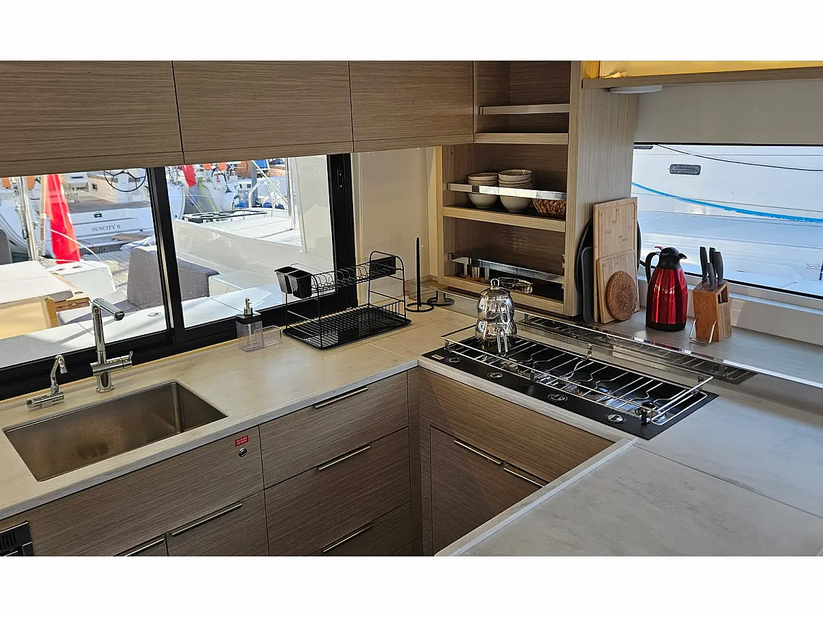 Aire acondicionado, Flybridge, Desalinizadora, Generador, Embarcación auxiliar, Convertidor, Winches eléctricos, Motor fueraborda, WC eléctrico, Bímini