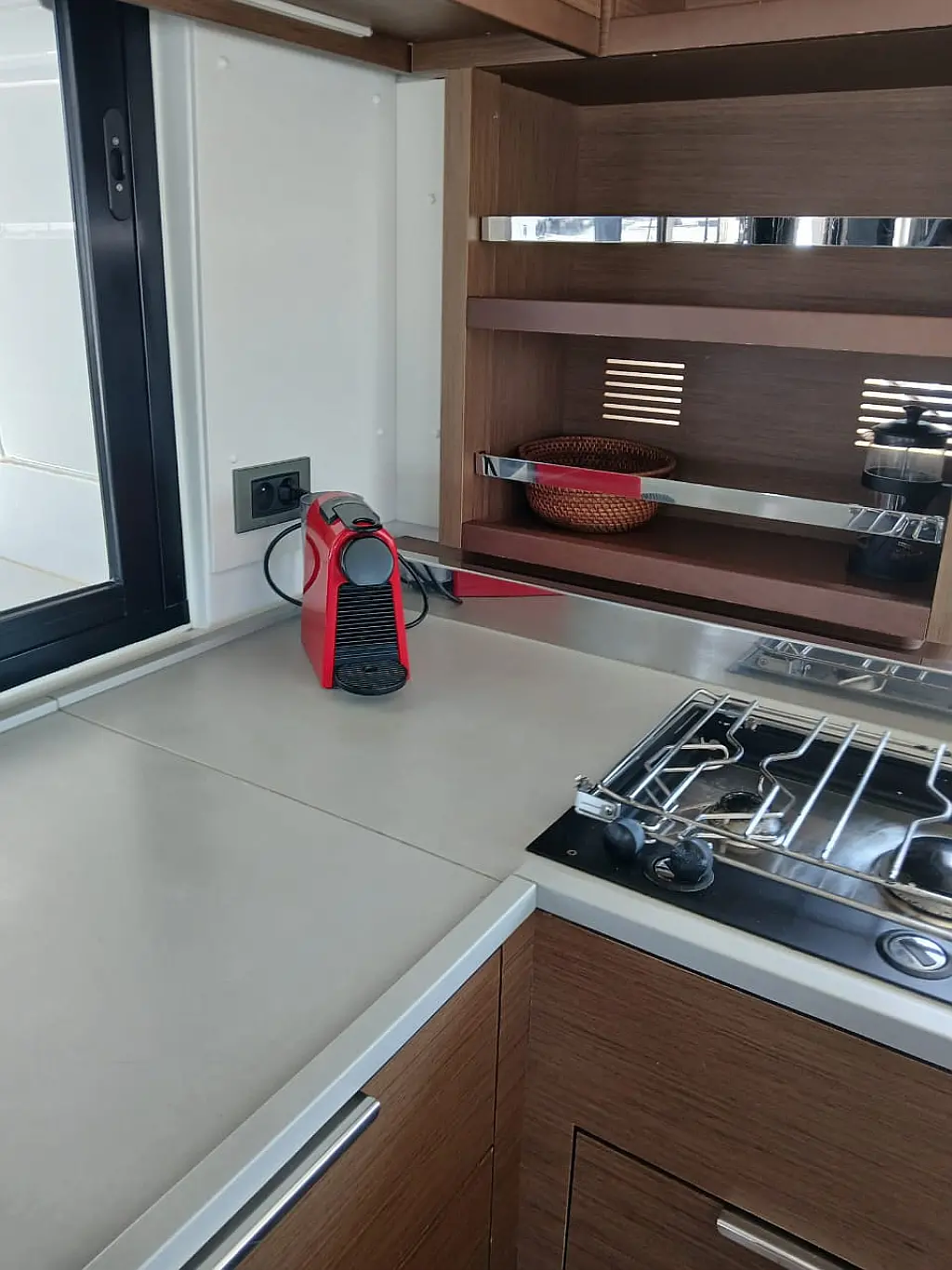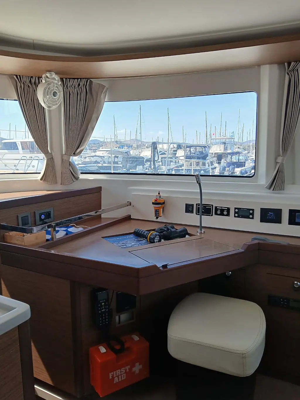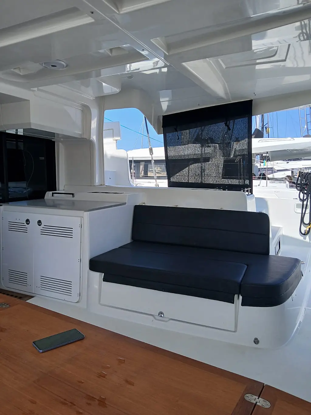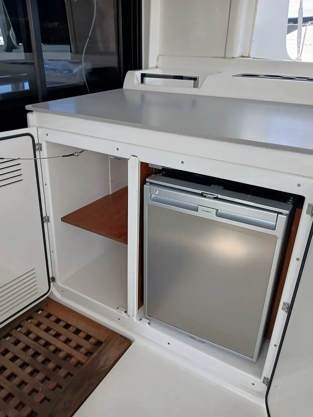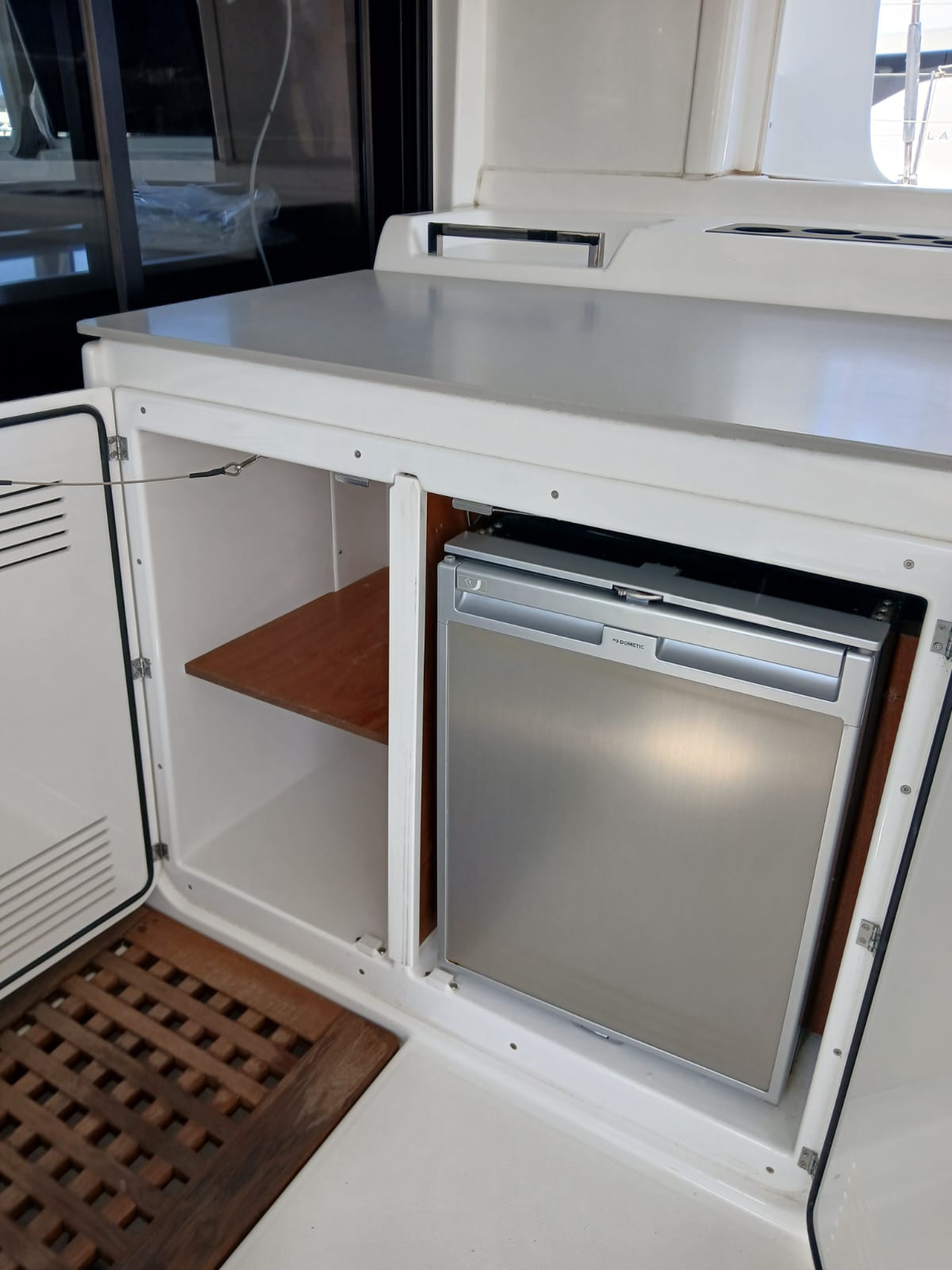 Aire acondicionado, Generador, Convertidor, Desalinizadora, Bímini, Cockpit cushions, Embarcación auxiliar, Nevera, Motor fueraborda, Capota antirociones