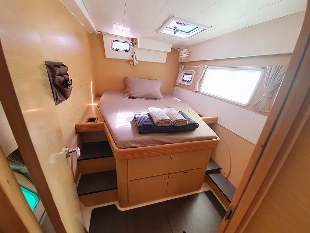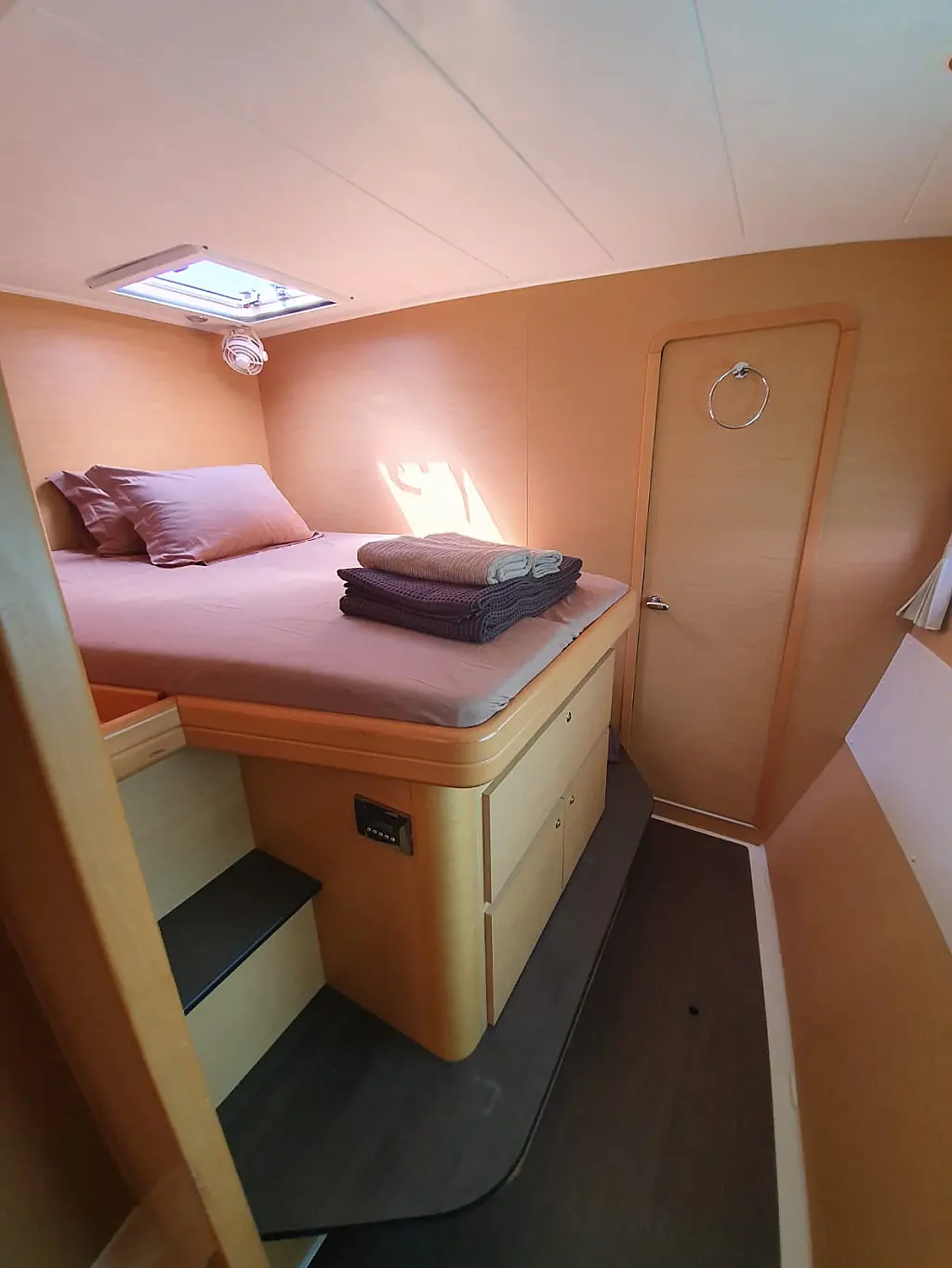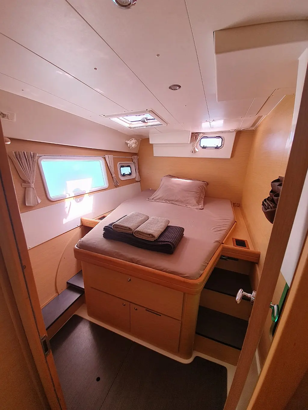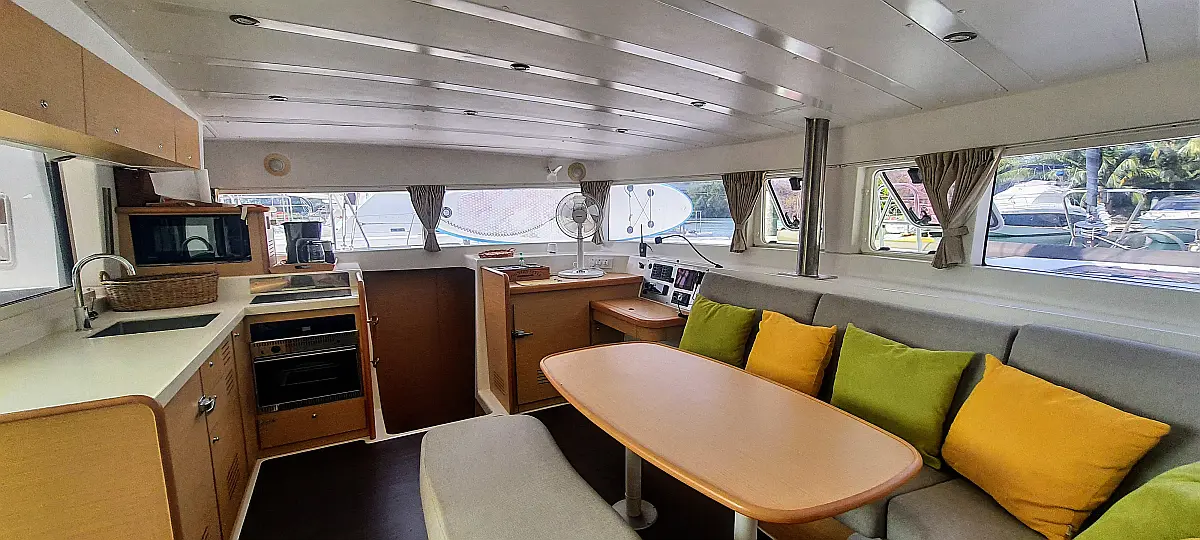 Altavoces exteriores, Desalinizadora, Aire acondicionado, Bímini, Nevera, Generador, Panel Solar, Motor fueraborda, Embarcación auxiliar, Parrilla en carlinga