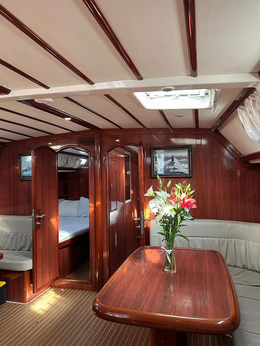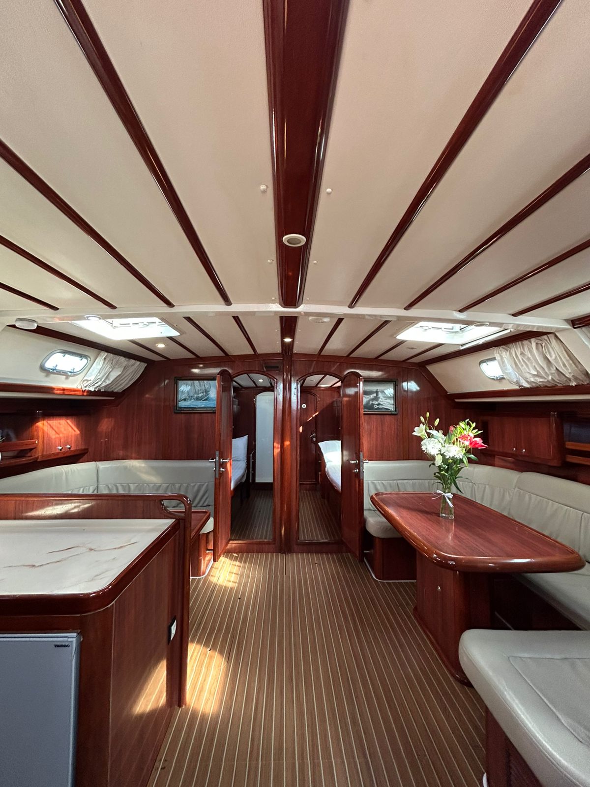 Aire acondicionado, Panel Solar, Embarcación auxiliar, Altavoces exteriores, Calefacción, Bímini, Cubierta de teca, Nevera, Capota antirociones
