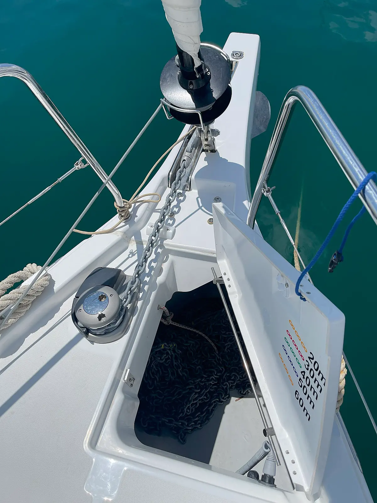 Embarcación auxiliar, Cockpit cushions, Capota antirociones, Bímini, Nevera, WC eléctrico, Panel Solar
