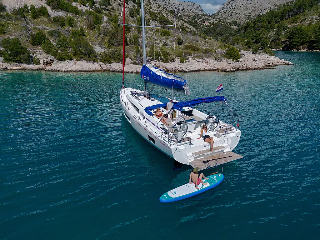 Nevera, Cafetera, Altavoces exteriores, Cockpit cushions, Embarcación auxiliar, Bímini, Capota antirociones