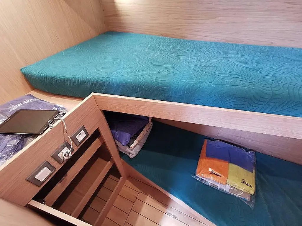 Bímini, Cockpit cushions, Cafetera, Embarcación auxiliar, Nevera, Capota antirociones, Panel Solar, Generador, Aire acondicionado