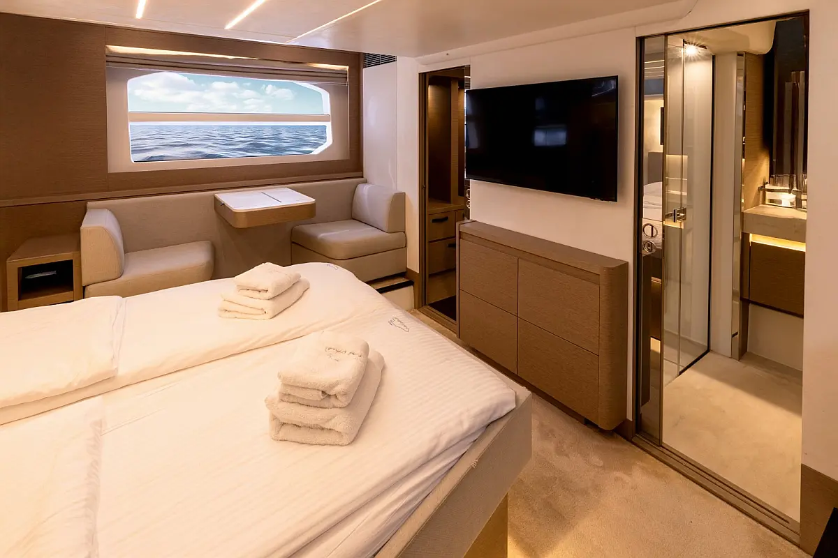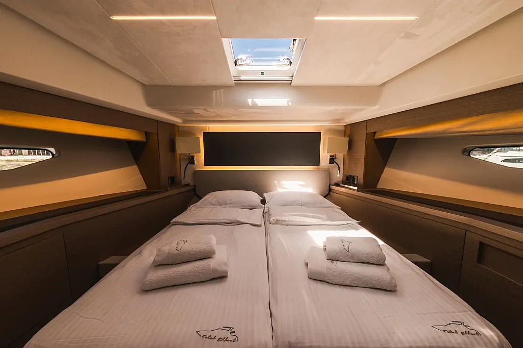 Teak Cockpit, Cubierta de teca, Embarcación auxiliar, Pasarela hidráulica, WC eléctrico, Convertidor, Calefacción, Aire acondicionado, Generador, Nevera