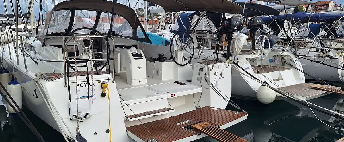 Bímini, Plataforma de baño, Capota antirociones, Embarcación auxiliar, Motor fueraborda, Nevera, Altavoces exteriores, Wi-Fi e Internet, Calefacción