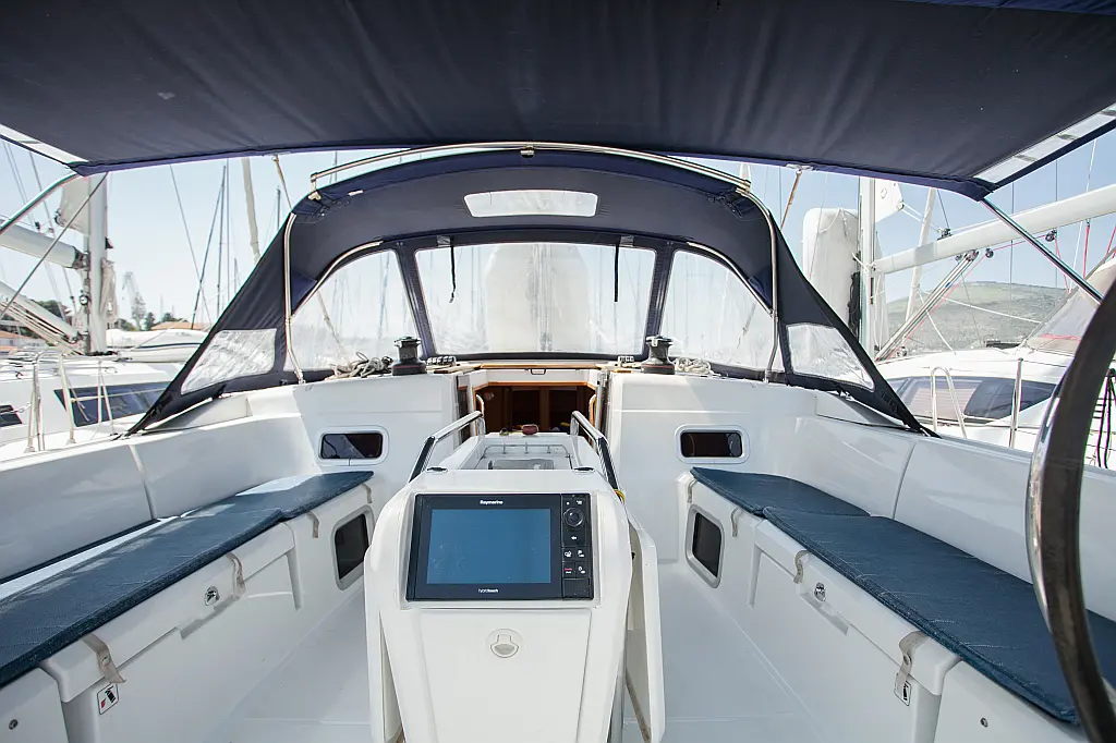 Bímini, Capota antirociones, Motor fueraborda, WC eléctrico, Calefacción, Panel Solar, Cockpit cushions