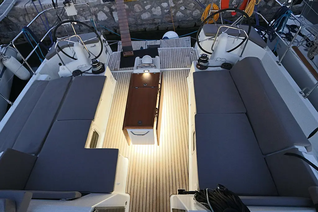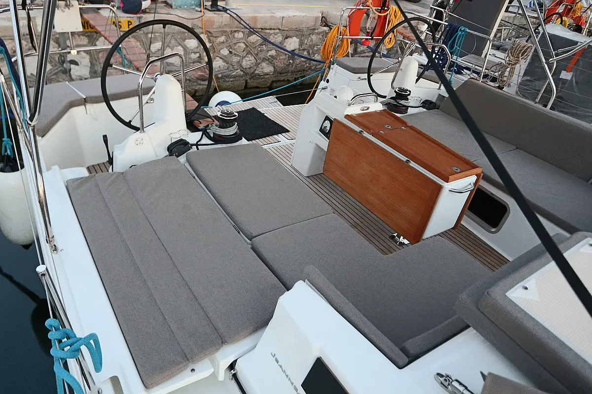 Bímini, Embarcación auxiliar, Capota antirociones, Cubierta de teca, WC eléctrico, Panel Solar, Desalinizadora