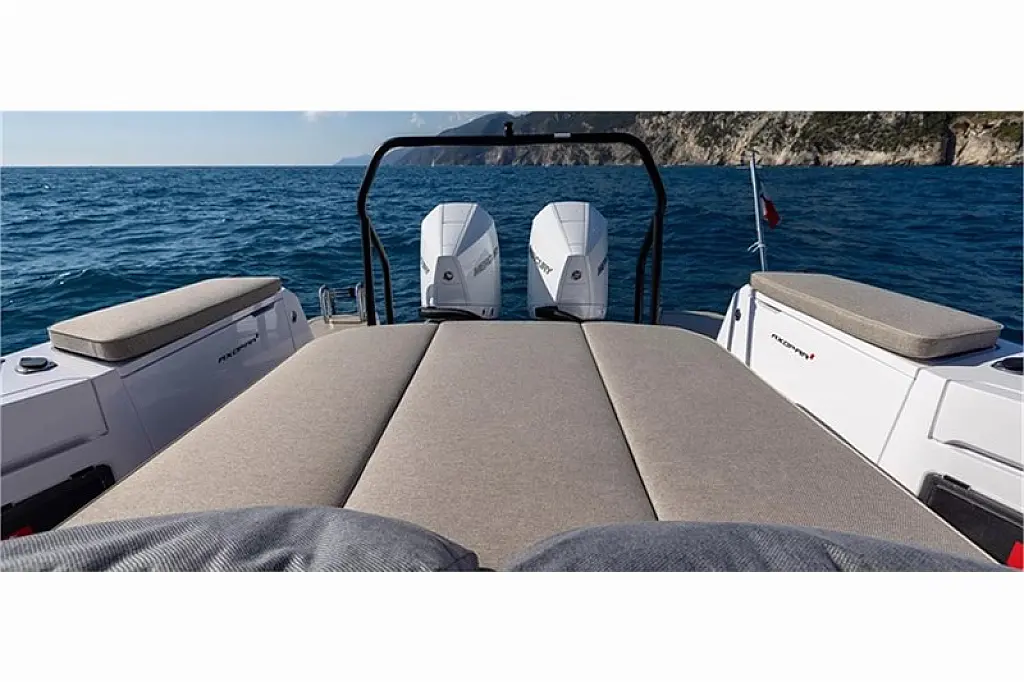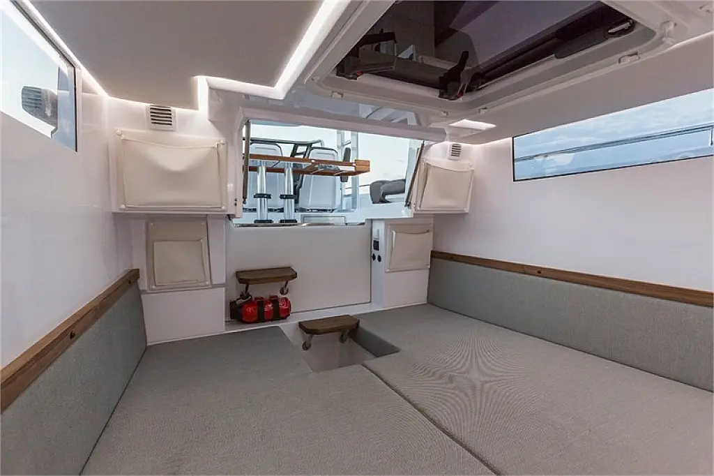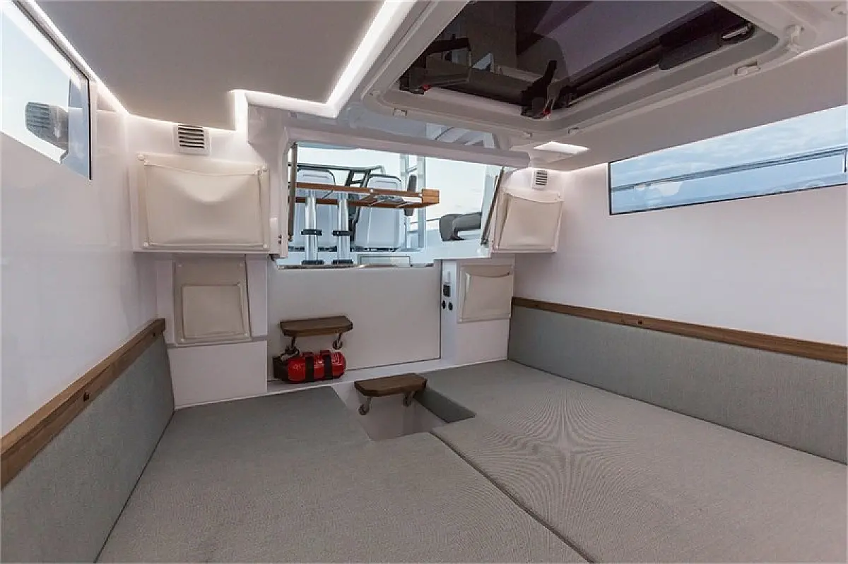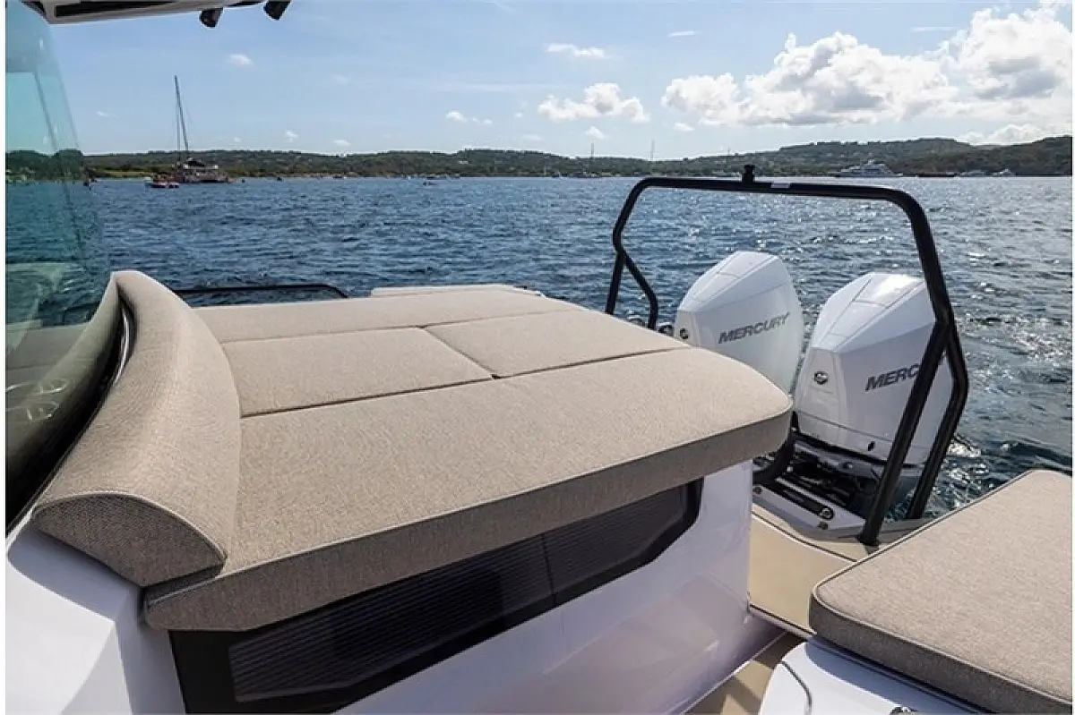 Depósito de aguas residuales, Bímini, Capota antirociones, Altavoces exteriores, Embarcación auxiliar, Nevera