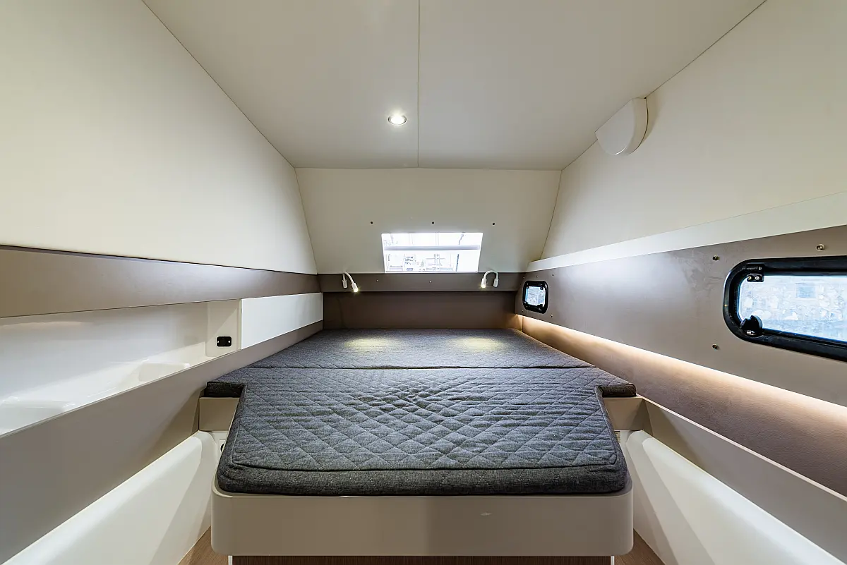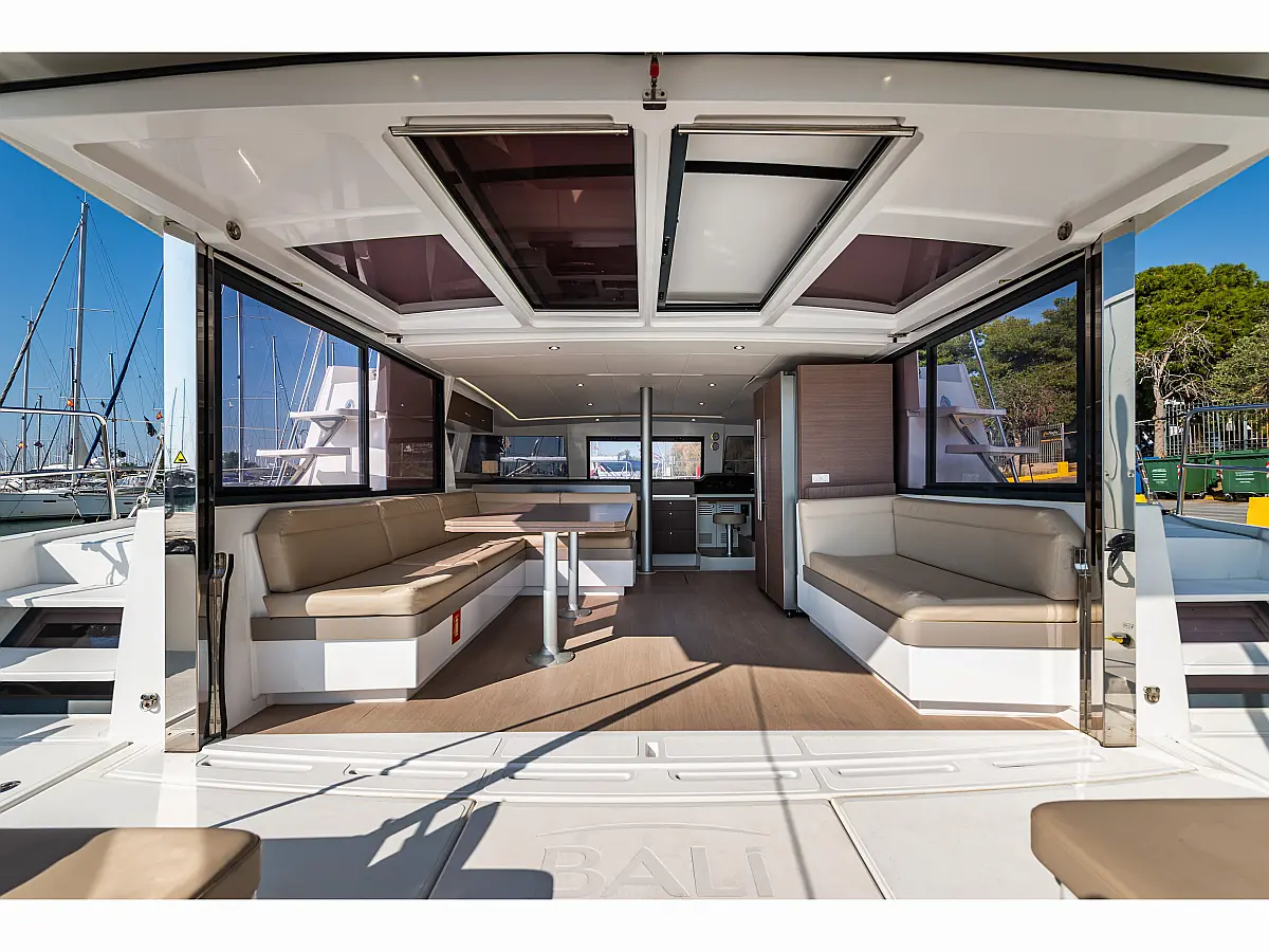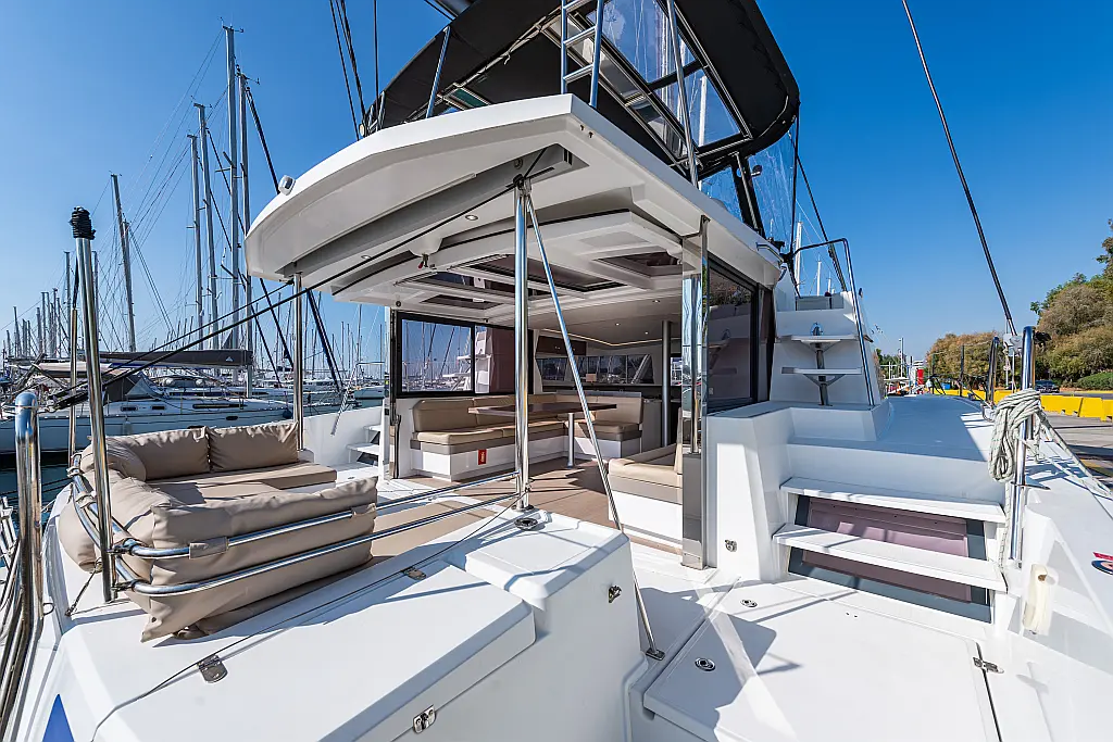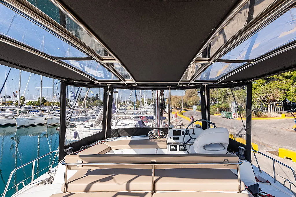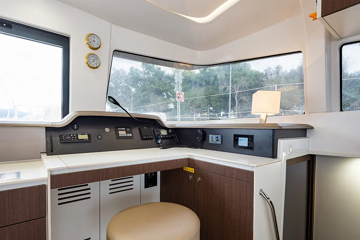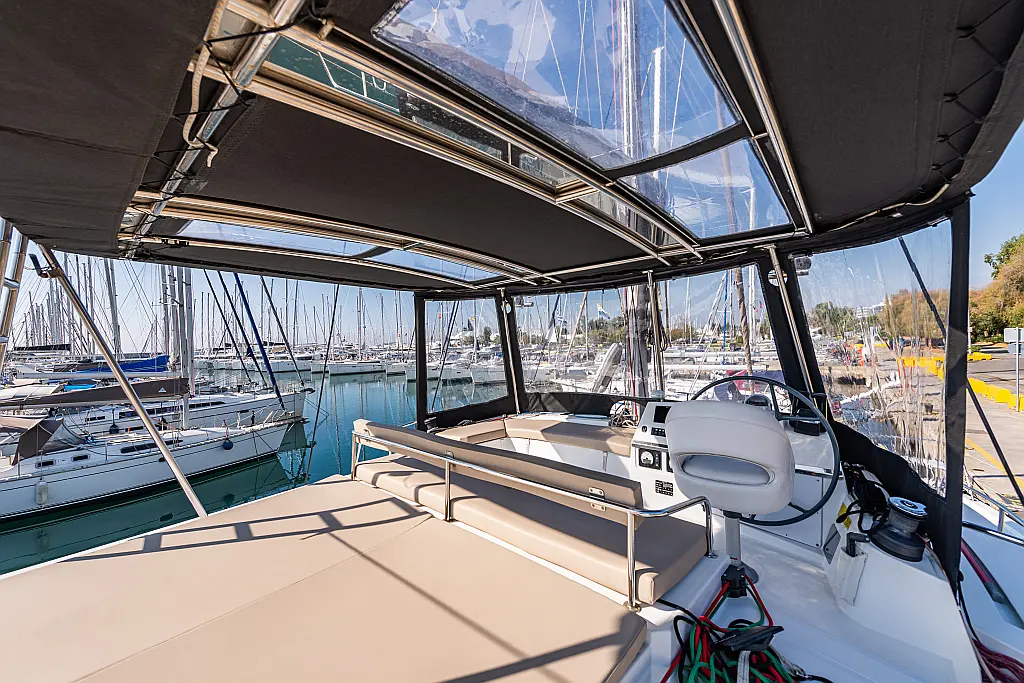 Depósito de aguas residuales, Bímini, Embarcación auxiliar, Winches eléctricos, WC eléctrico, Aire acondicionado, Desalinizadora, Generador, Cockpit cushions, Capota antirociones, Plataforma de baño, Panel Solar