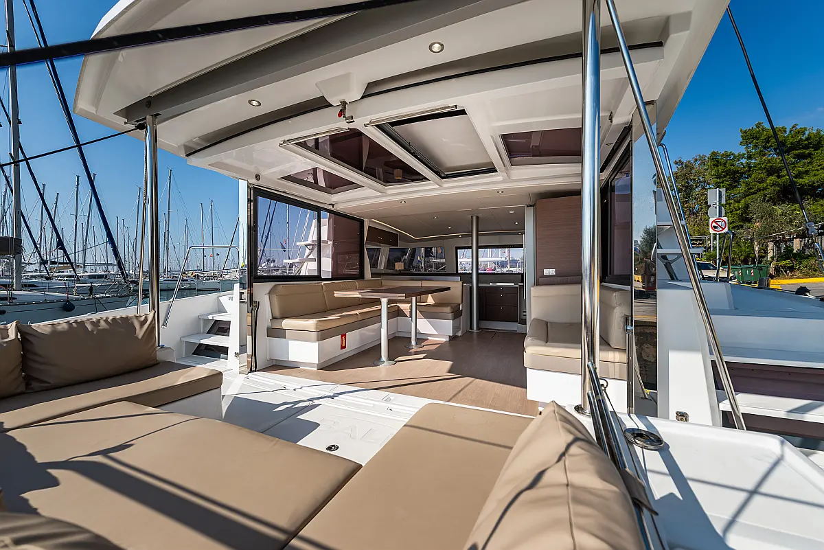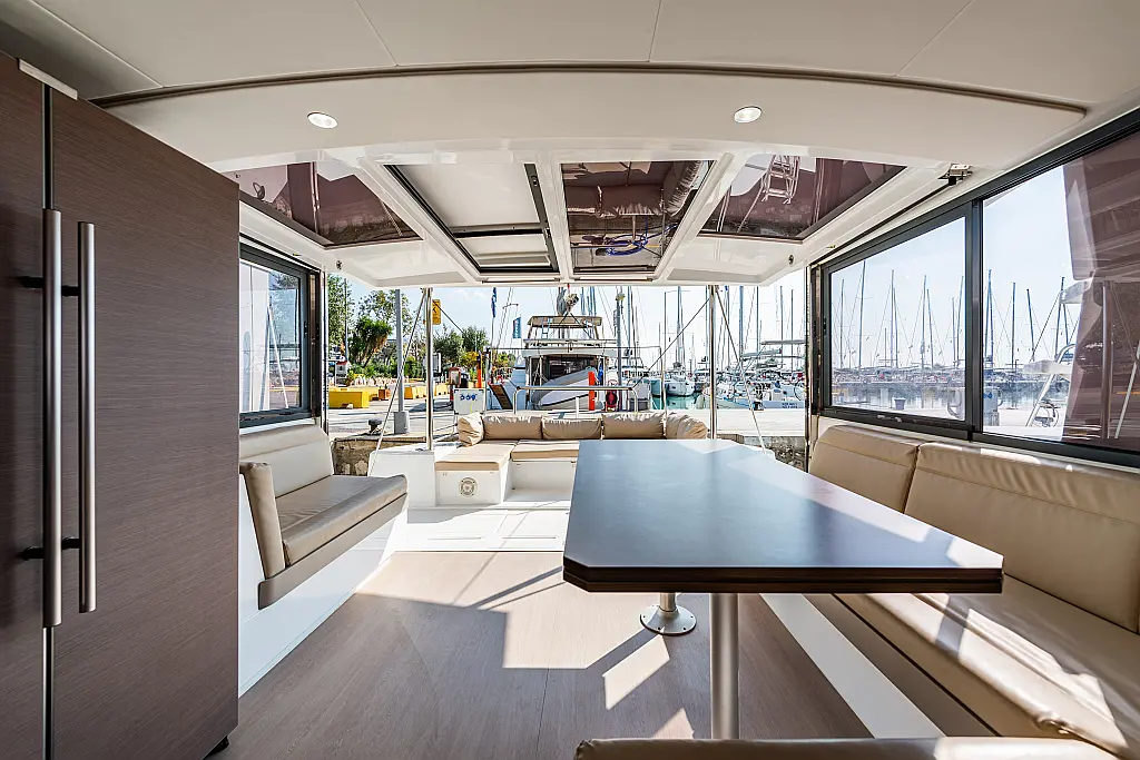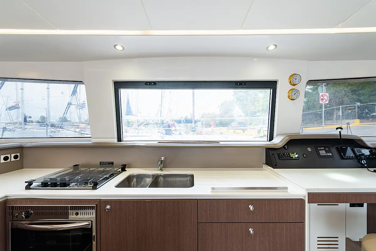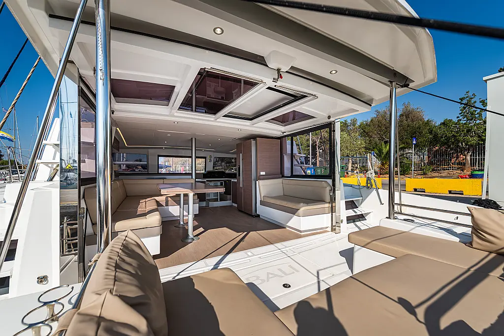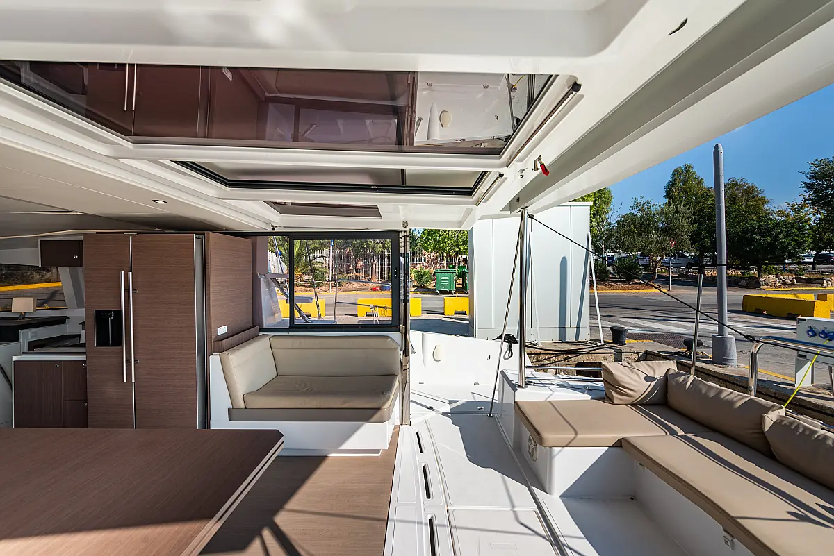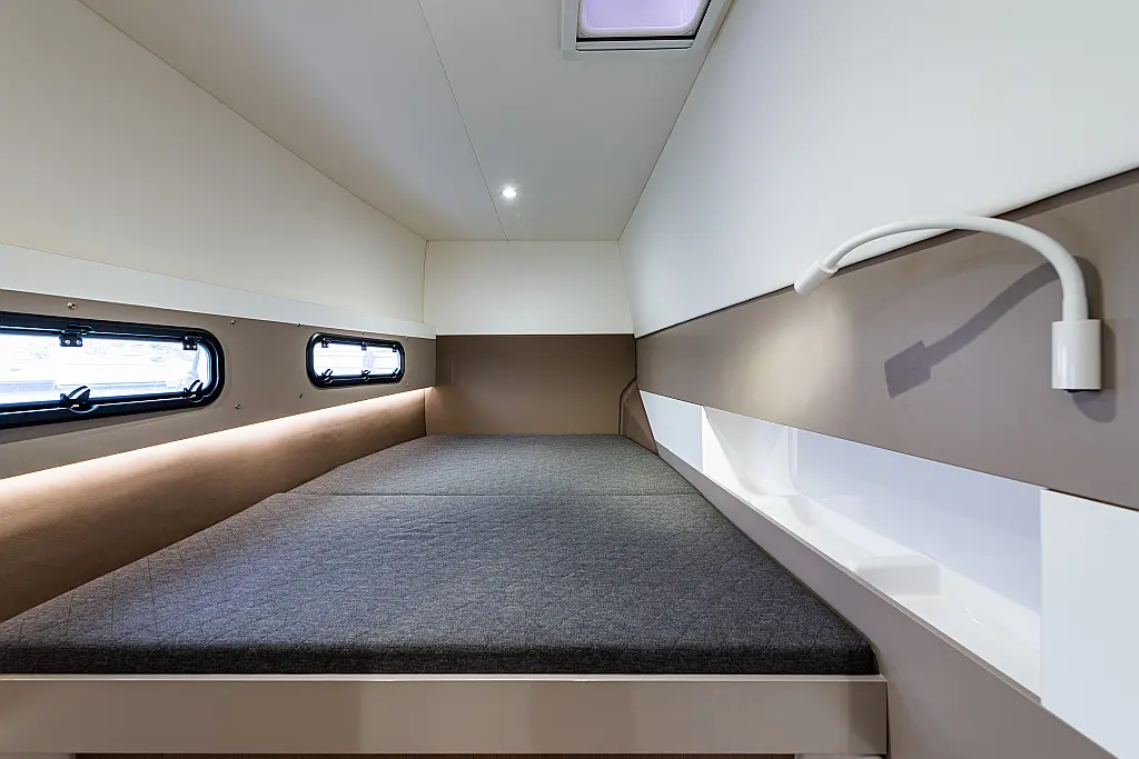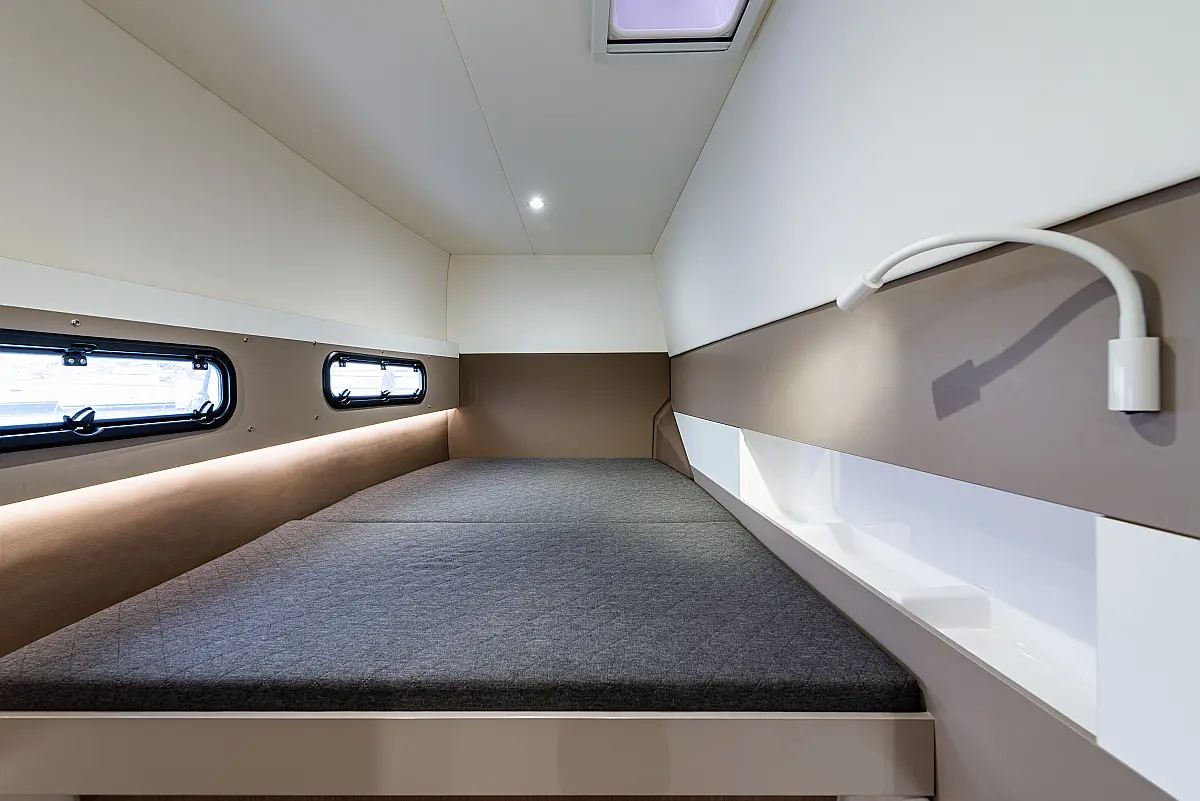 Depósito de aguas residuales, Bímini, Embarcación auxiliar, Winches eléctricos, WC eléctrico, Aire acondicionado, Desalinizadora, Generador, Cockpit cushions, Capota antirociones, Plataforma de baño, Panel Solar