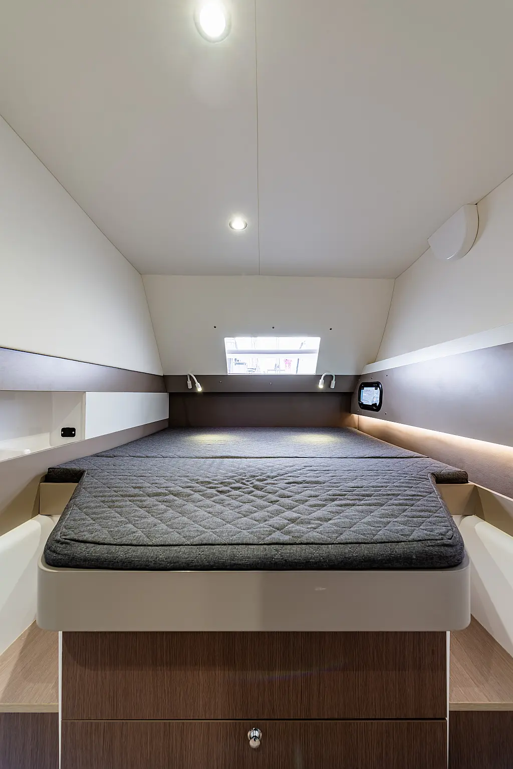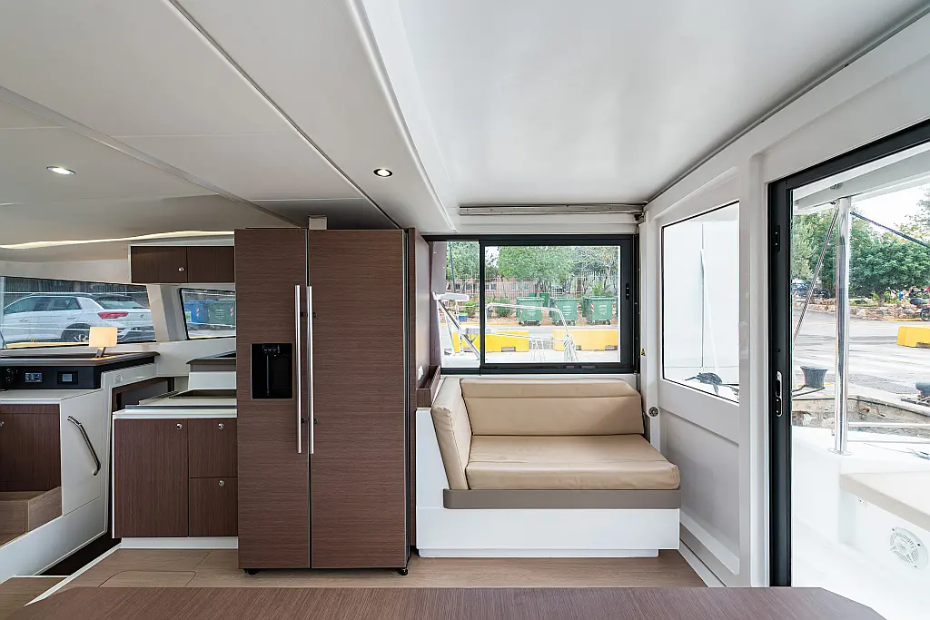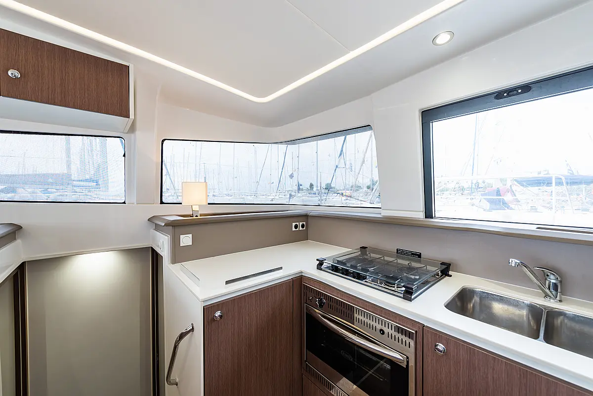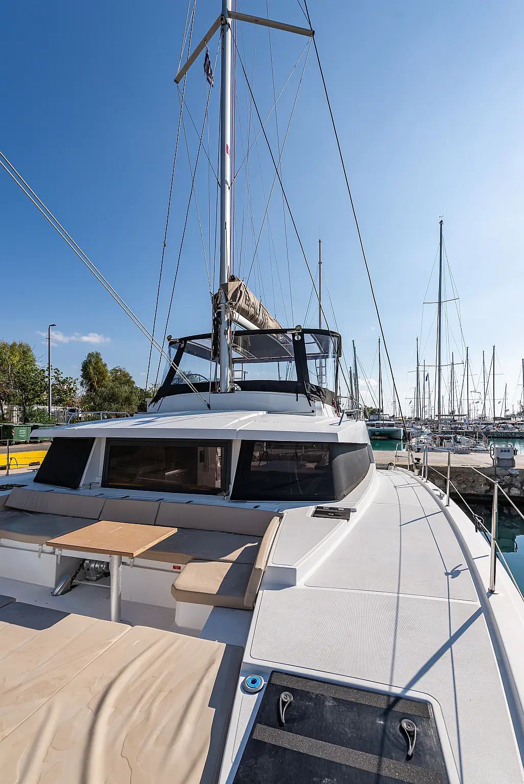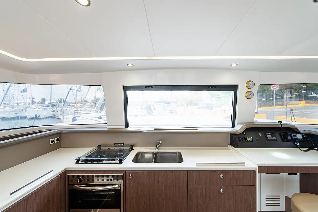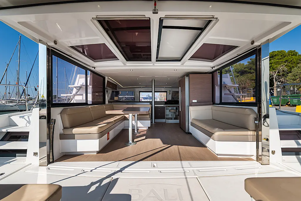 Depósito de aguas residuales, Bímini, Embarcación auxiliar, Winches eléctricos, WC eléctrico, Aire acondicionado, Desalinizadora, Generador, Cockpit cushions, Capota antirociones, Plataforma de baño, Panel Solar