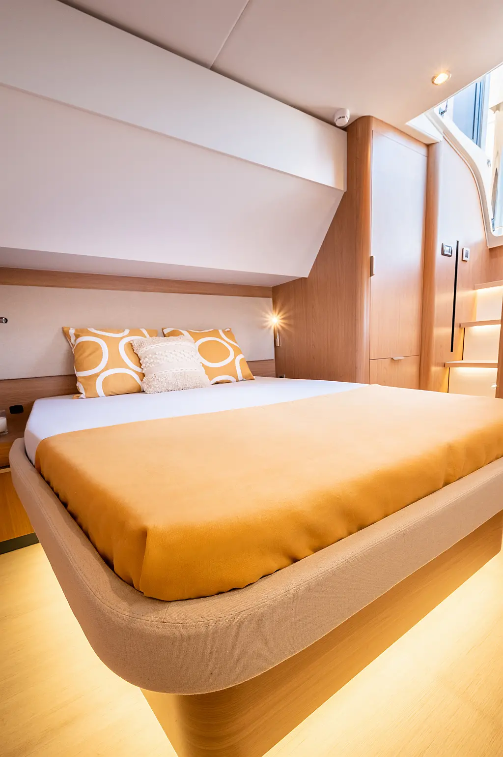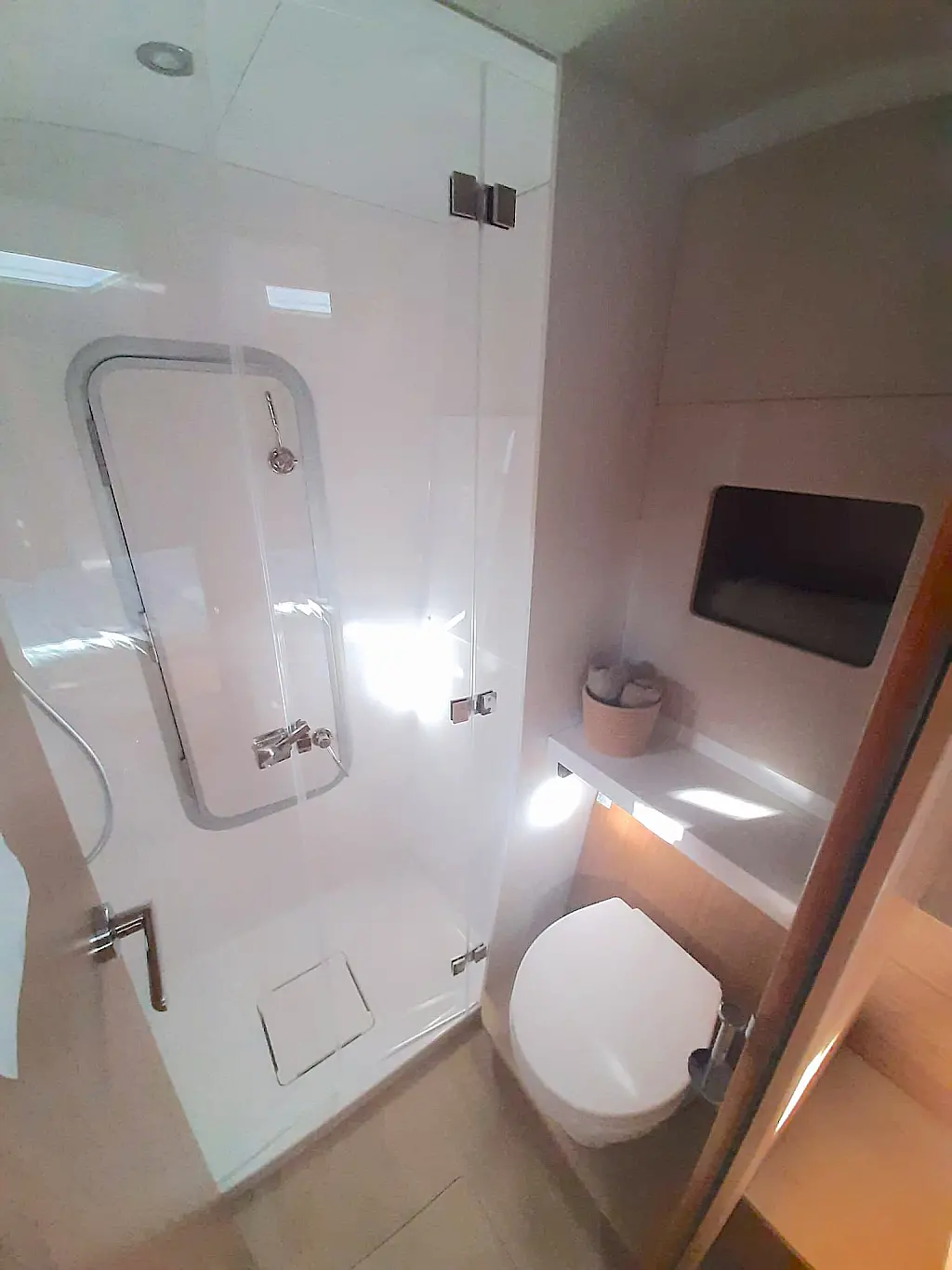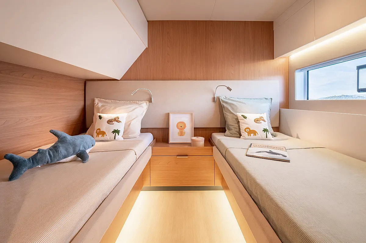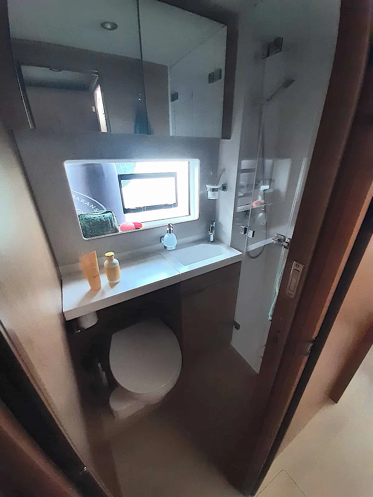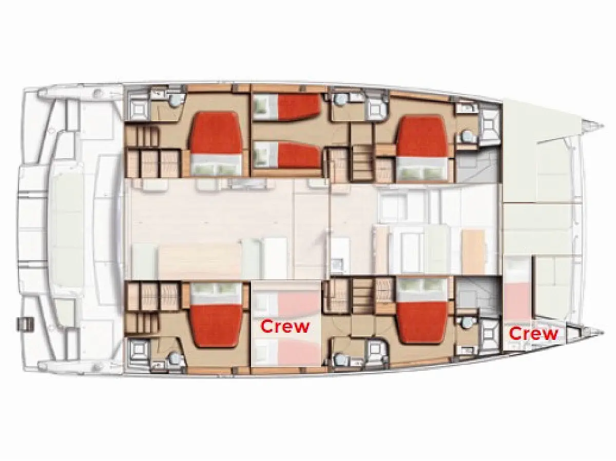 5 GUESTS: 4 doubles, 1 twin; CREW: 1 frontpeak + WC, 1 twin cabin + WC
