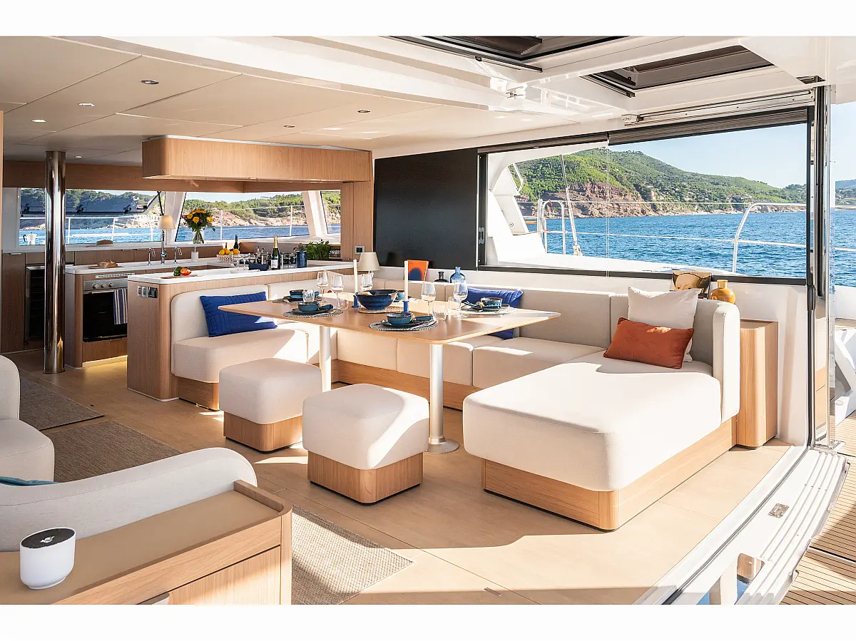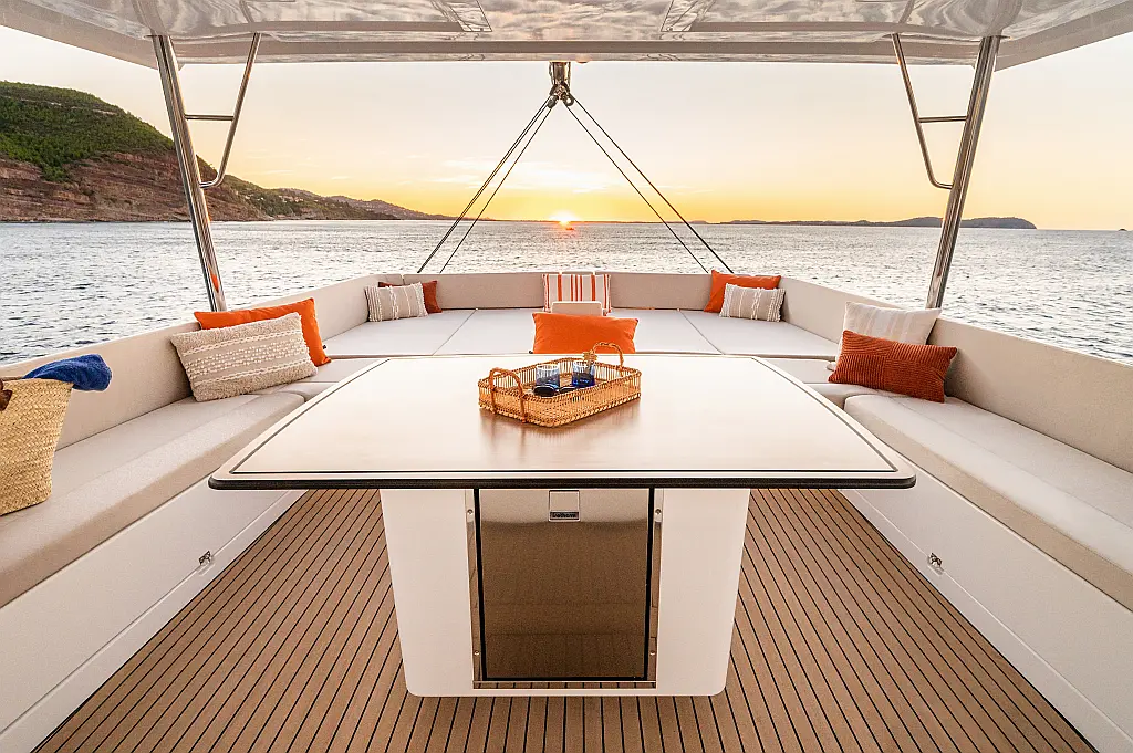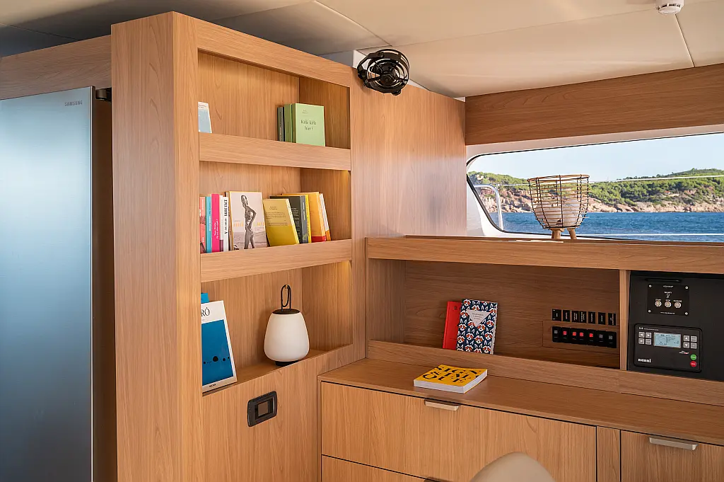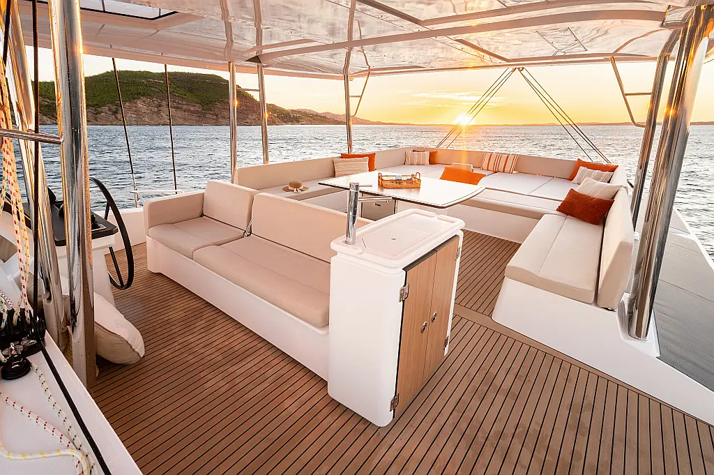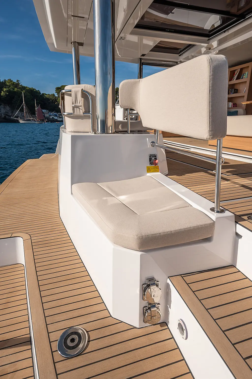 Convertidor, Nevera, Cockpit cushions, WC eléctrico, Desalinizadora, Máquina de hielo, Panel Solar, Altavoces exteriores, Aire acondicionado, Winches eléctricos, Cubierta de teca