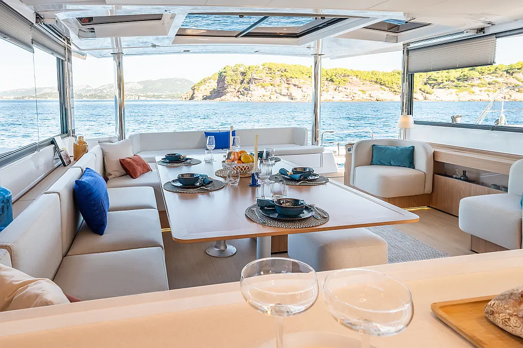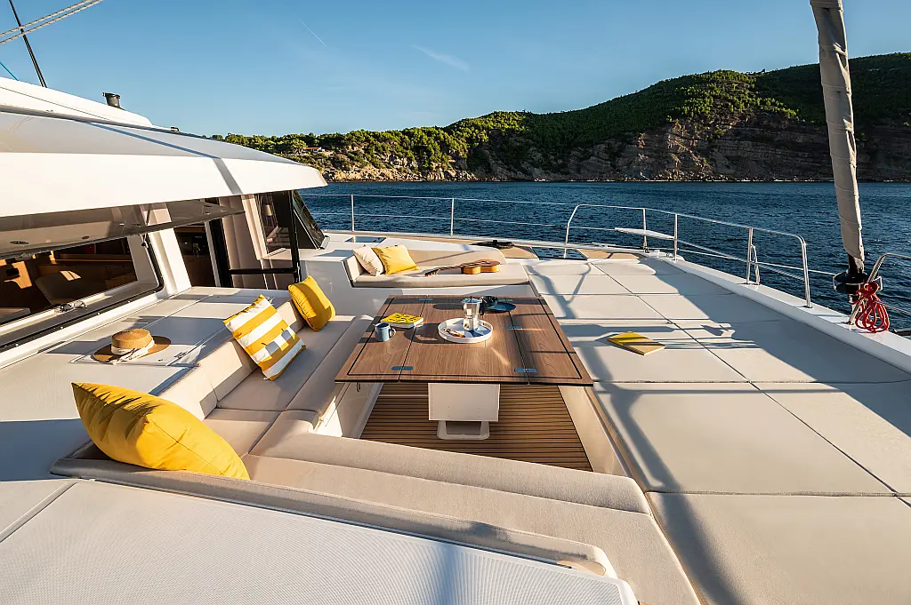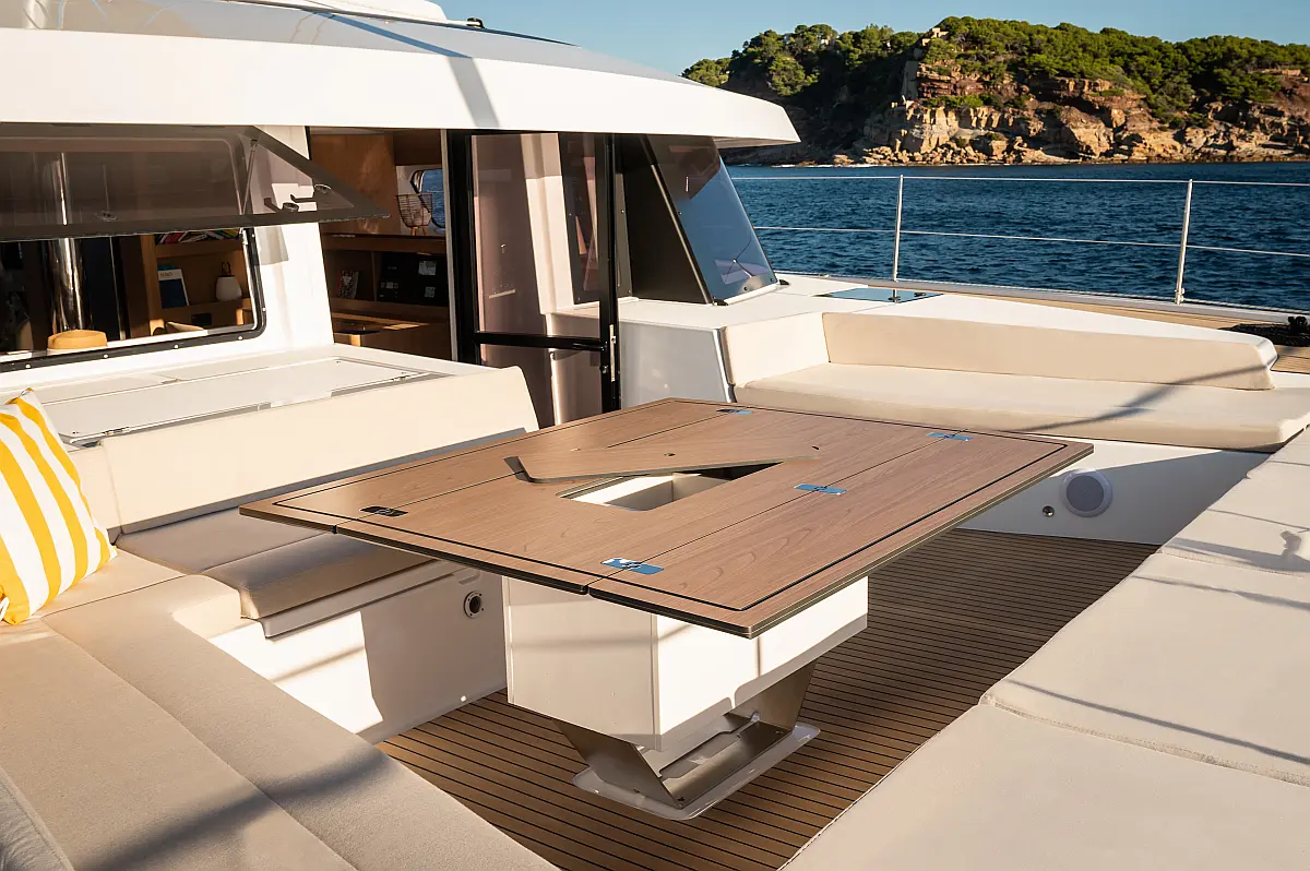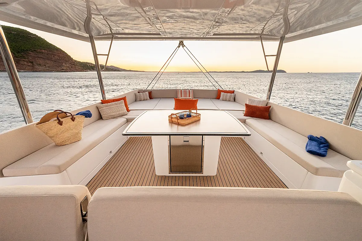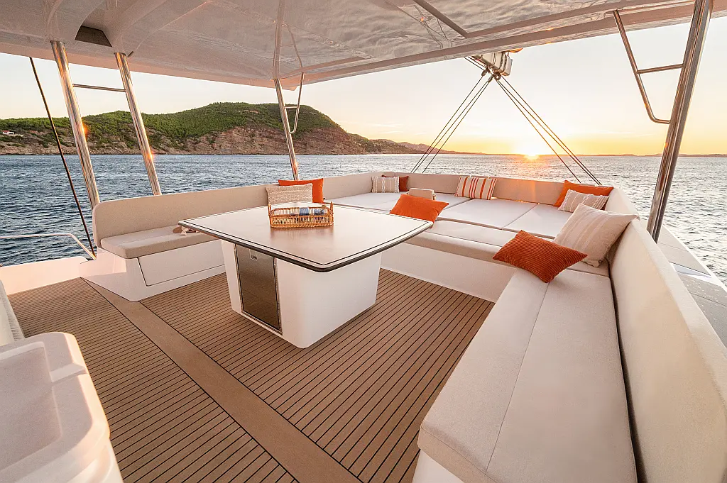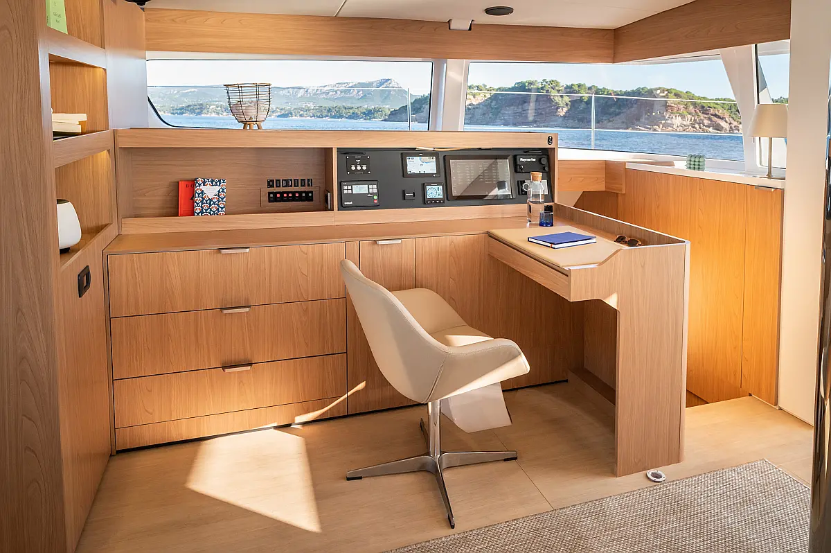 Convertidor, Nevera, Cockpit cushions, WC eléctrico, Desalinizadora, Máquina de hielo, Panel Solar, Altavoces exteriores, Aire acondicionado, Winches eléctricos, Cubierta de teca