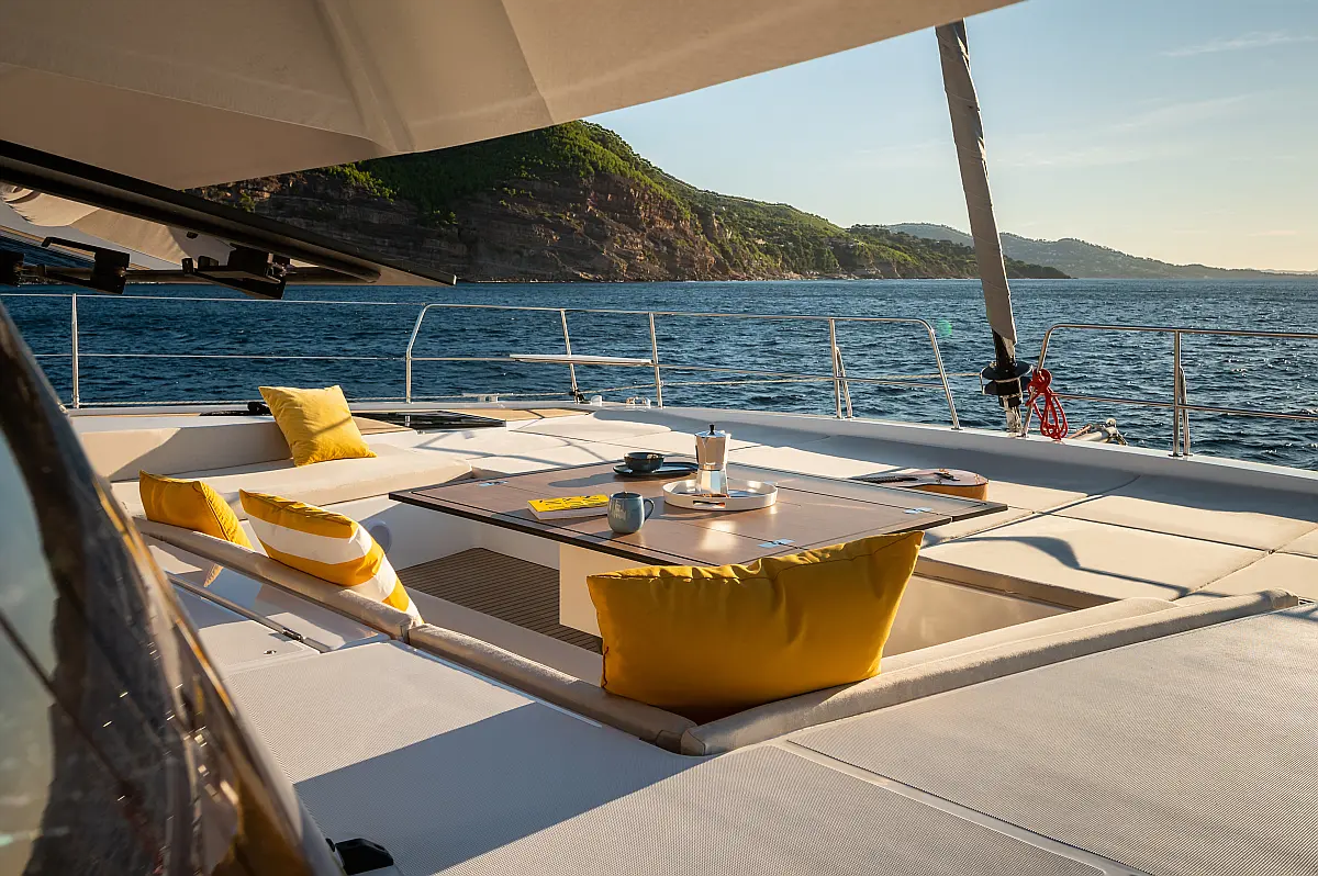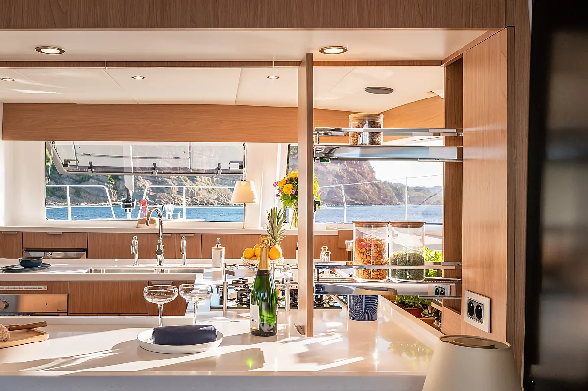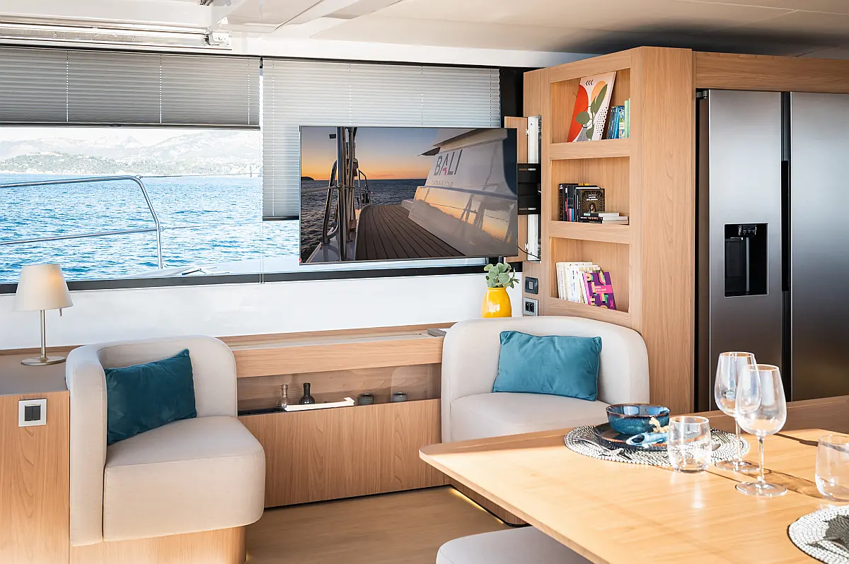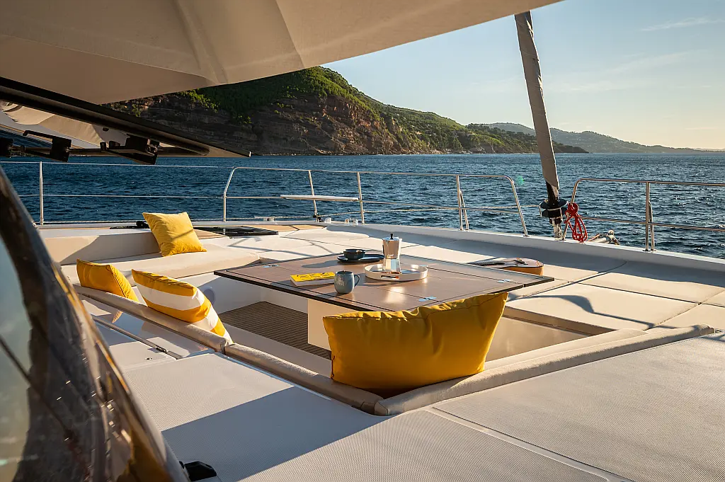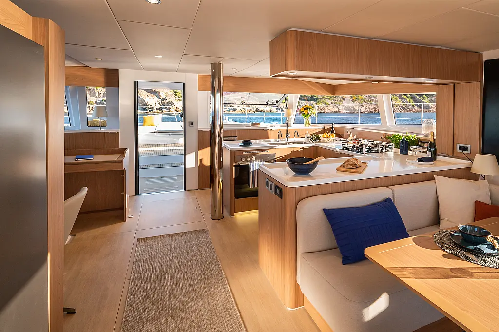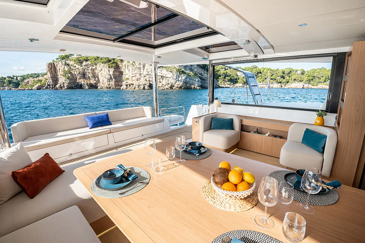 Convertidor, Nevera, Cockpit cushions, WC eléctrico, Desalinizadora, Máquina de hielo, Panel Solar, Altavoces exteriores, Aire acondicionado, Winches eléctricos, Cubierta de teca