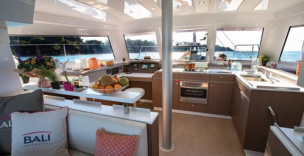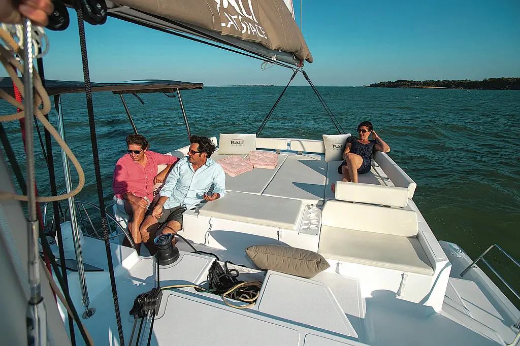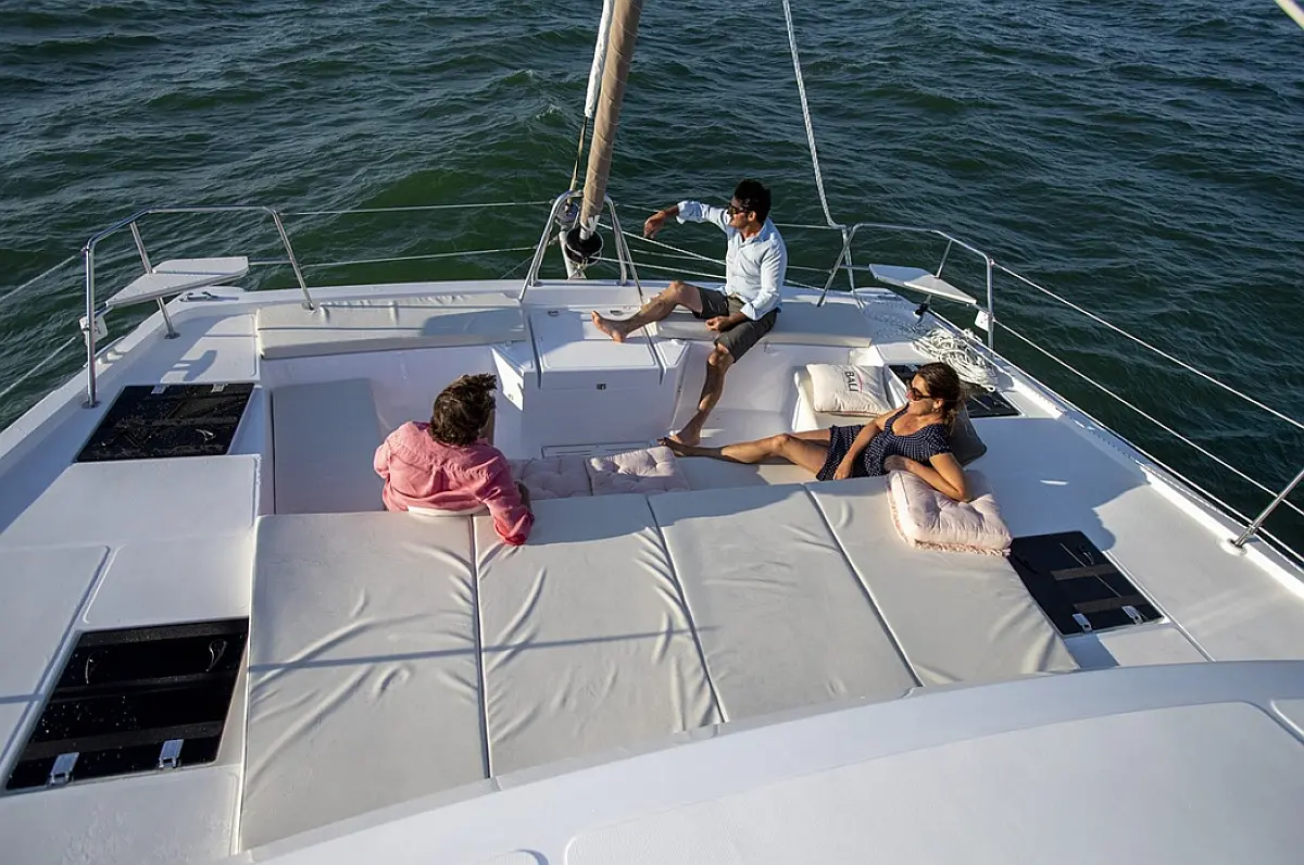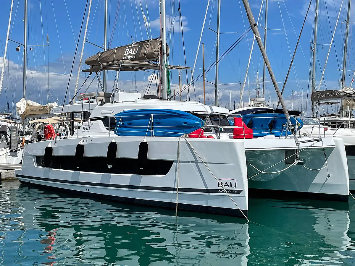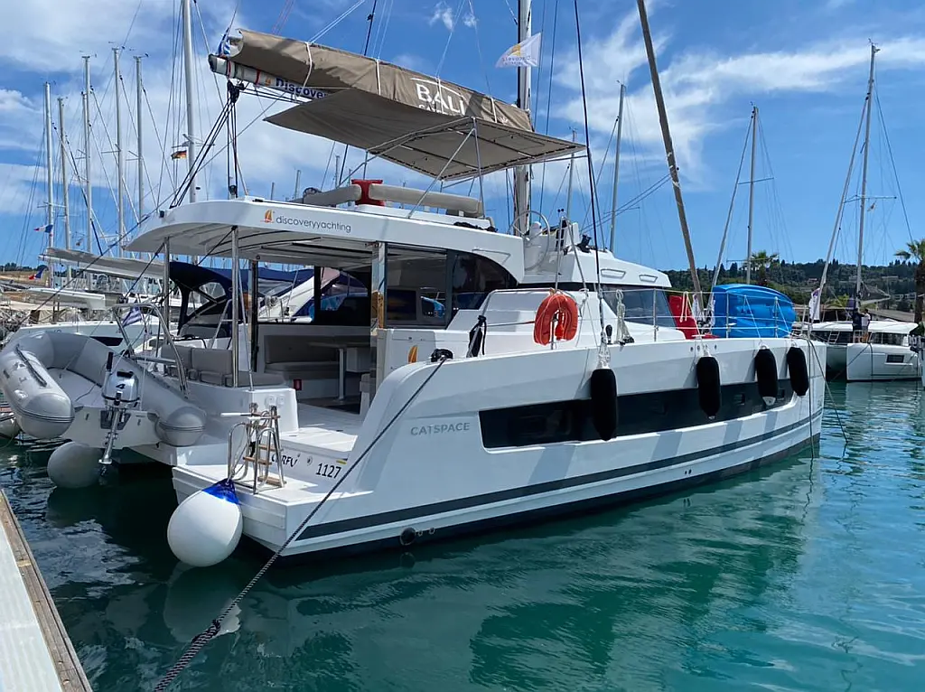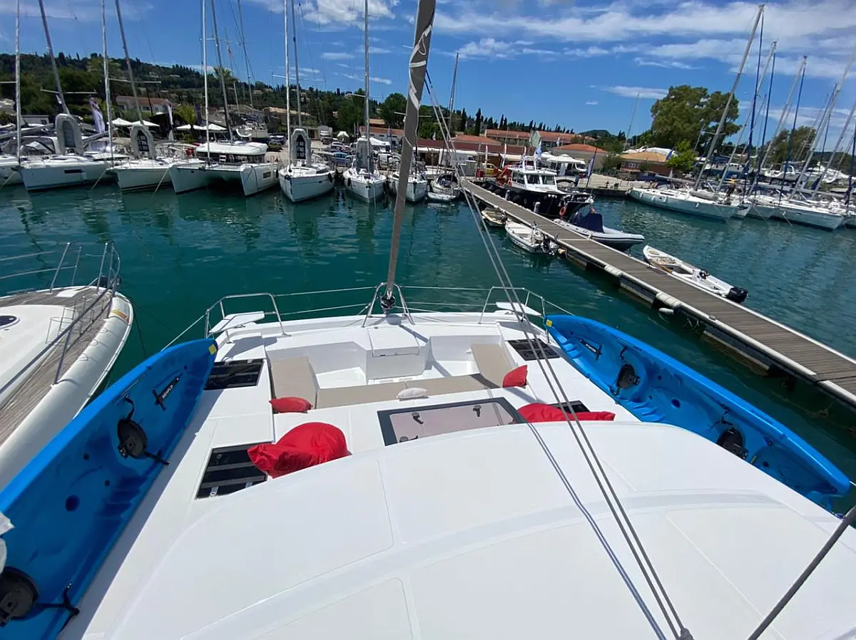 Bímini, Capota antirociones, Altavoces exteriores, Embarcación auxiliar, Máquina de hielo, Depósito de aguas residuales, Panel Solar, Cockpit cushions, Plataforma de baño, Flybridge, Cafetera, Nevera, Convertidor