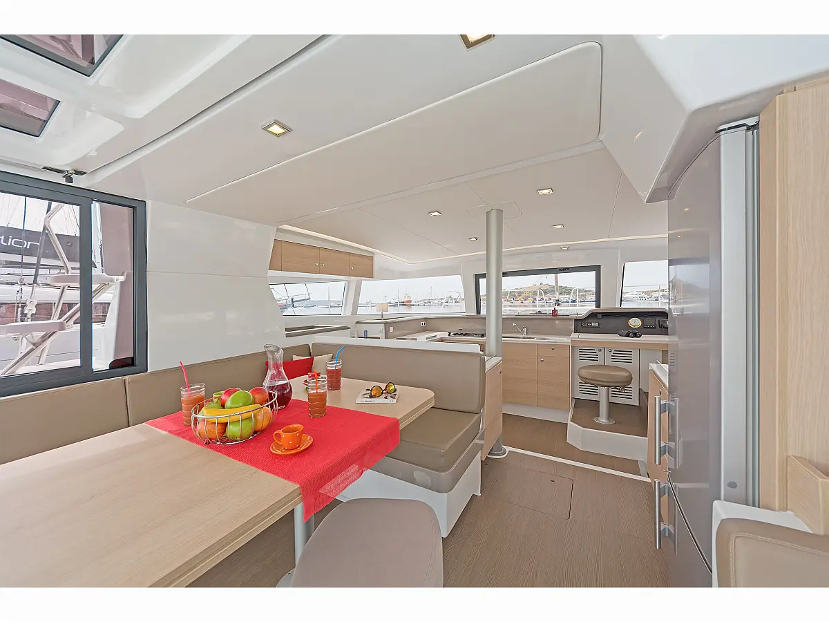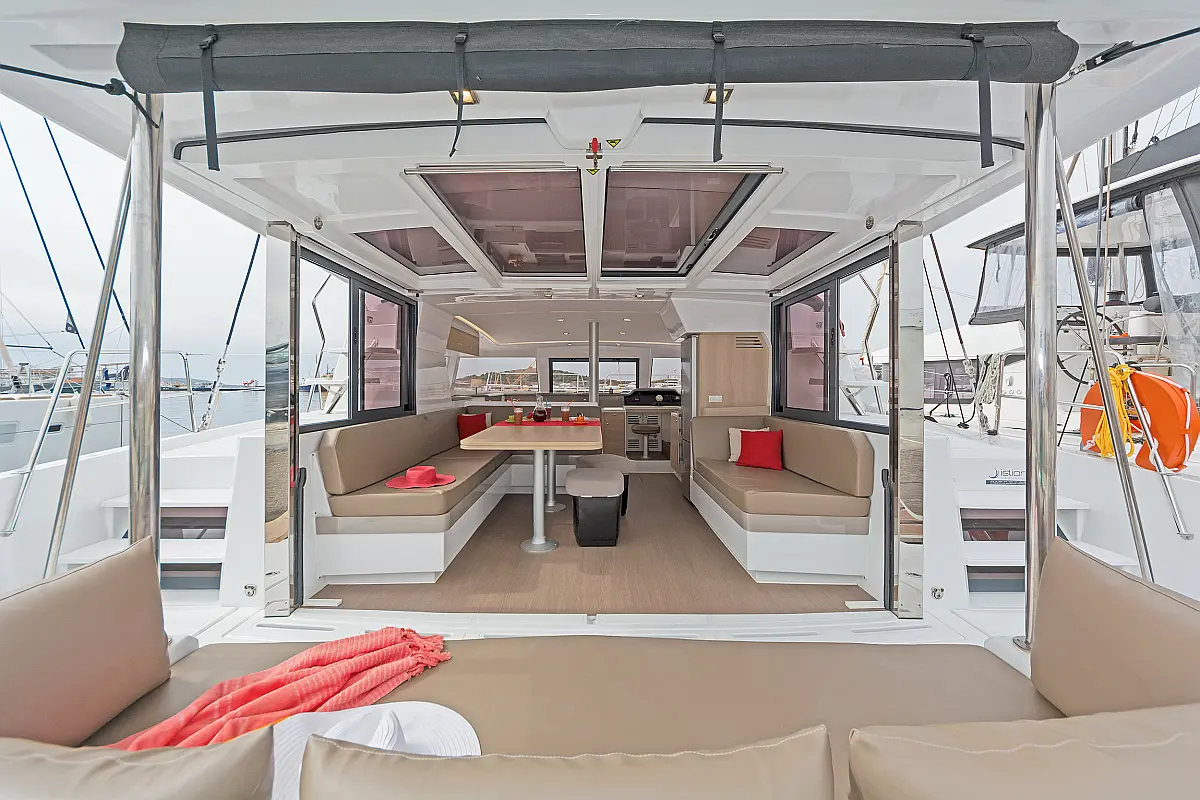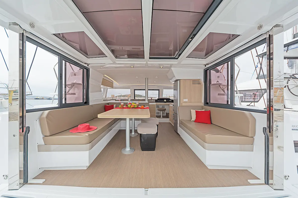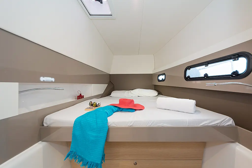 Capota antirociones, Bímini, Convertidor, Embarcación auxiliar, WC eléctrico, Nevera, Cockpit cushions, Panel Solar, Altavoces exteriores