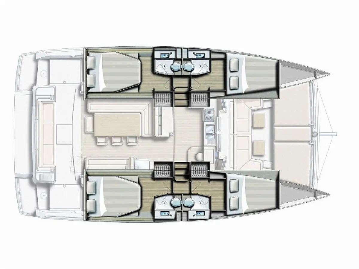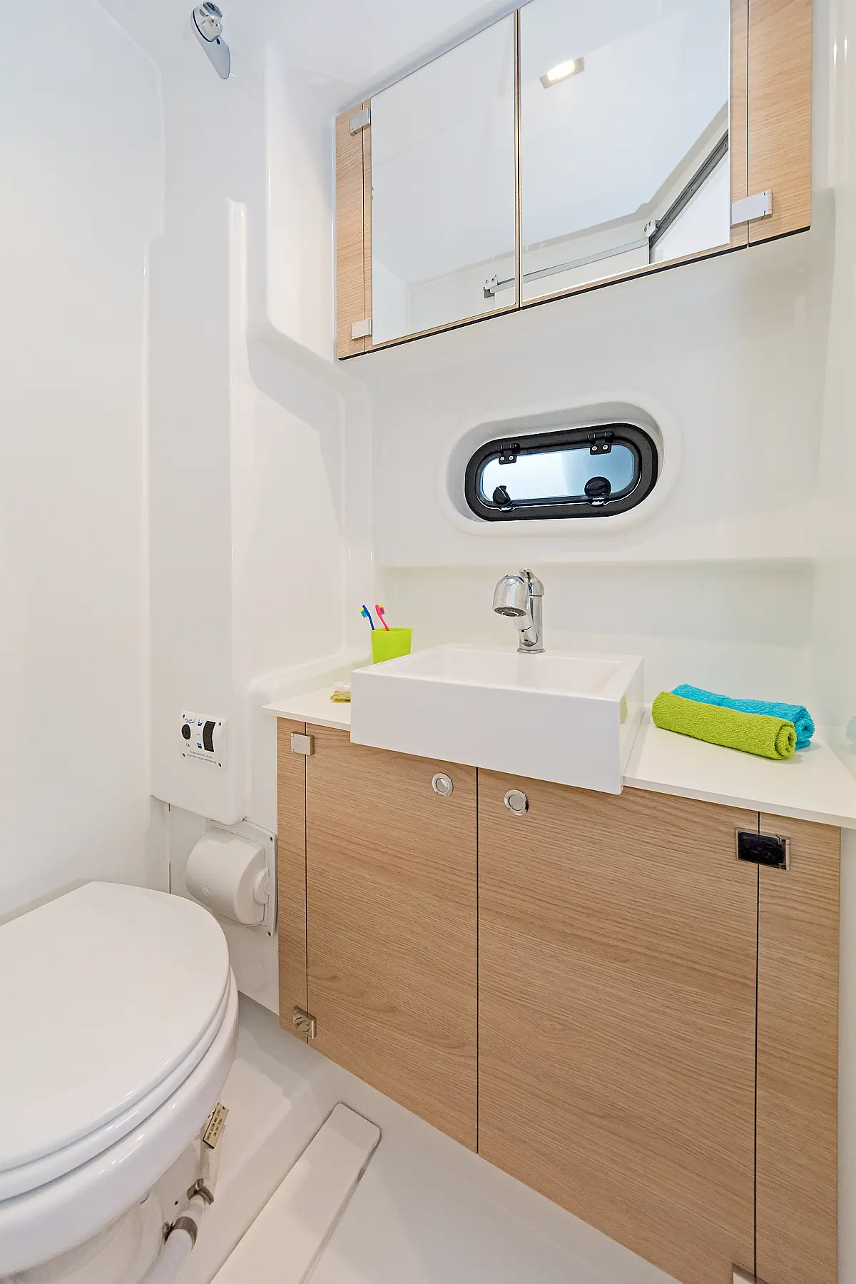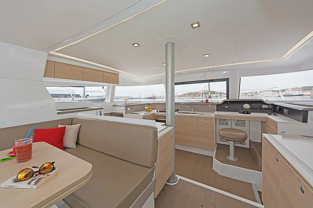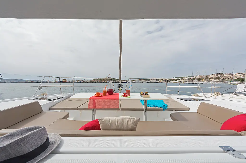 Capota antirociones, Bímini, Convertidor, Embarcación auxiliar, WC eléctrico, Nevera, Cockpit cushions, Panel Solar, Altavoces exteriores