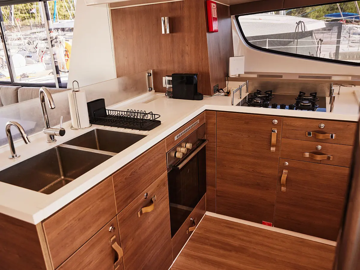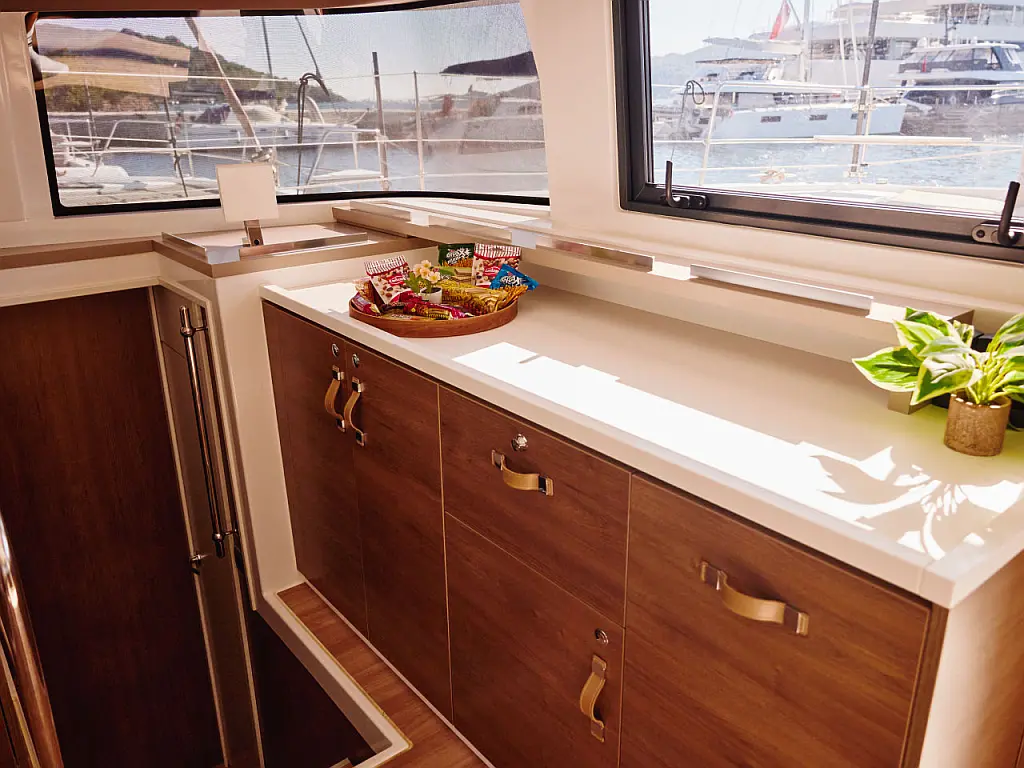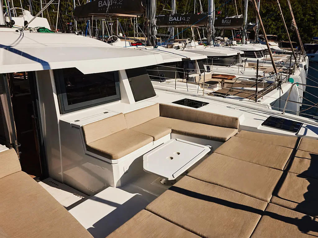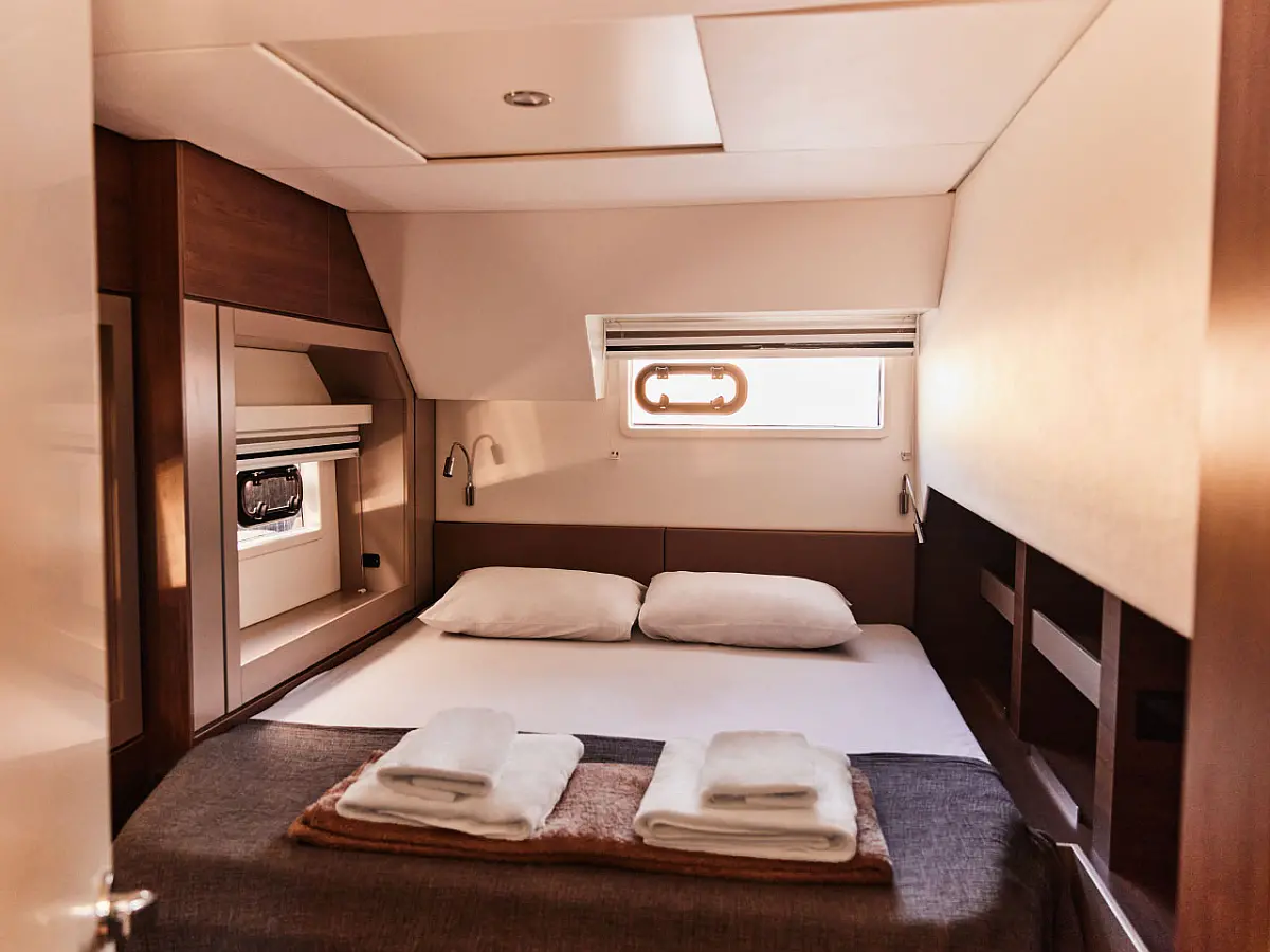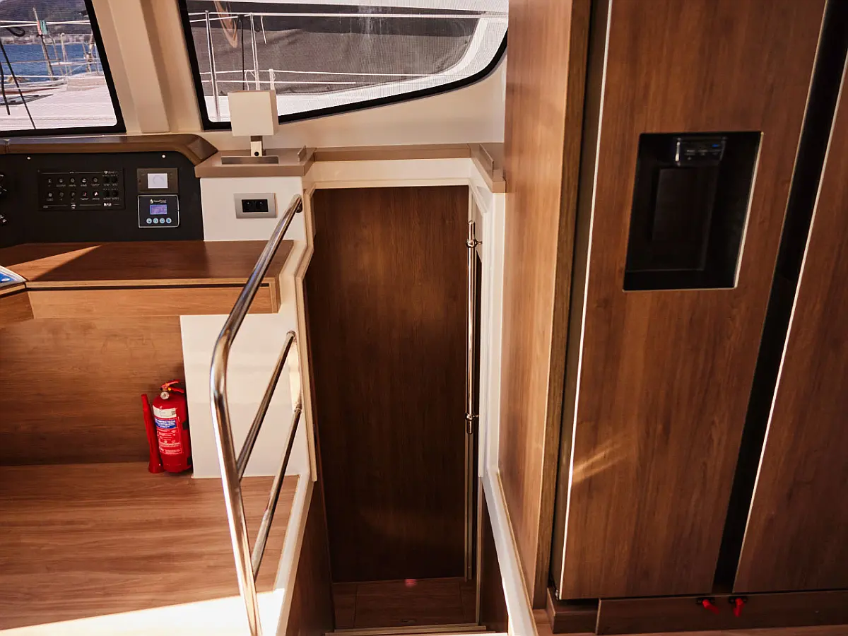 Nevera, Cockpit cushions, Bímini, Embarcación auxiliar, Generador, Aire acondicionado, Convertidor, Desalinizadora