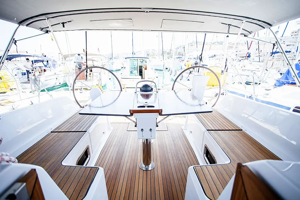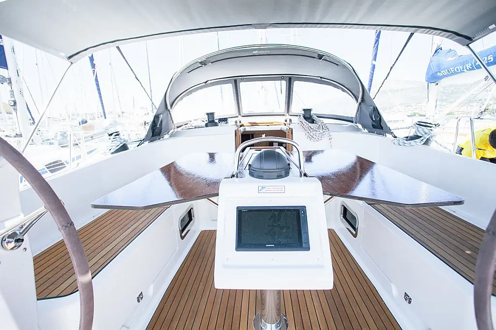 Bímini, Capota antirociones, WC eléctrico, Teak Cockpit, Calefacción, Panel Solar, Motor fueraborda, Cockpit cushions