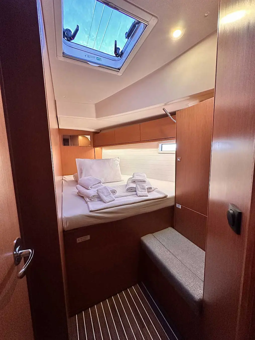 Cockpit cushions, Convertidor, Plataforma de baño, Bímini, Capota antirociones, Panel Solar, Nevera
