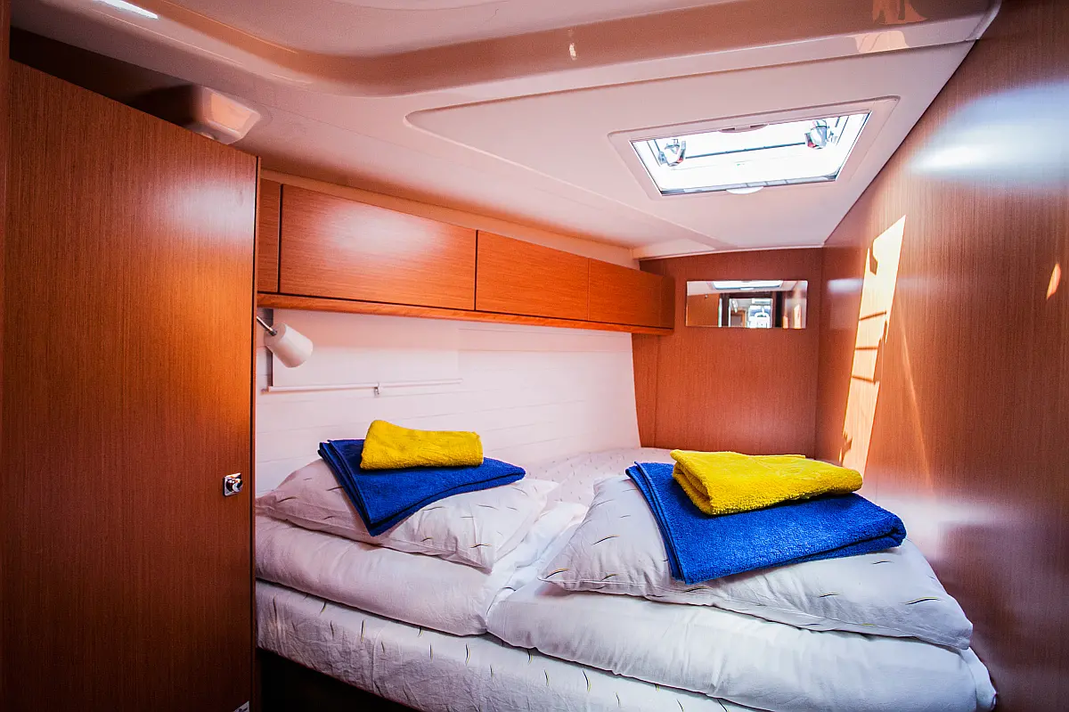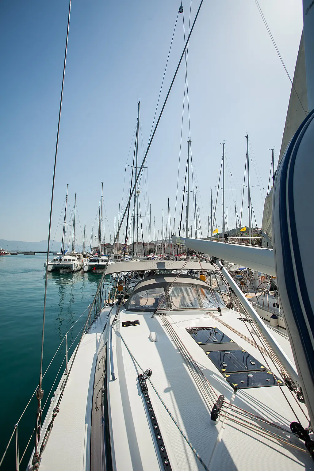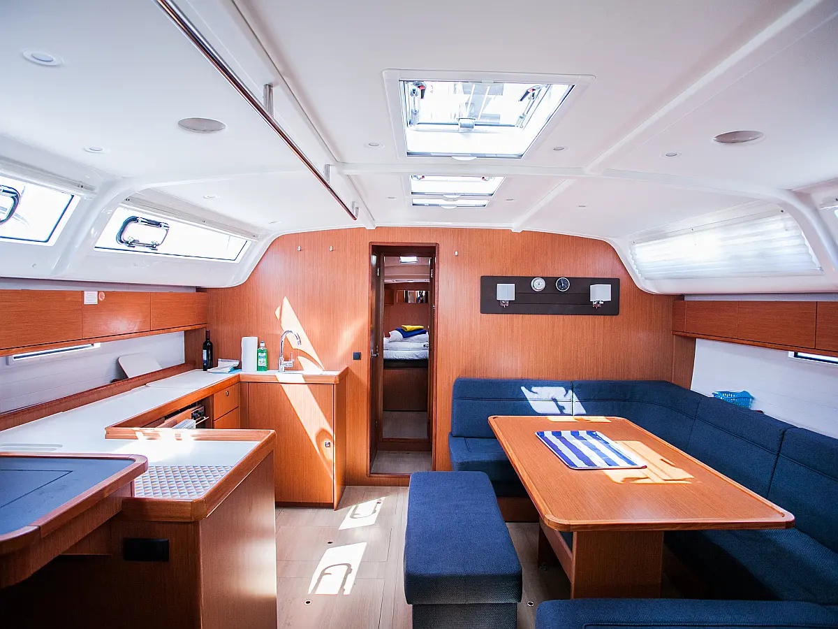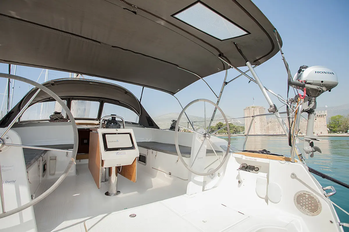 Bímini, Capota antirociones, Motor fueraborda, WC eléctrico, Altavoces exteriores, Winches eléctricos, Calefacción, Panel Solar, Cockpit cushions