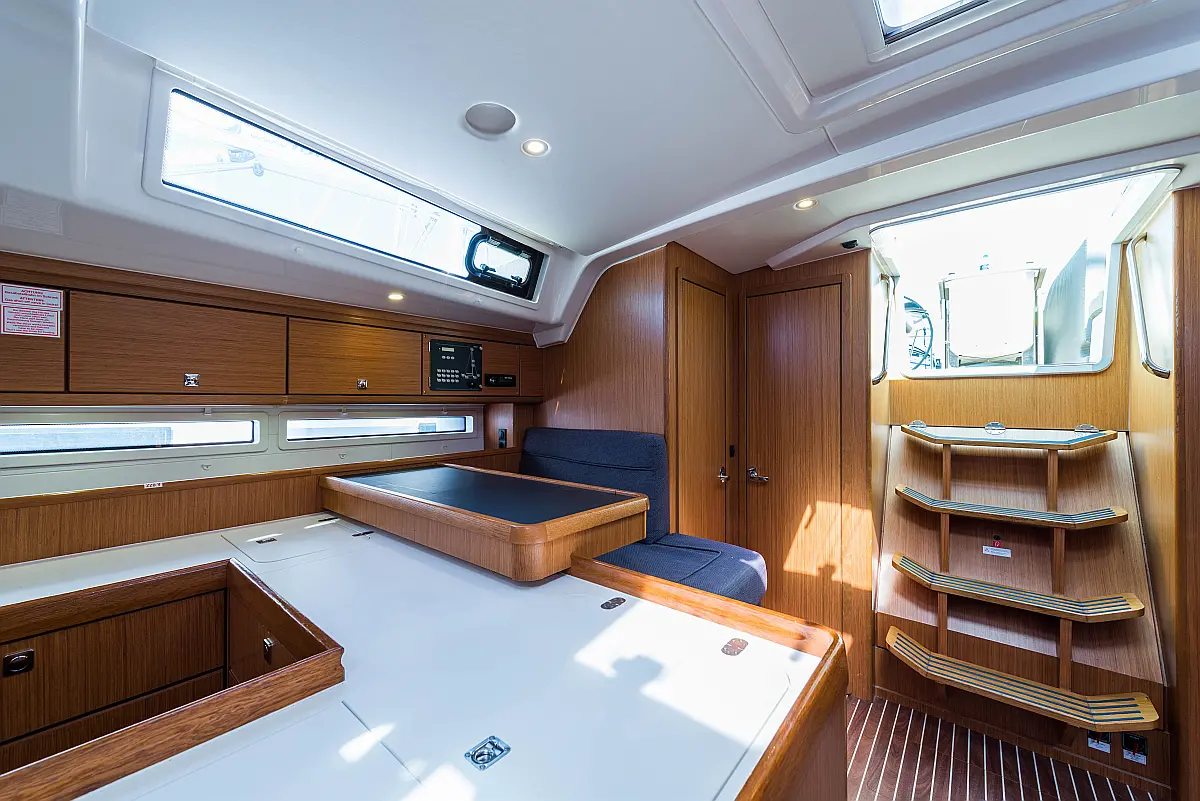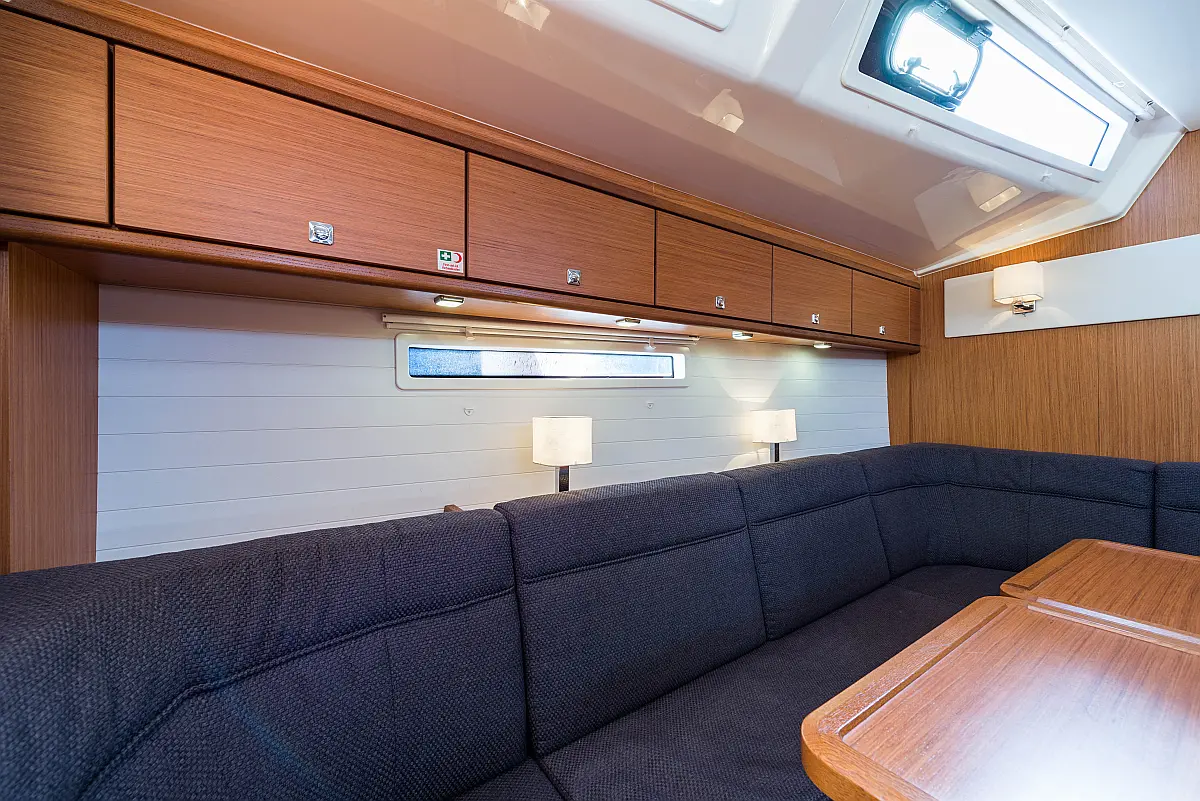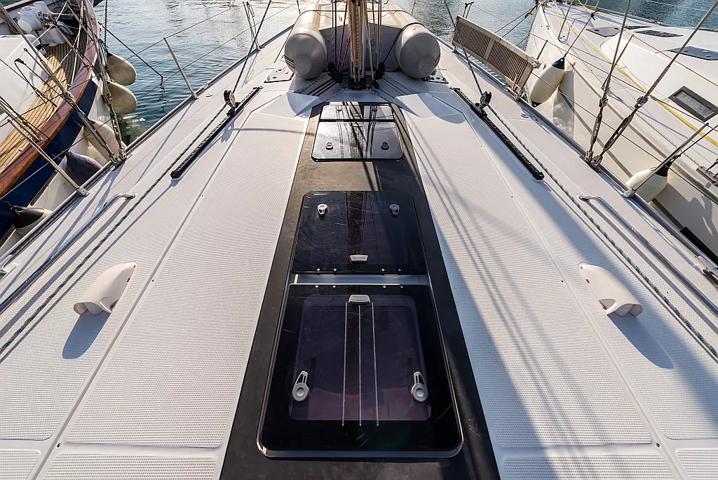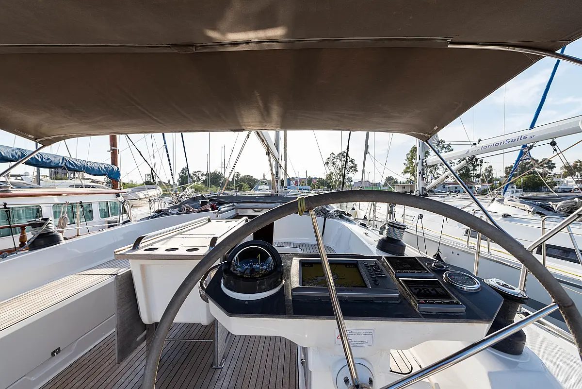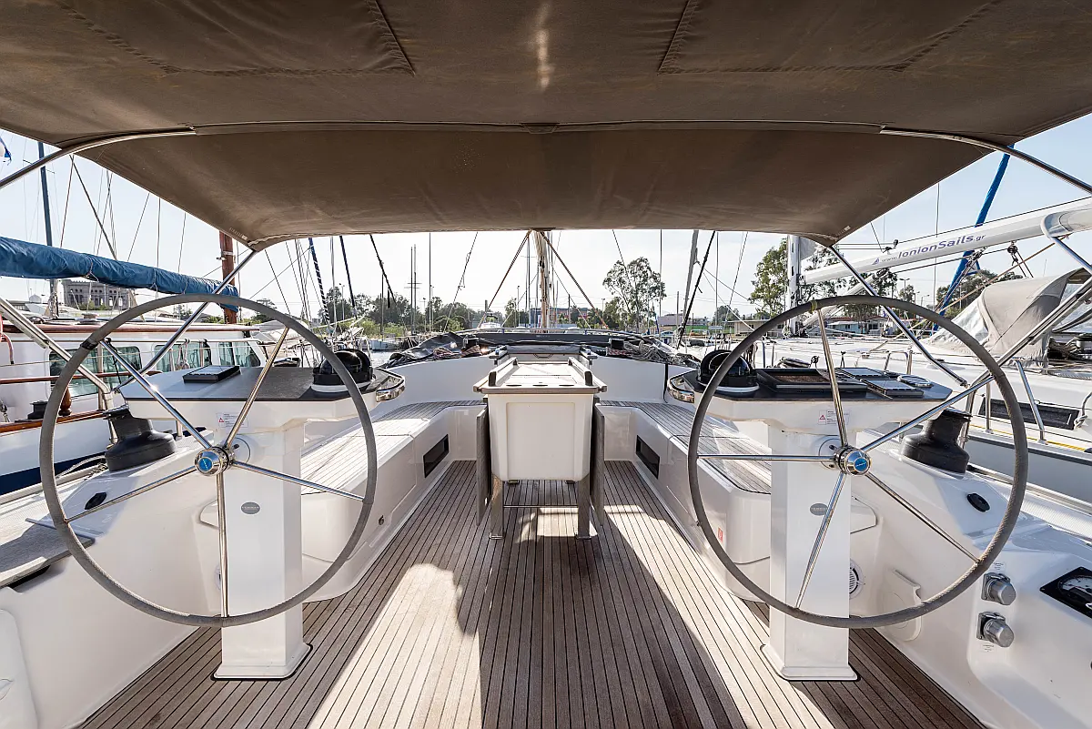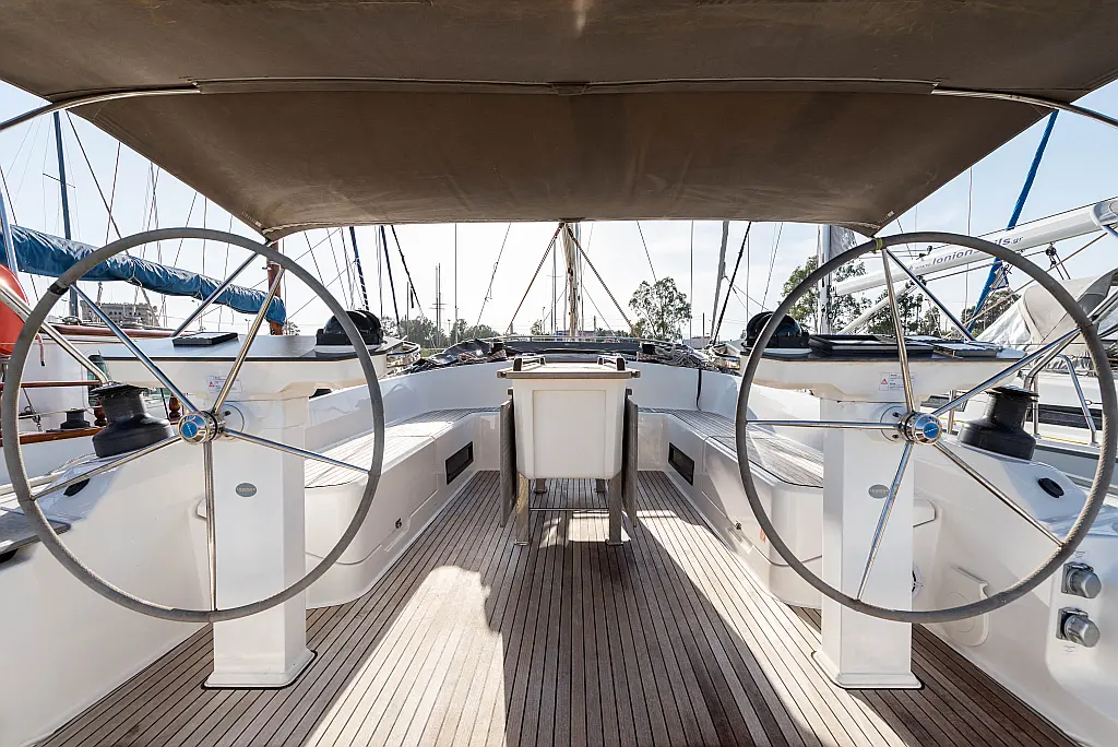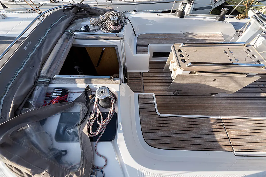 Aire acondicionado, Bímini, Capota antirociones, Embarcación auxiliar, Altavoces exteriores, Winches eléctricos, WC eléctrico, Panel Solar, Generador, Cockpit cushions, Teak Cockpit