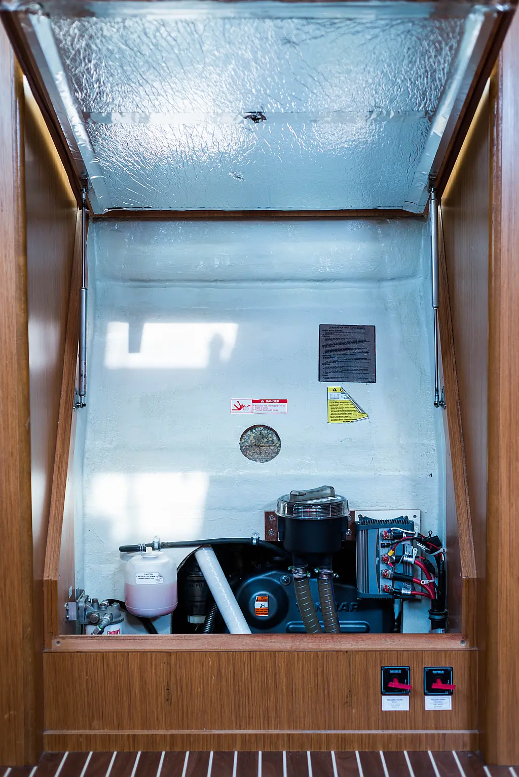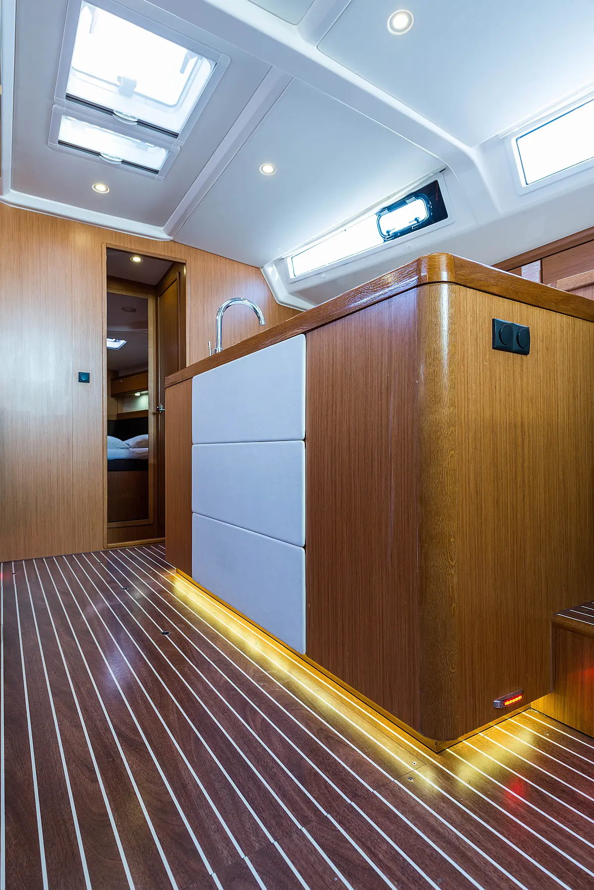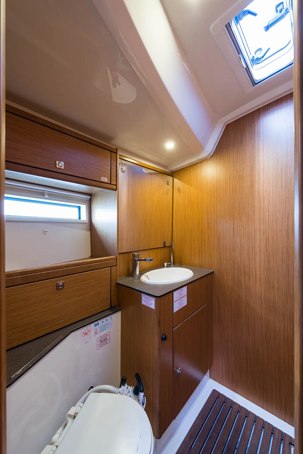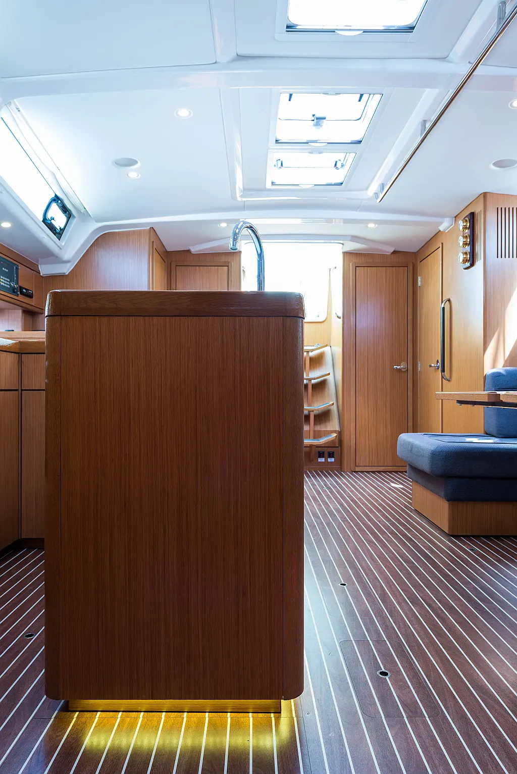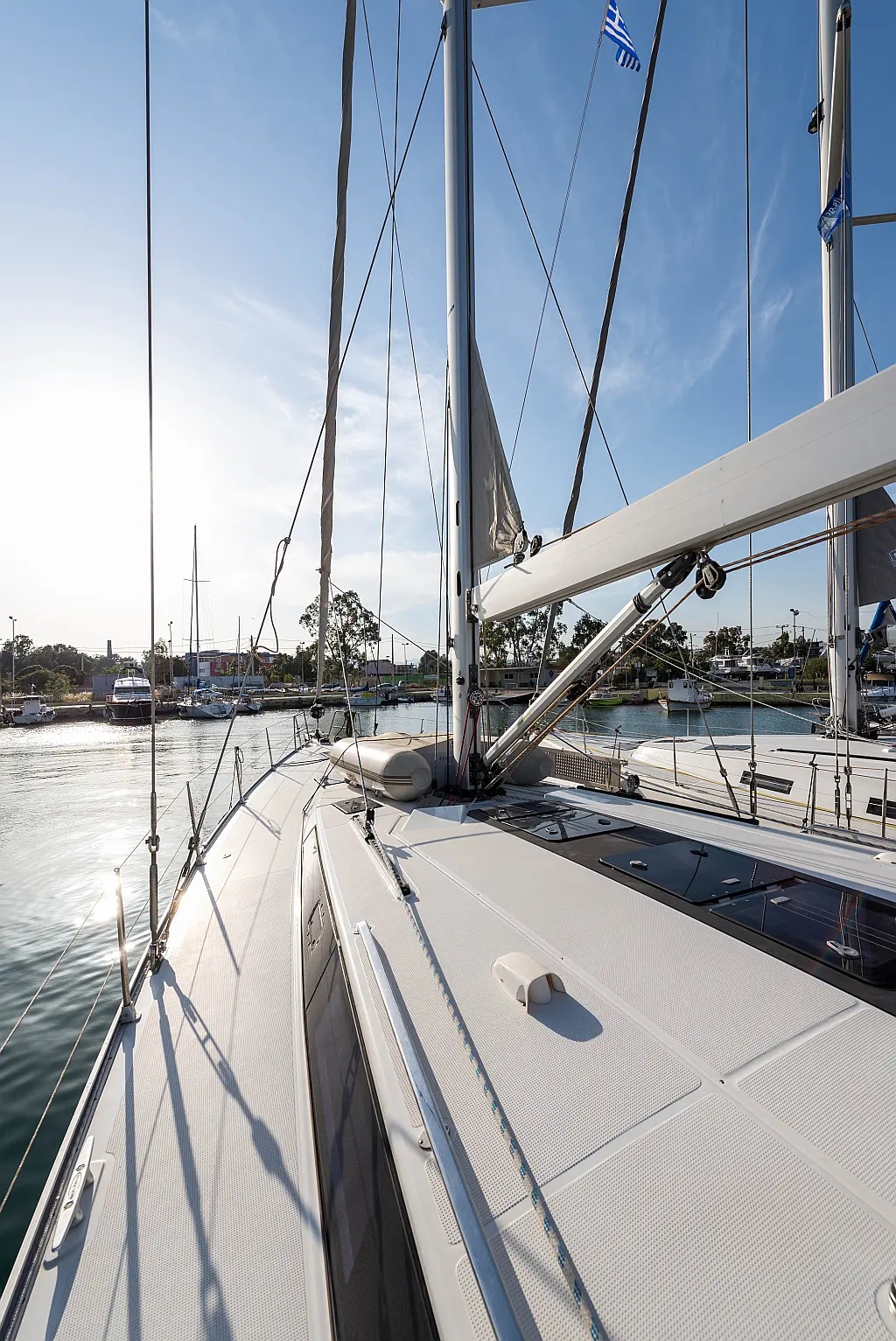 Aire acondicionado, Bímini, Capota antirociones, Embarcación auxiliar, Altavoces exteriores, Winches eléctricos, WC eléctrico, Panel Solar, Generador, Cockpit cushions, Teak Cockpit