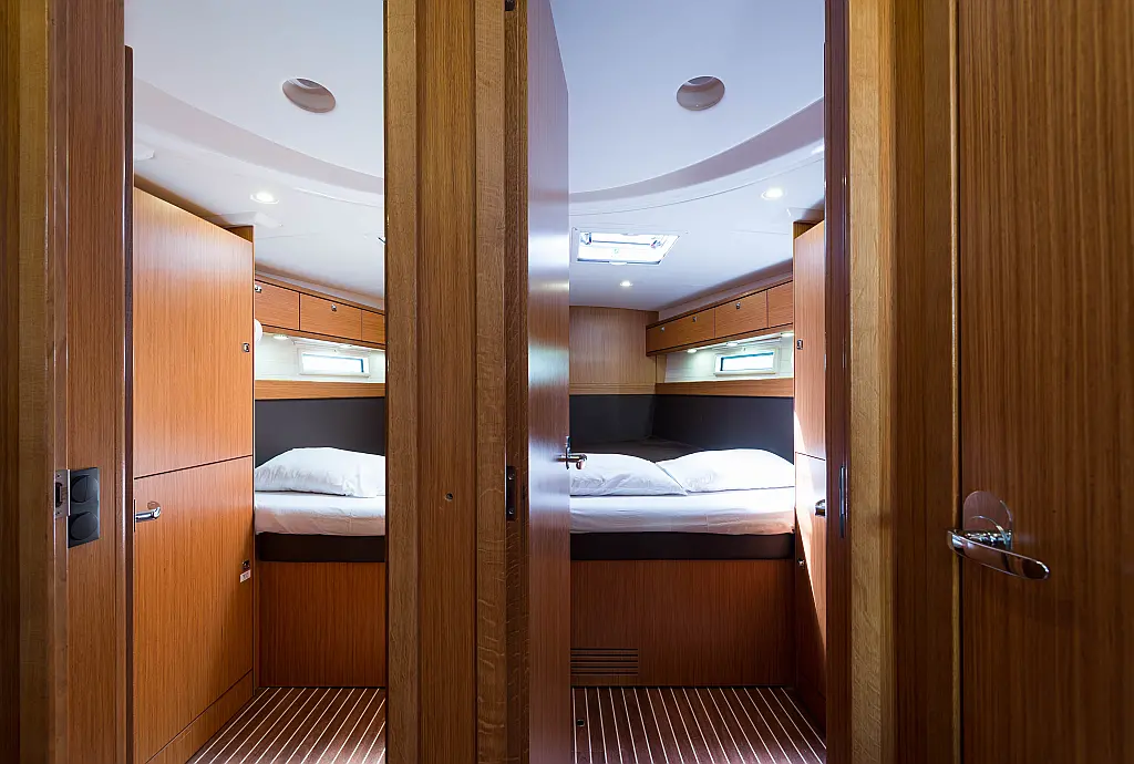 6 (4 double-bed cabins +1 cabin with bunk bed +1 bow cabin)