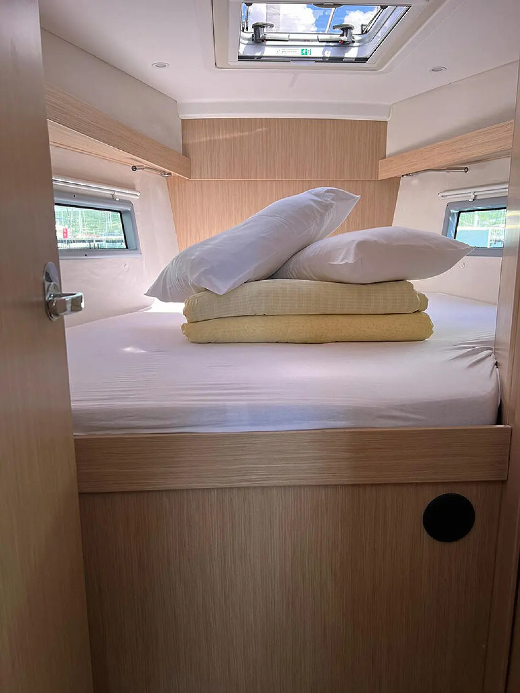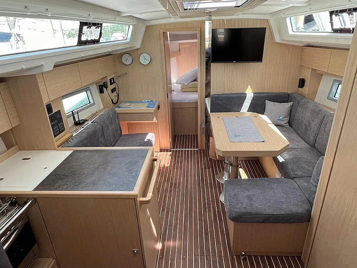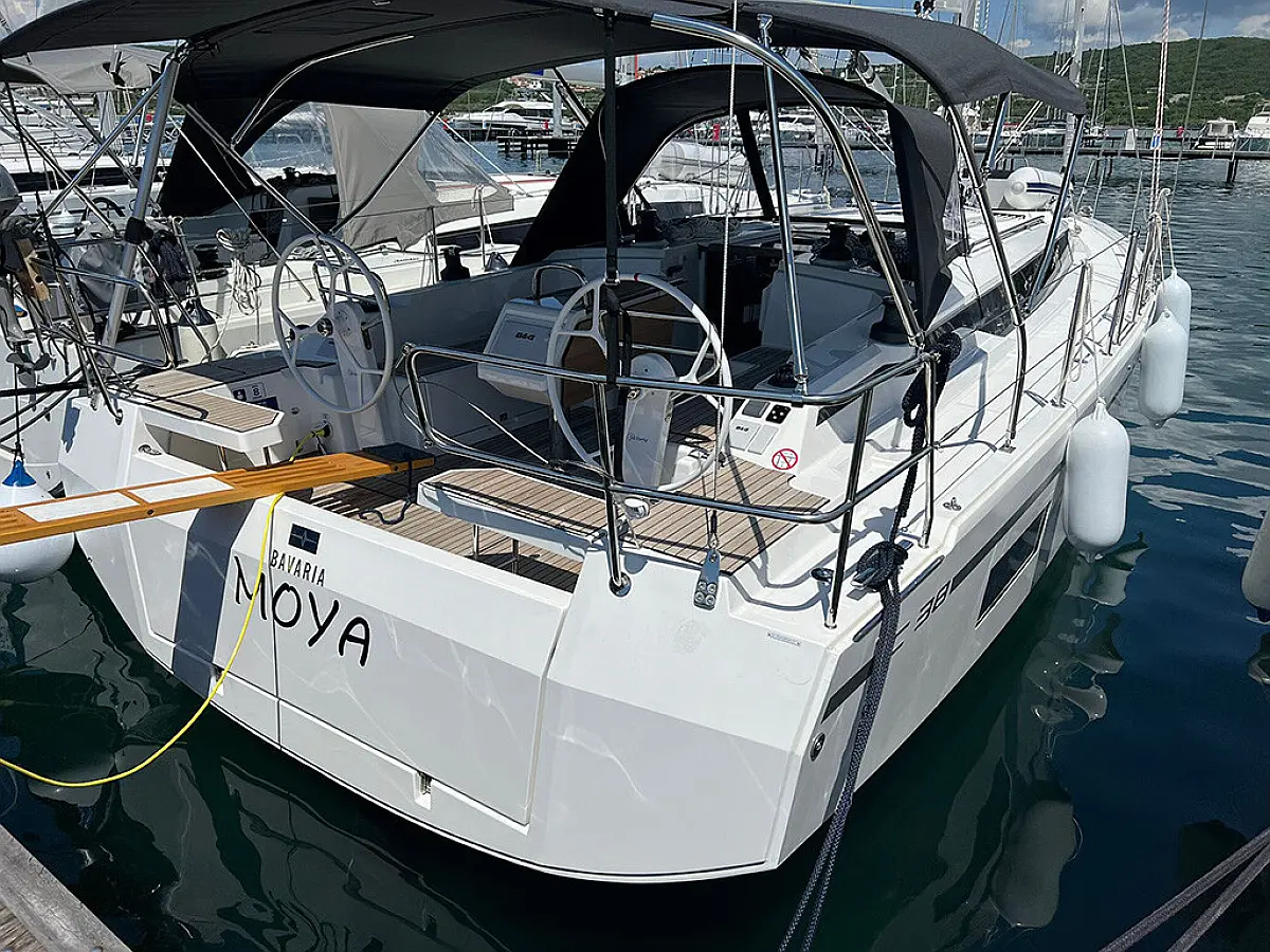 Bímini, Capota antirociones, Motor fueraborda, Teak Cockpit, Aire acondicionado, Calefacción, Panel Solar, Cockpit cushions